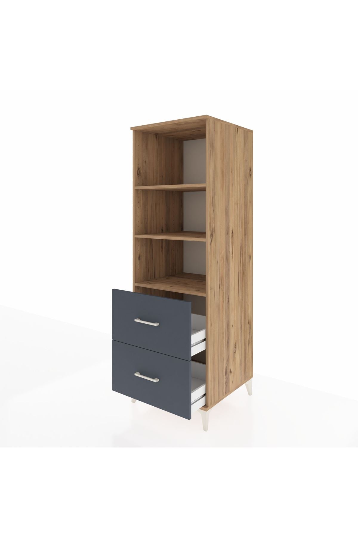 Kronos Dolap 3 Raflı 2 Çekmeceli 60x59x182 Çam-Antrasit