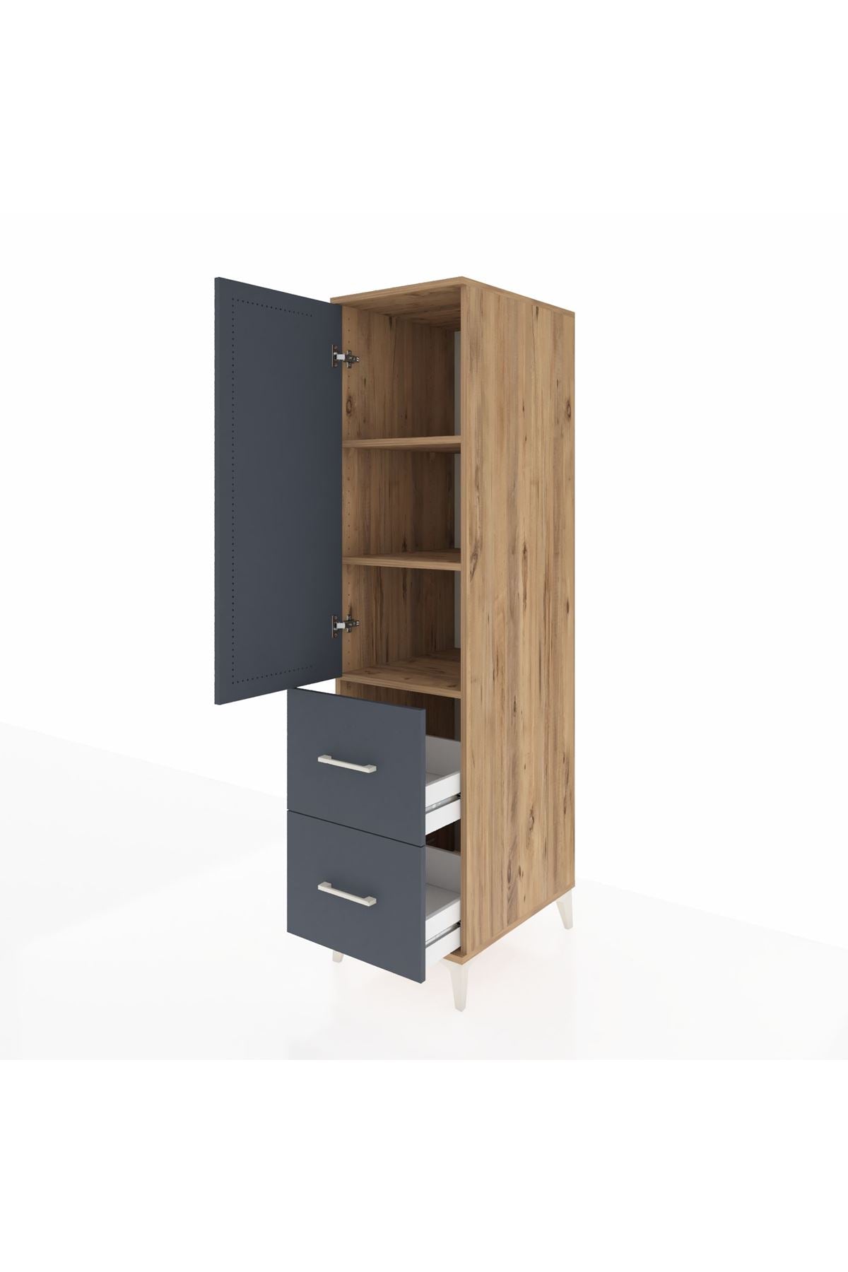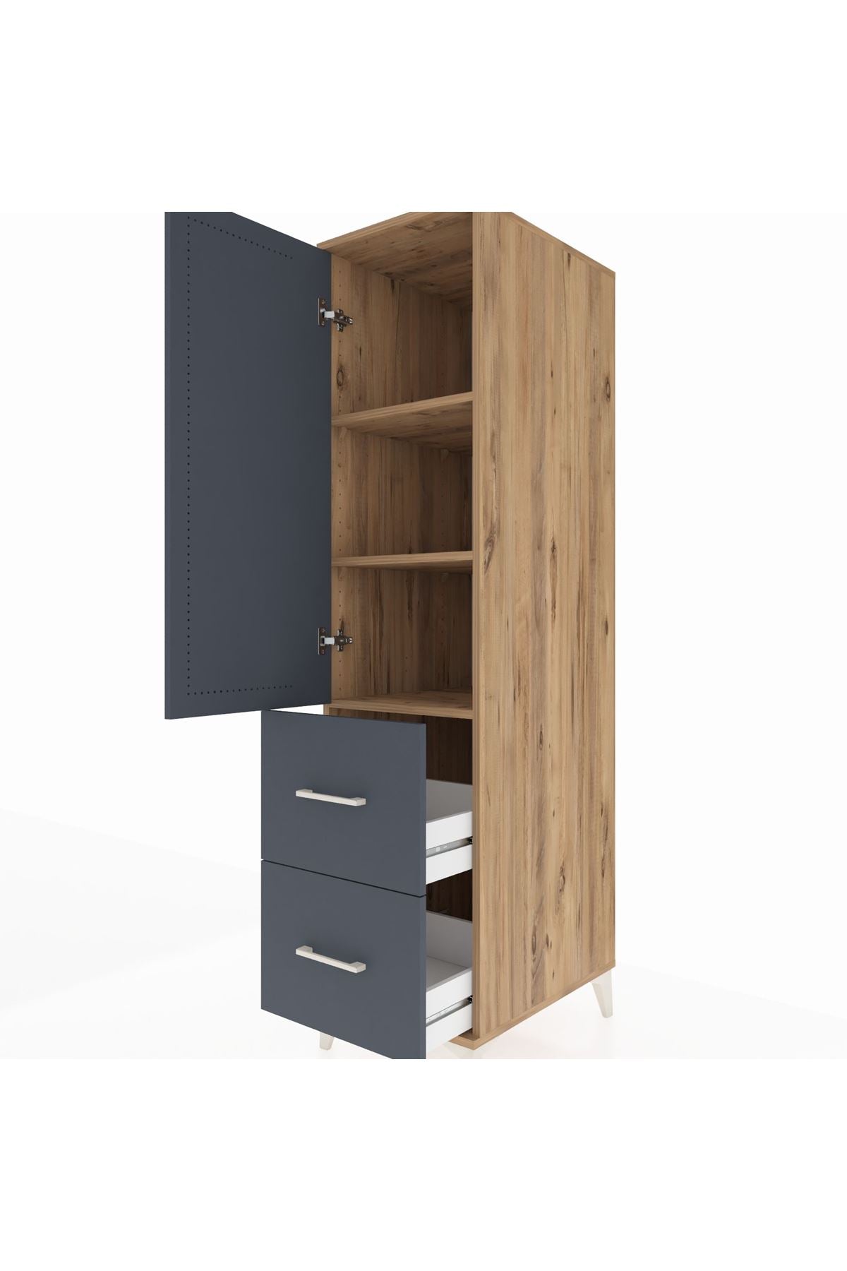 Kronos Dolap 3 Raflı 2 Çekmeceli Tek Kapaklı 44x59x182 Çam-Antrasit