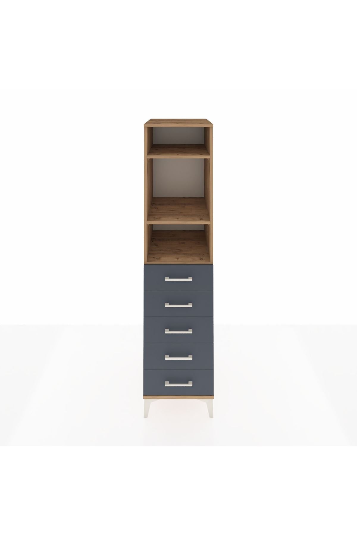 Kronos Dolap 3 Raflı 5 Çekmeceli 44x59x182 Çam-Antrasit