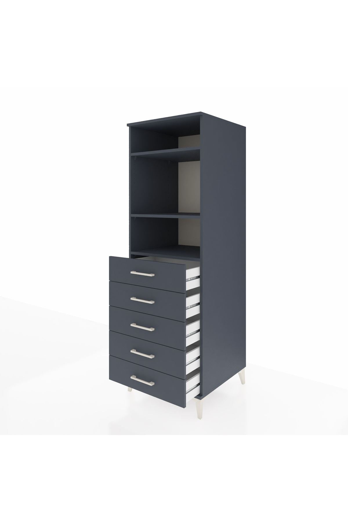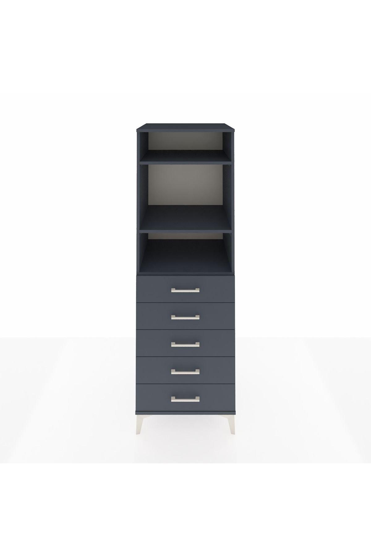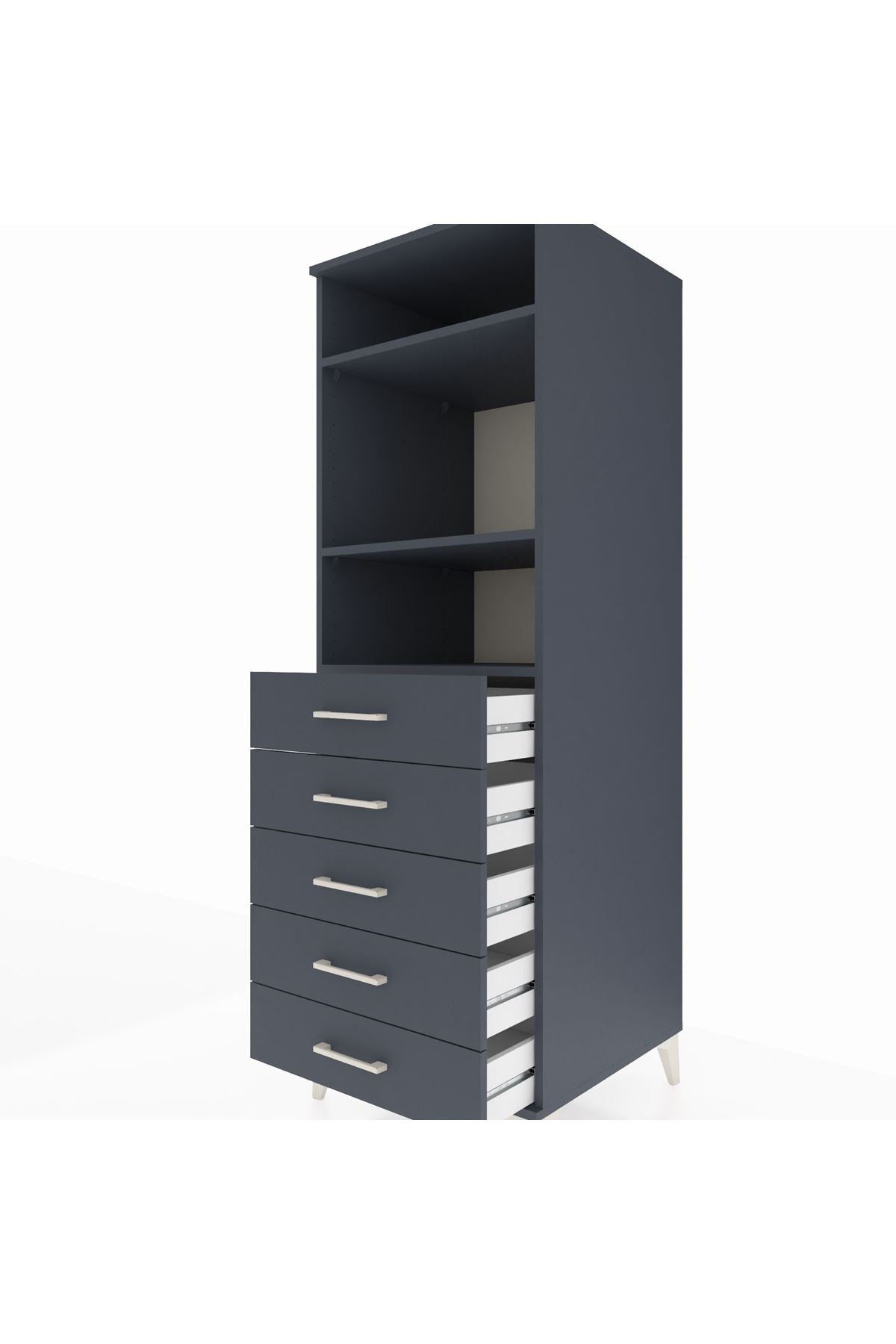 Kronos Dolap 3 Raflı 5 Çekmeceli 60x59x182 Antrasit-Antrasit