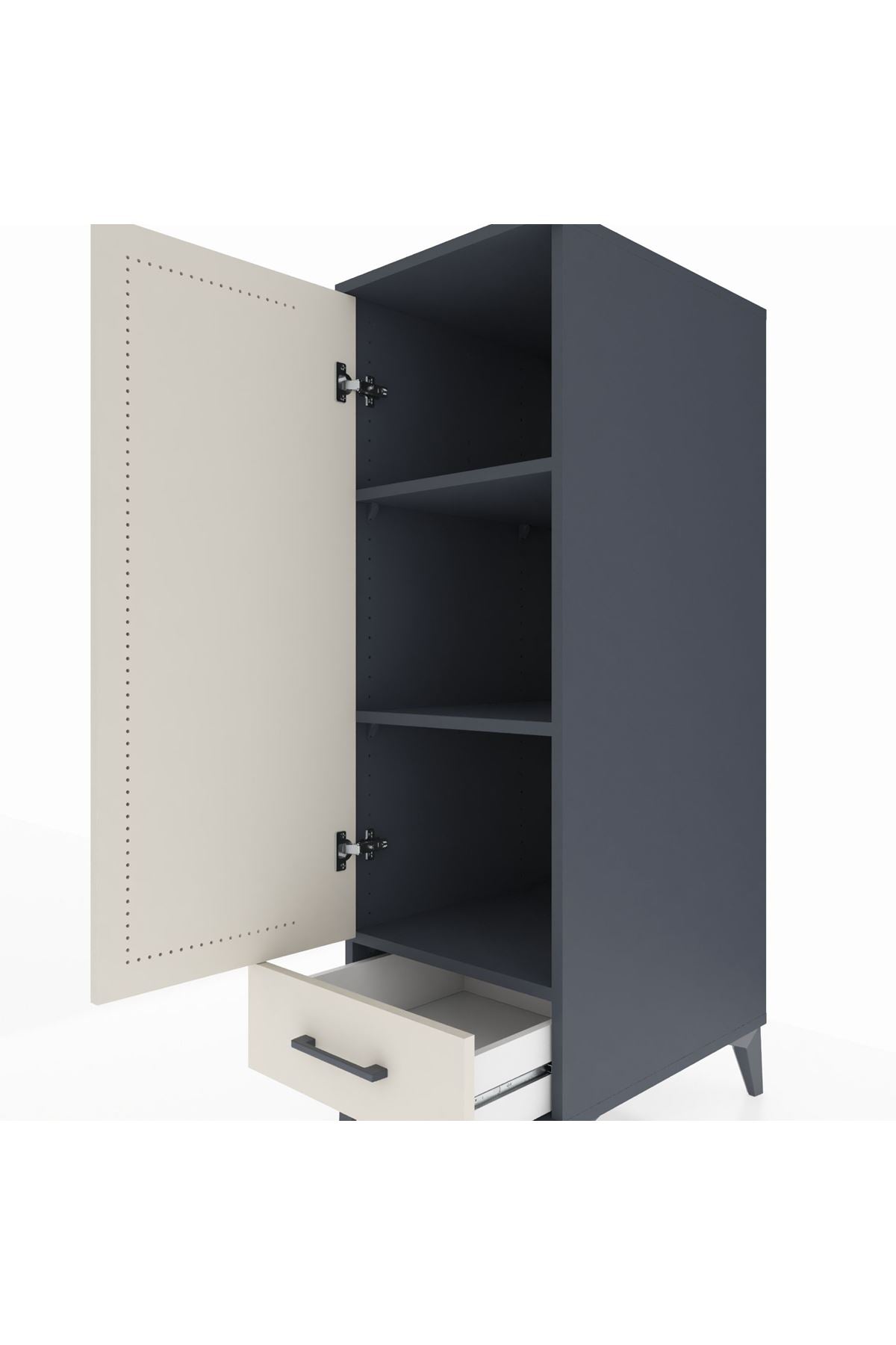 🔹 Kronos Dolap, 3 raflı ve tek çekmeceli tasarımıyla, fonksiyonellik ve estetiği mükemmel bir şekilde dengelerken, antrasit ve aytaşı renk kombinasyonu ile mekanlarınıza sofistike bir dokunuş katıyor.