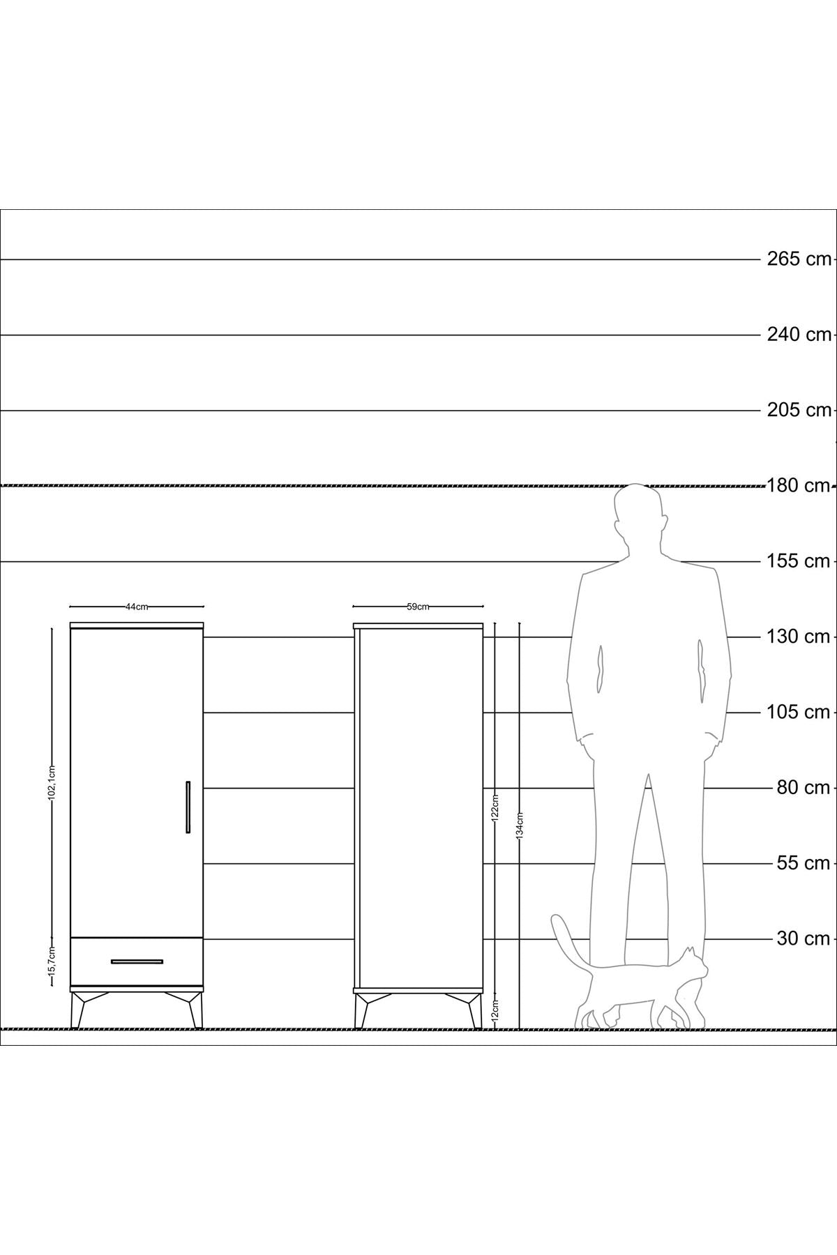 Kronos Dolap 3 Raflı Tek Çekmeceli Tek Kapaklı 44x59x134 Aytaşı-Çam