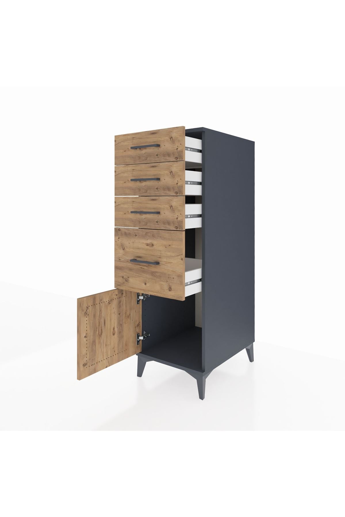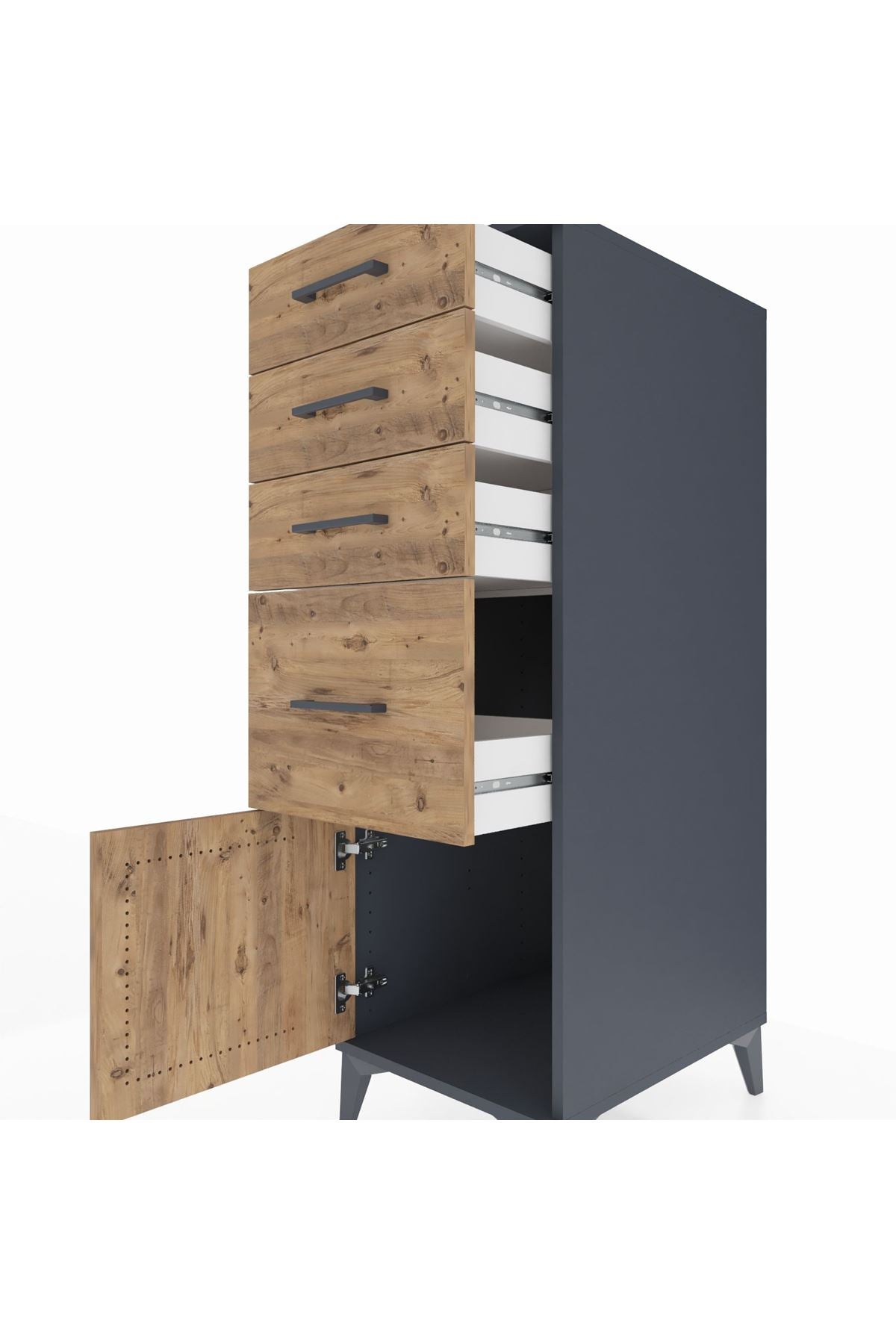 Kronos Dolap 4 Çekmeceli Tek Kapaklı 44x59x134 Antrasit-Çam