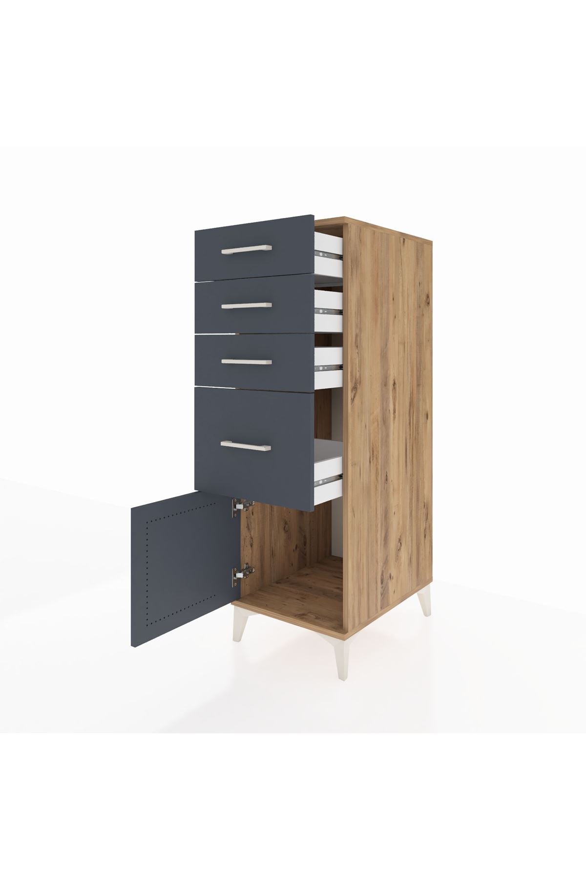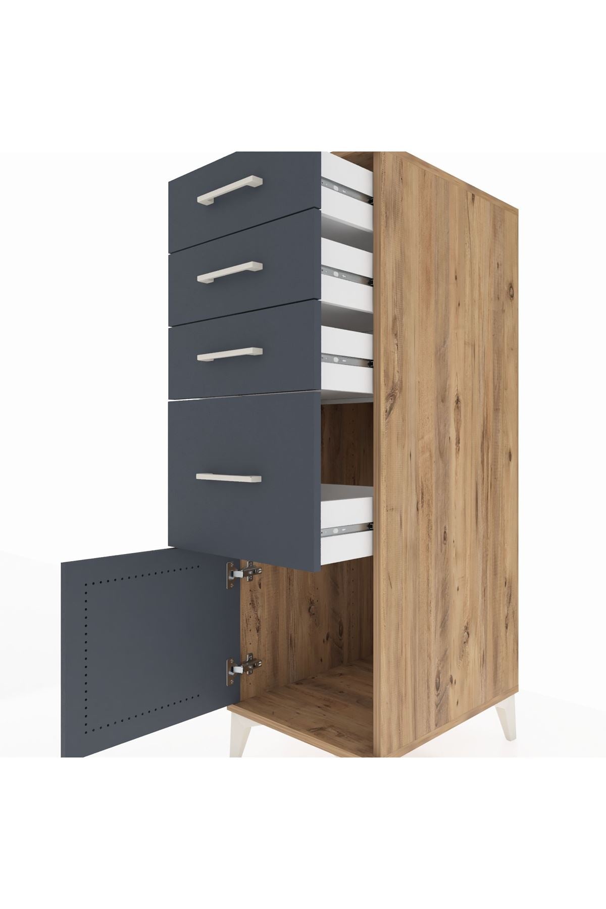 Kronos Dolap 4 Çekmeceli Tek Kapaklı 44x59x134 Çam-Antrasit