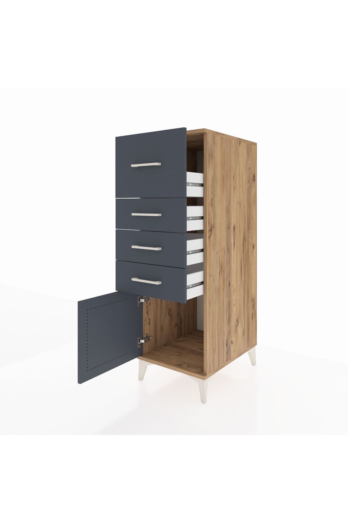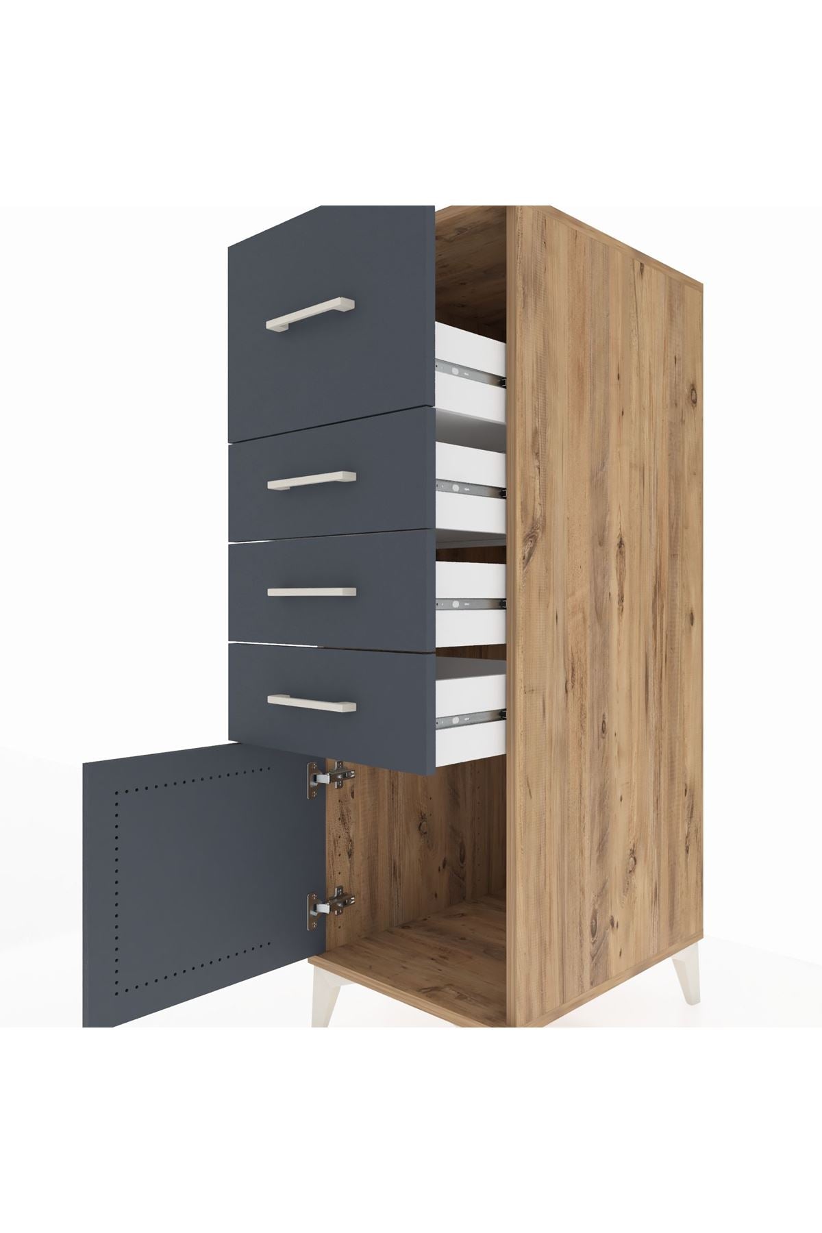 Kronos Dolap 4 Çekmeceli Tek Kapaklı 44x59x134 Çam-Antrasit