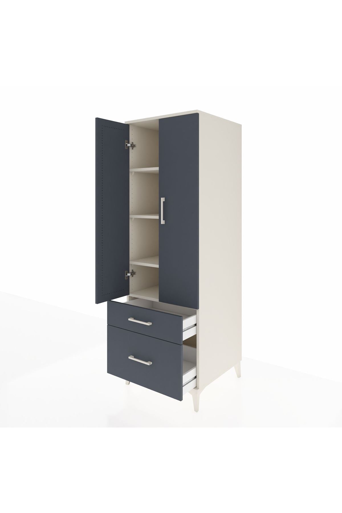 Kronos Dolap 4 Raflı 2 Çekmeceli 2 Kapaklı 60x59x182 Aytaşı-Antrasit