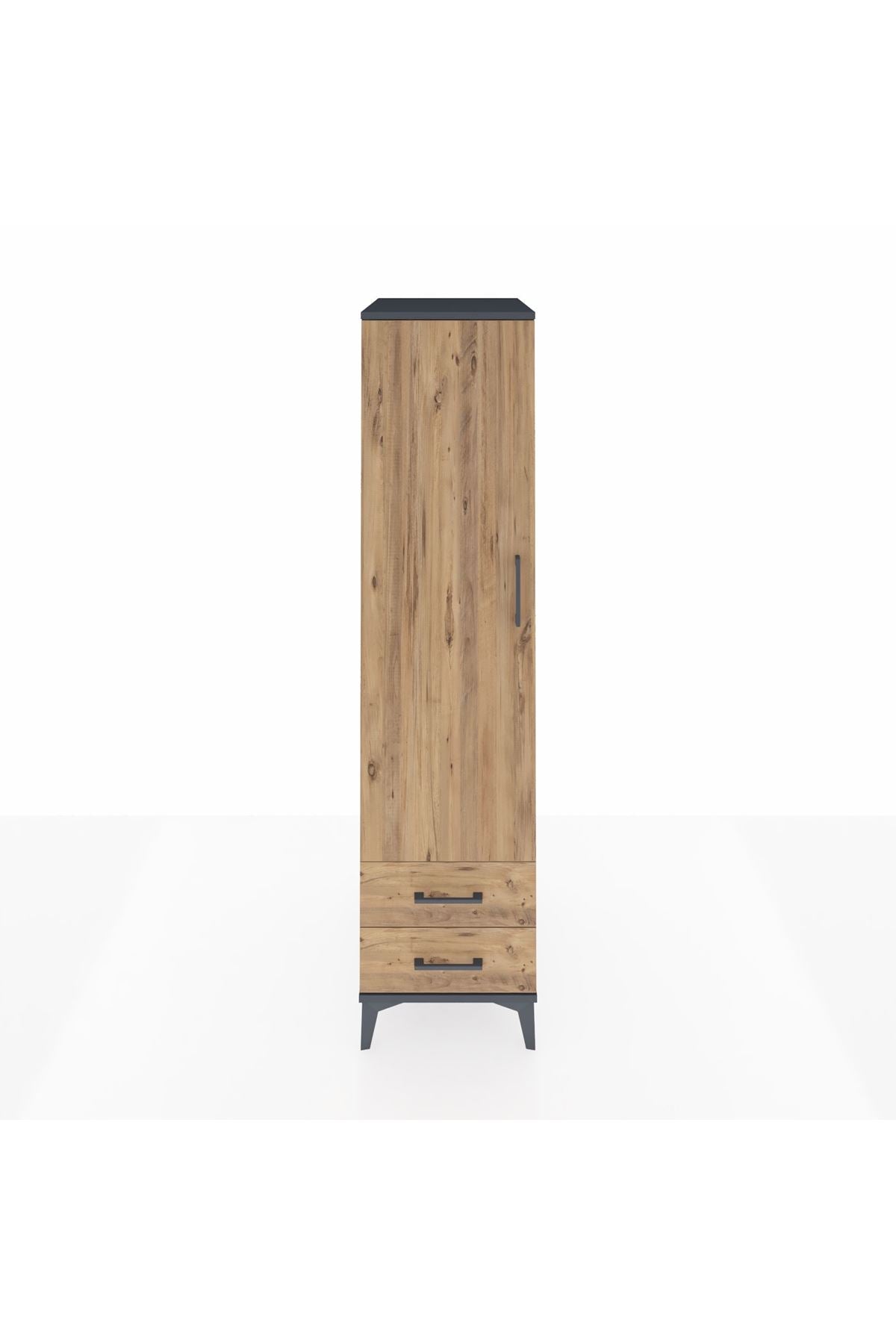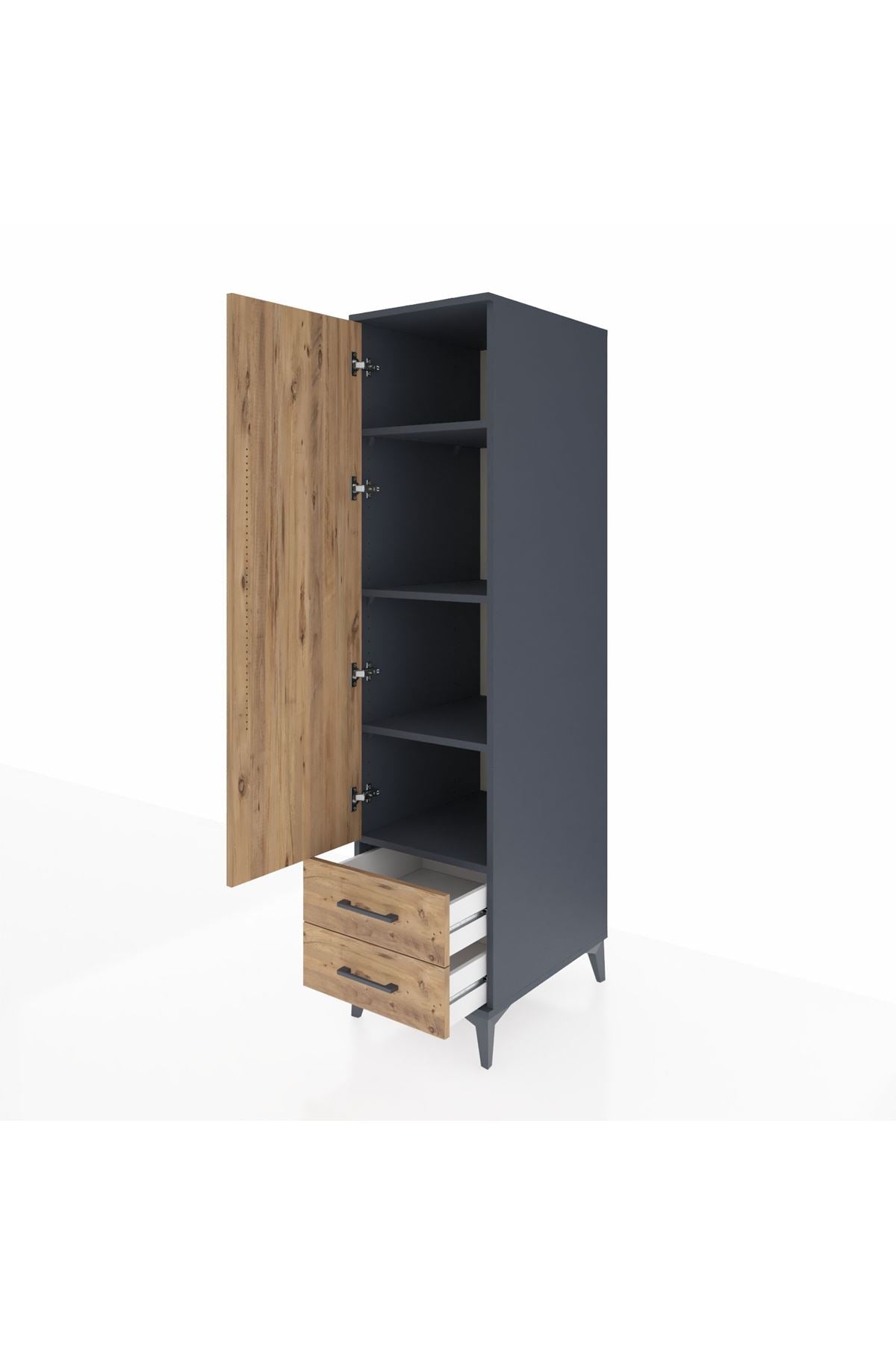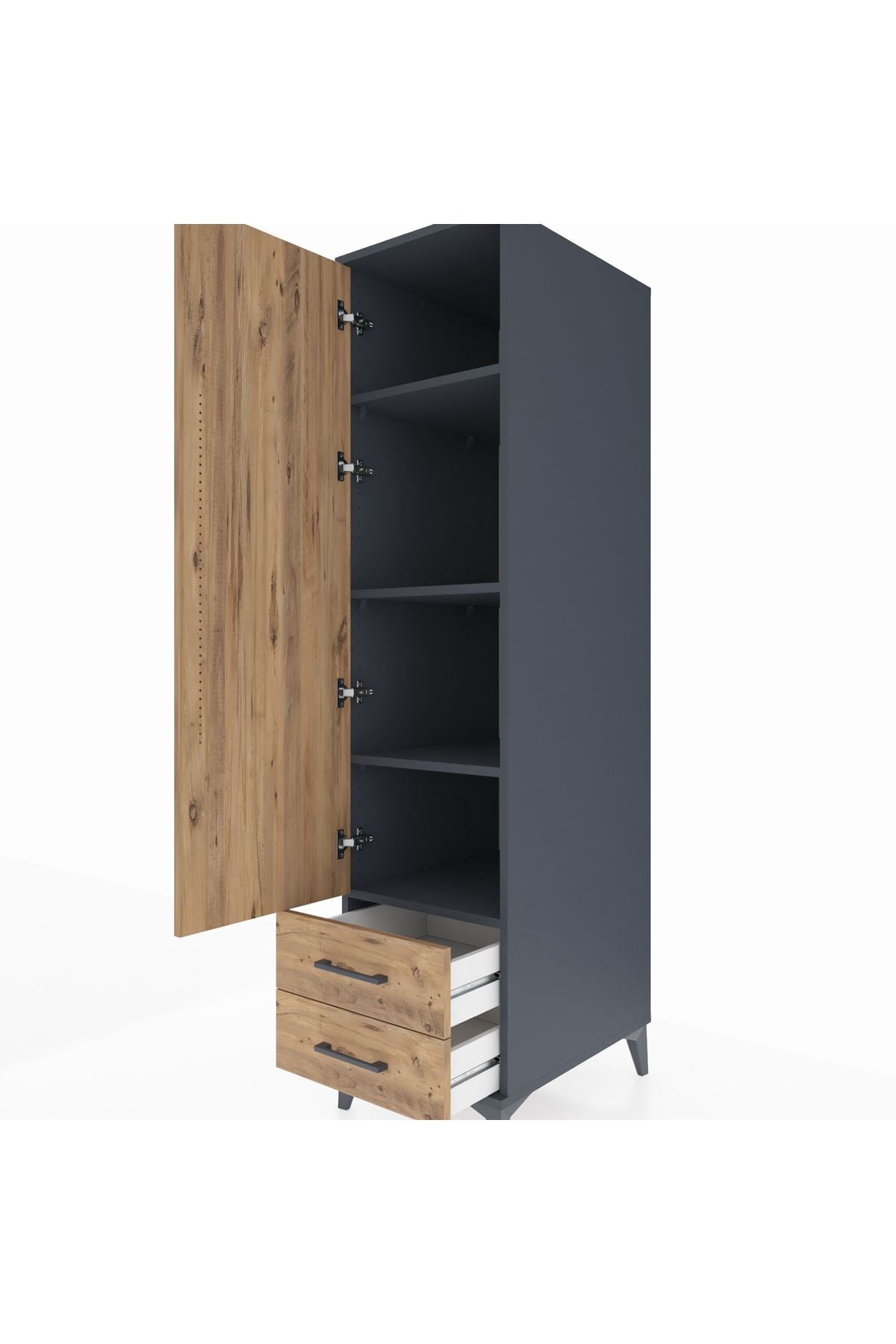 Kronos Dolap 4 Raflı 2 Çekmeceli Tek Kapaklı 44x59x182 Antrasit-Çam