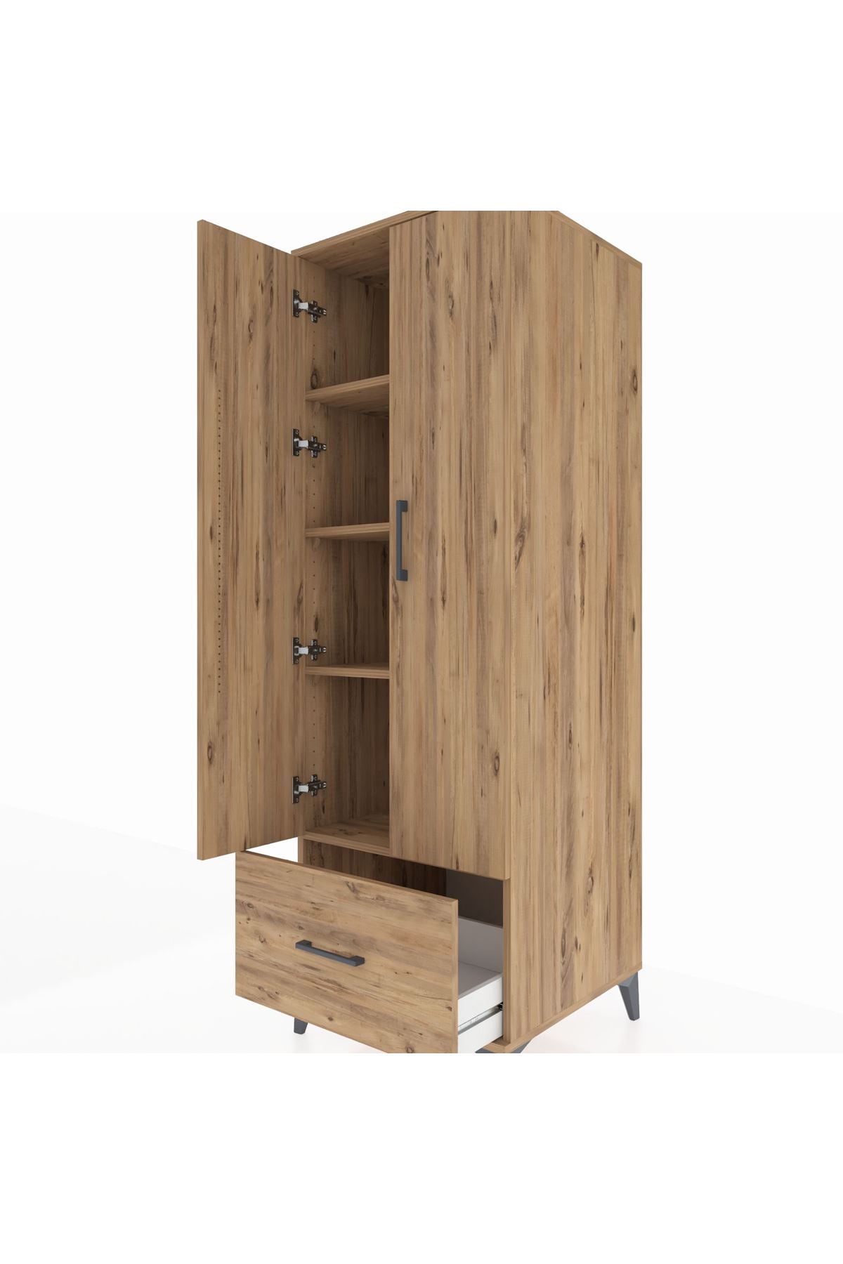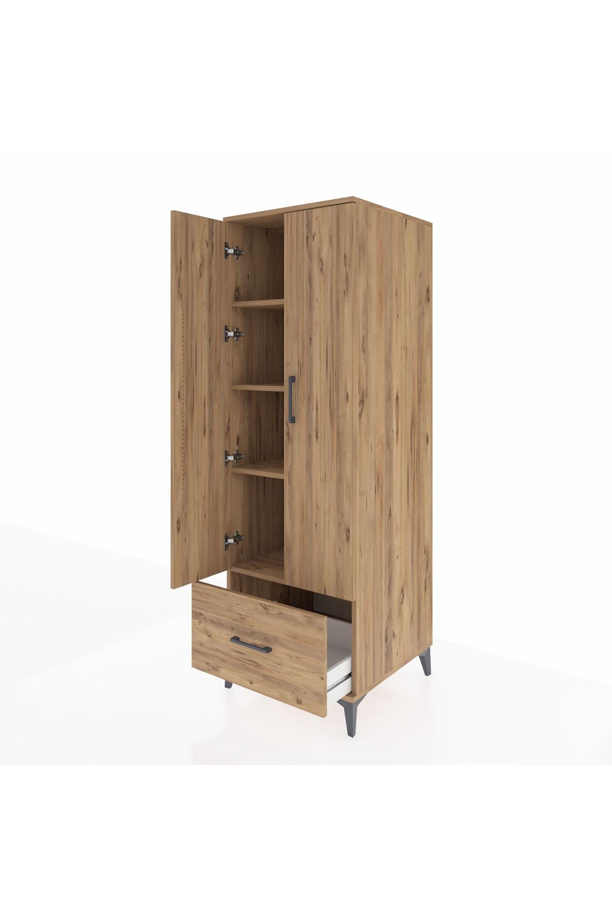 Kronos Dolap 4 Raflı Tek Çekmeceli 2 Kapaklı 60x59x182 Çam-Çam