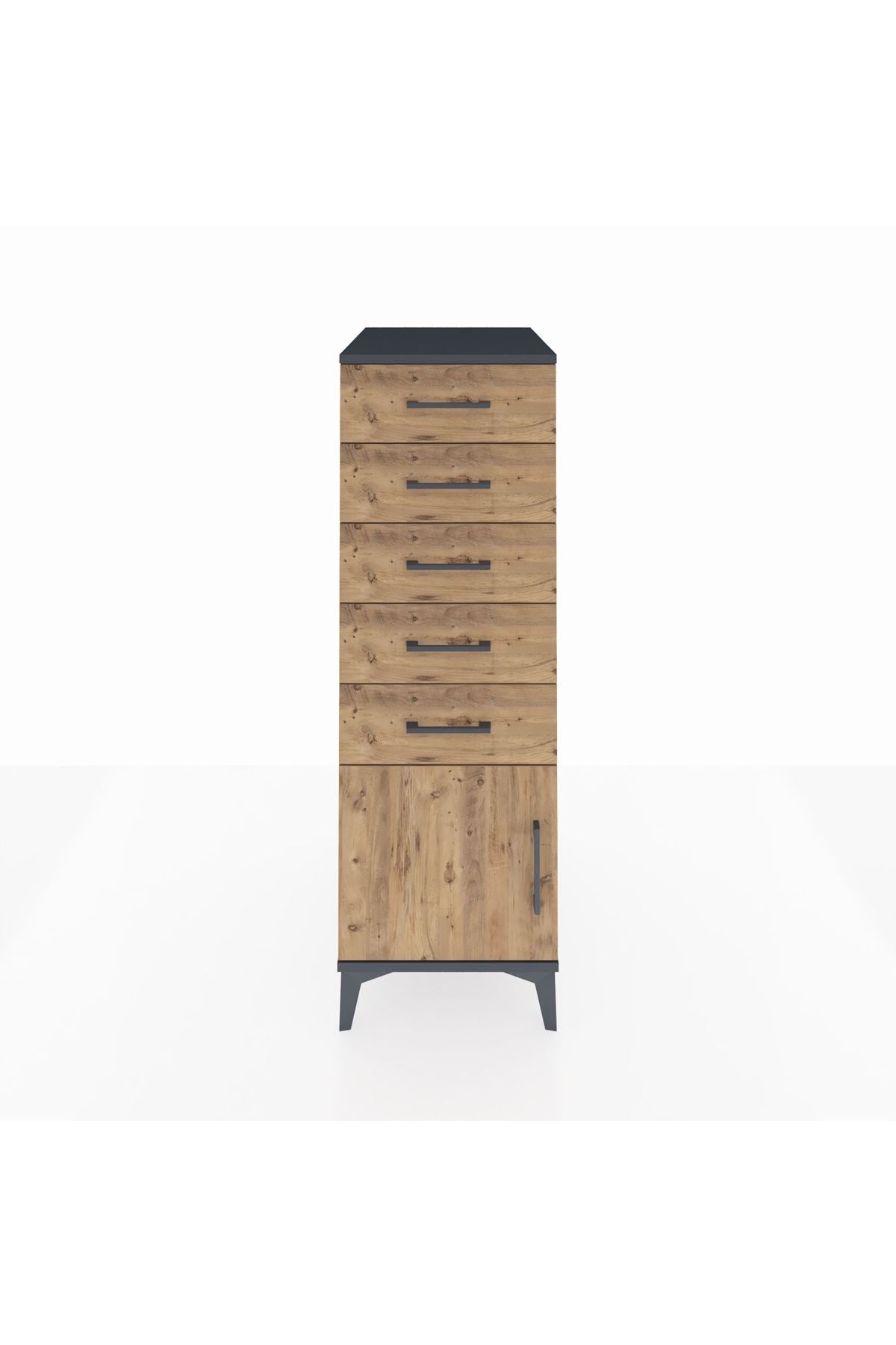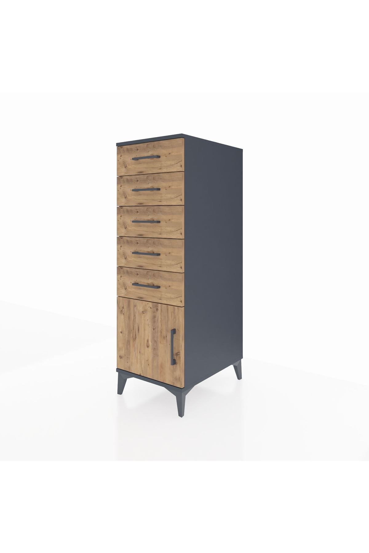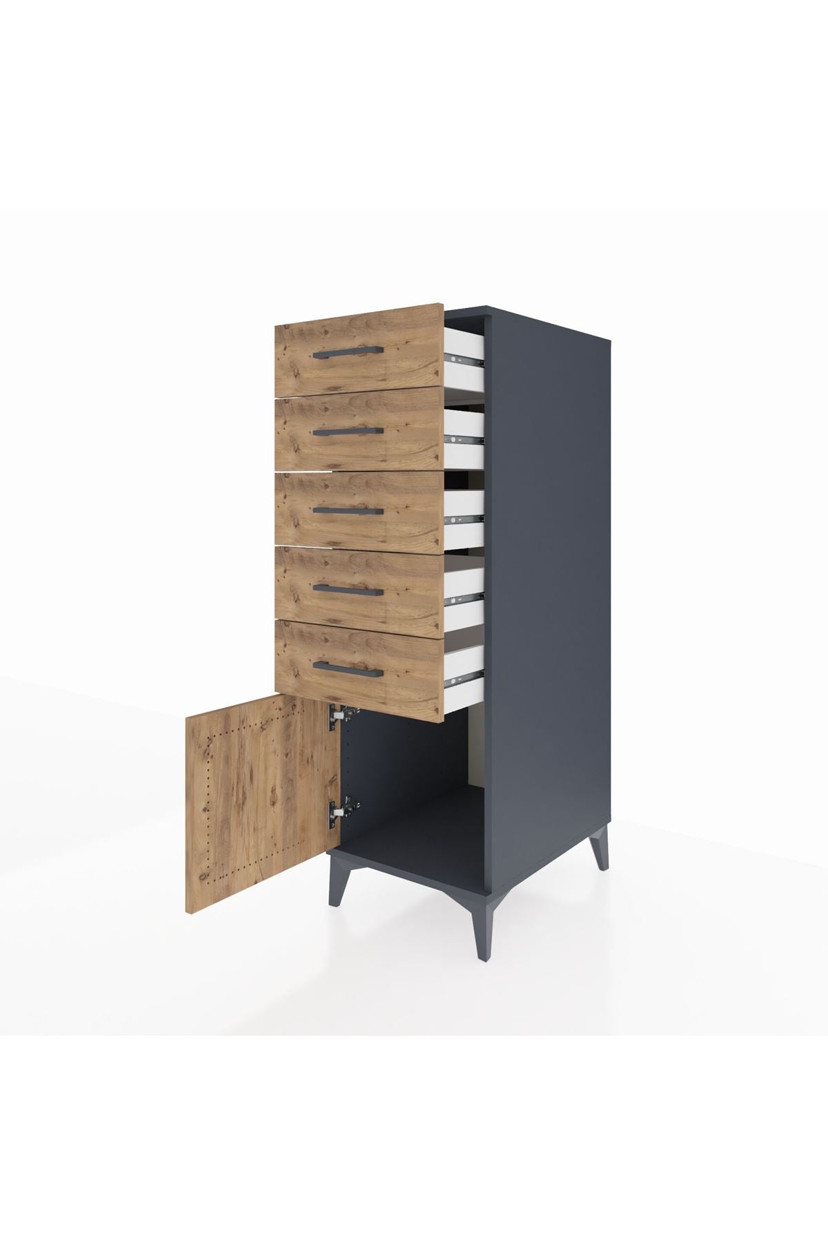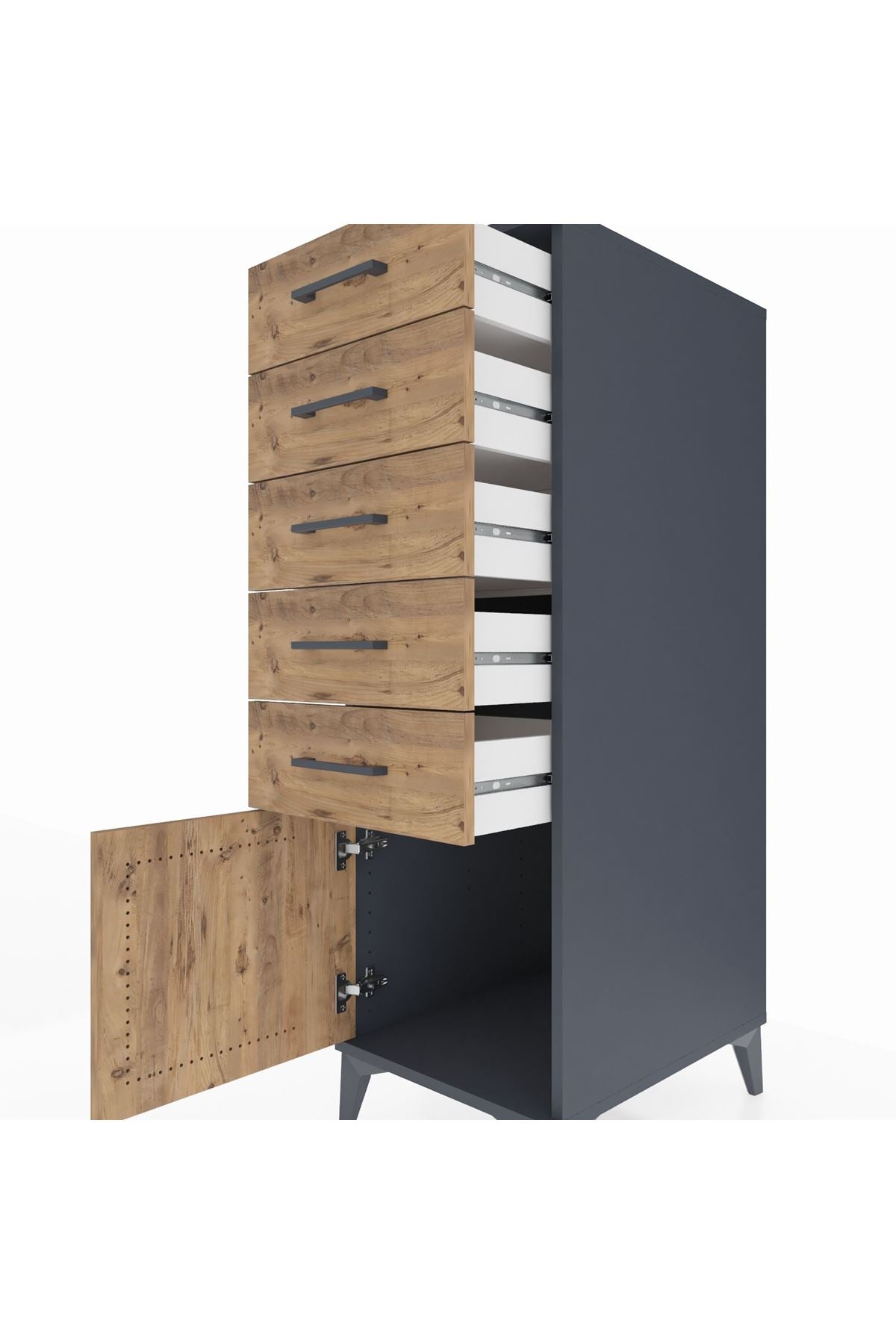 Kronos Dolap 5 Çekmeceli Tek Kapaklı 44x59x134 Antrasit-Çam