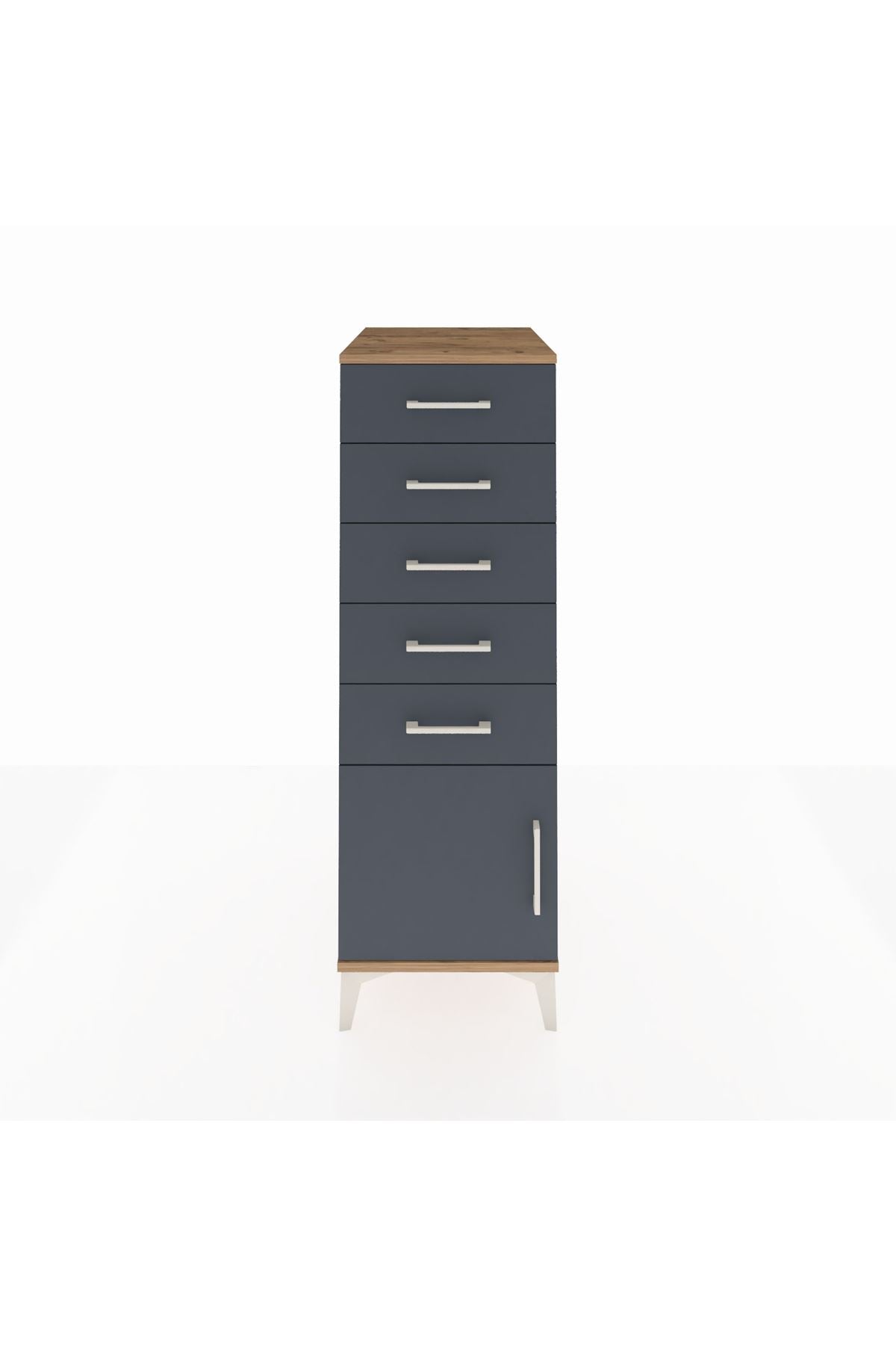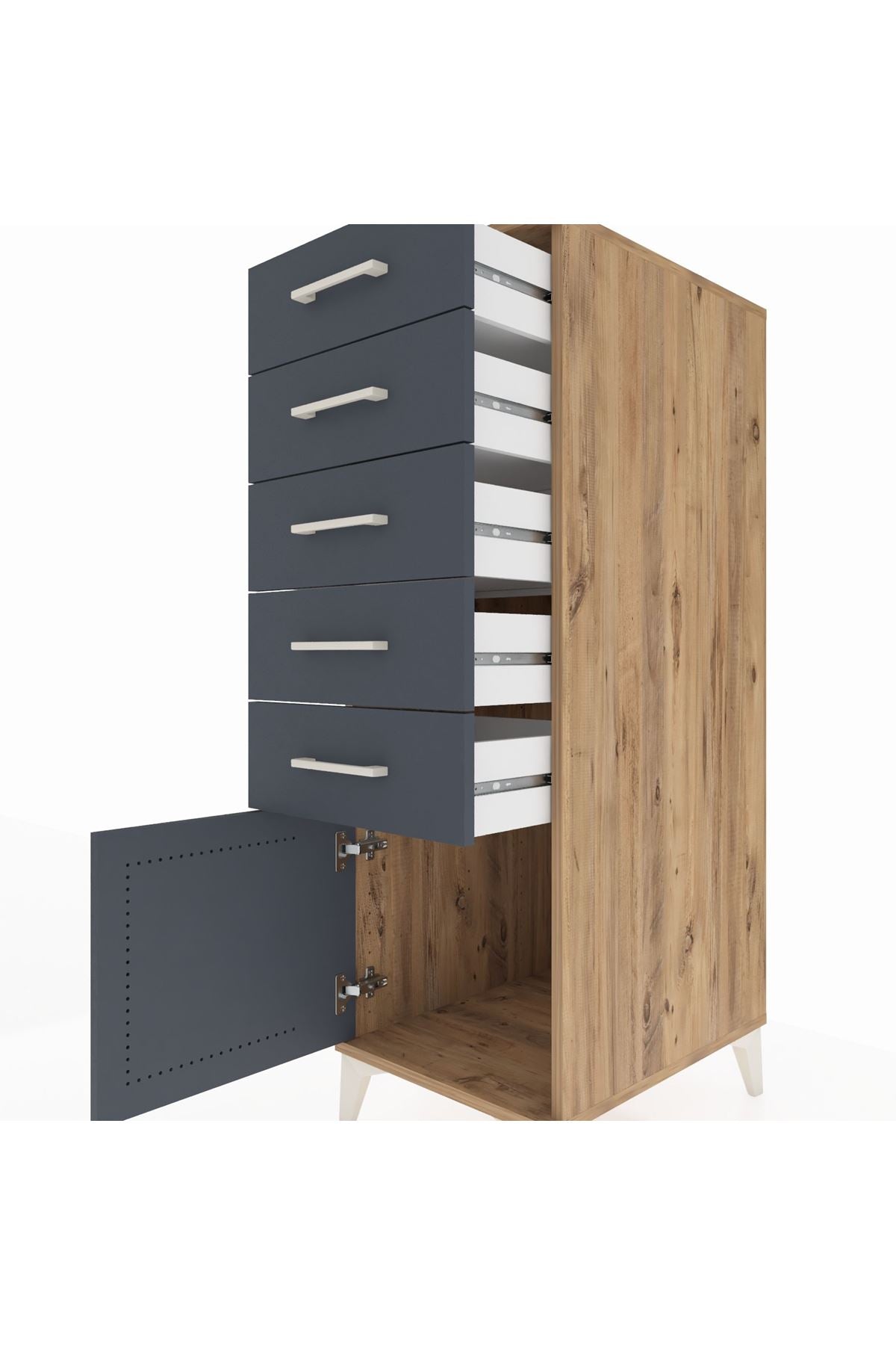 Kronos Dolap 5 Çekmeceli Tek Kapaklı 44x59x134 Çam-Antrasit