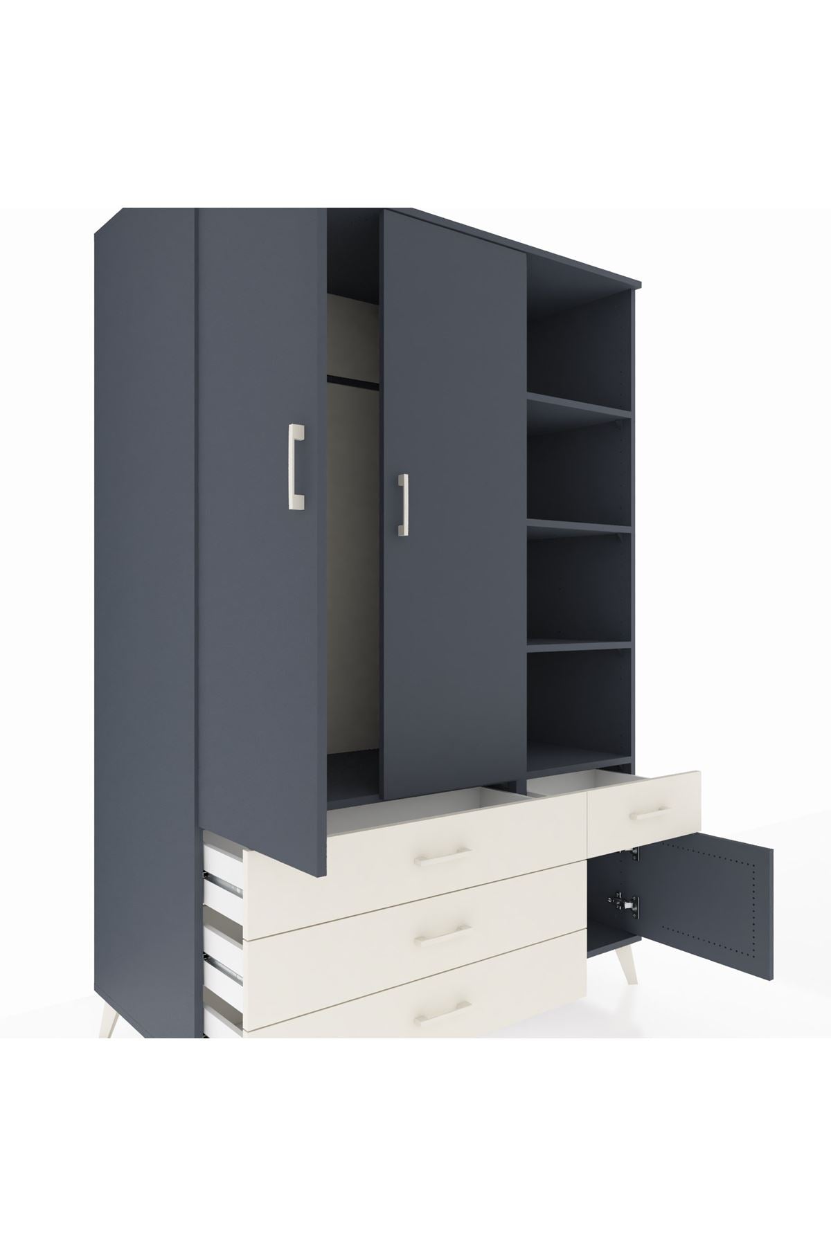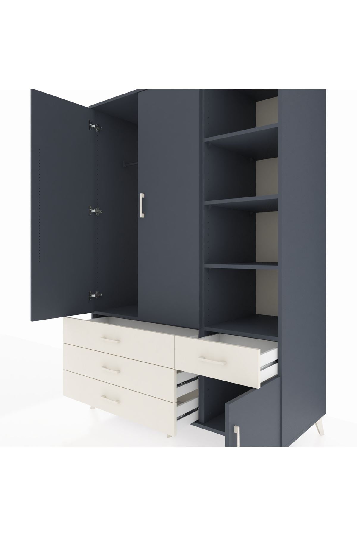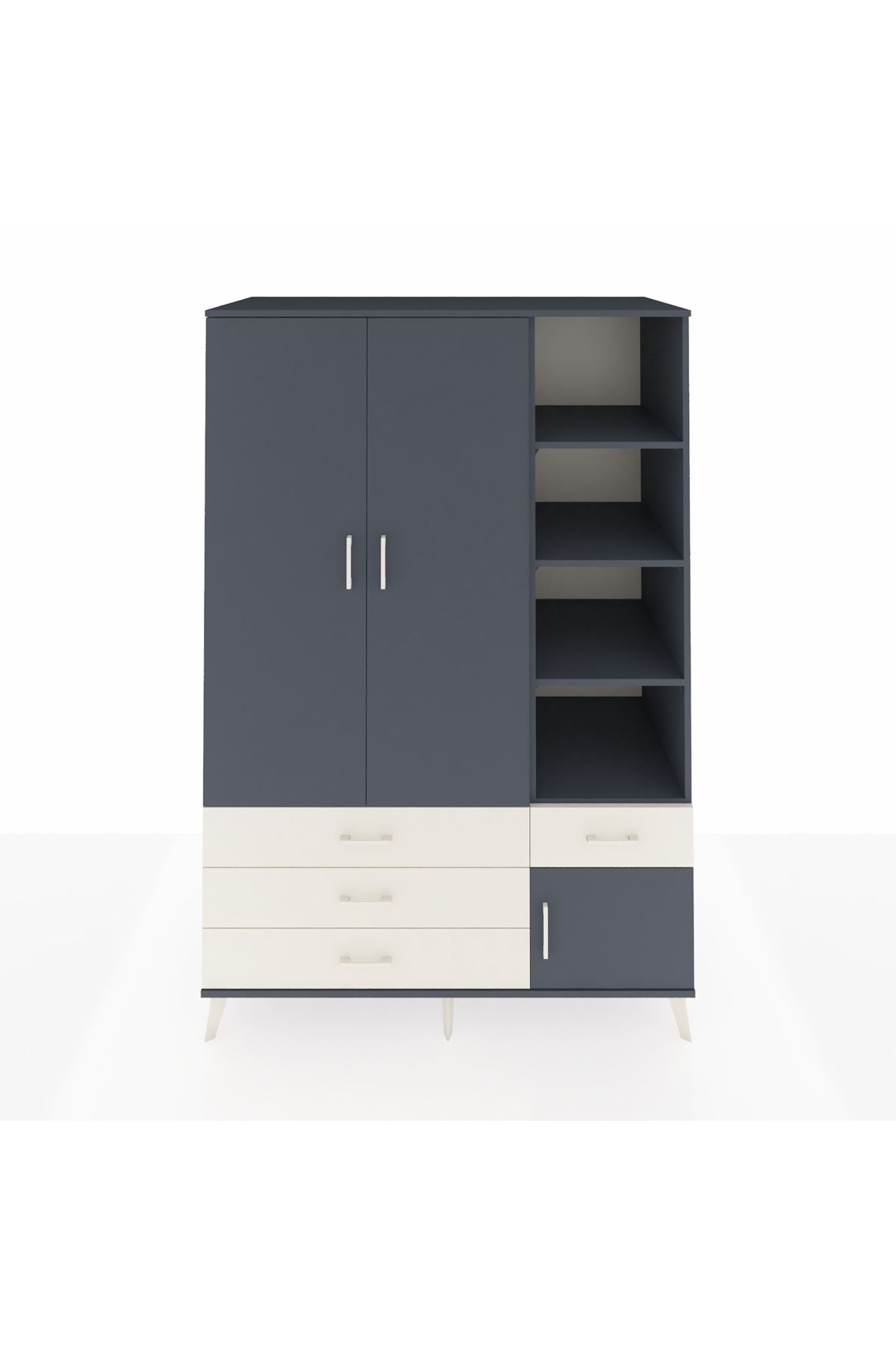 Geniş iç hacmi sayesinde yedi raf ve dört çekmeceyle her ihtiyaca yanıt verir. Üç kapaklı tasarımı, eşyalarınızı düzenli ve pratik bir şekilde saklamanızı sağlar. Aytaşı ve antrasit renk uyumu, mekâna şık bir dokunuş katar. 🎨