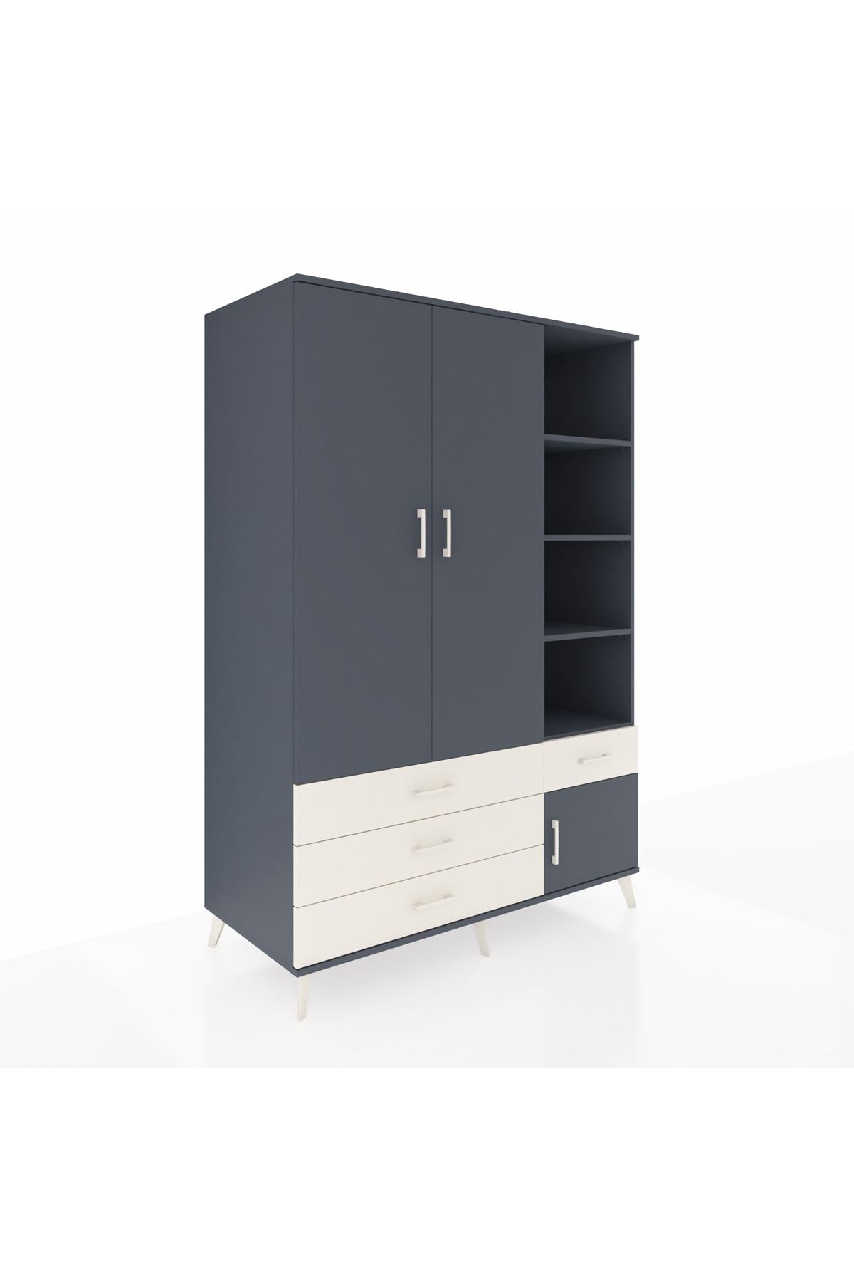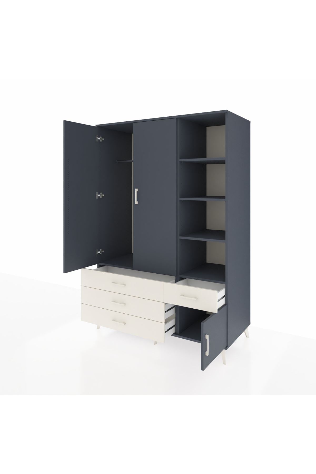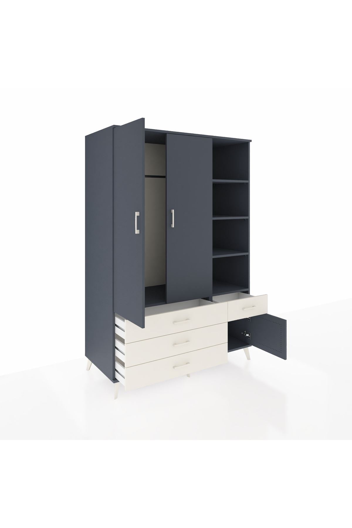 Geniş iç hacmi sayesinde yedi raf ve dört çekmeceyle her ihtiyaca yanıt verir. Üç kapaklı tasarımı, eşyalarınızı düzenli ve pratik bir şekilde saklamanızı sağlar. Aytaşı ve antrasit renk uyumu, mekâna şık bir dokunuş katar. 🎨