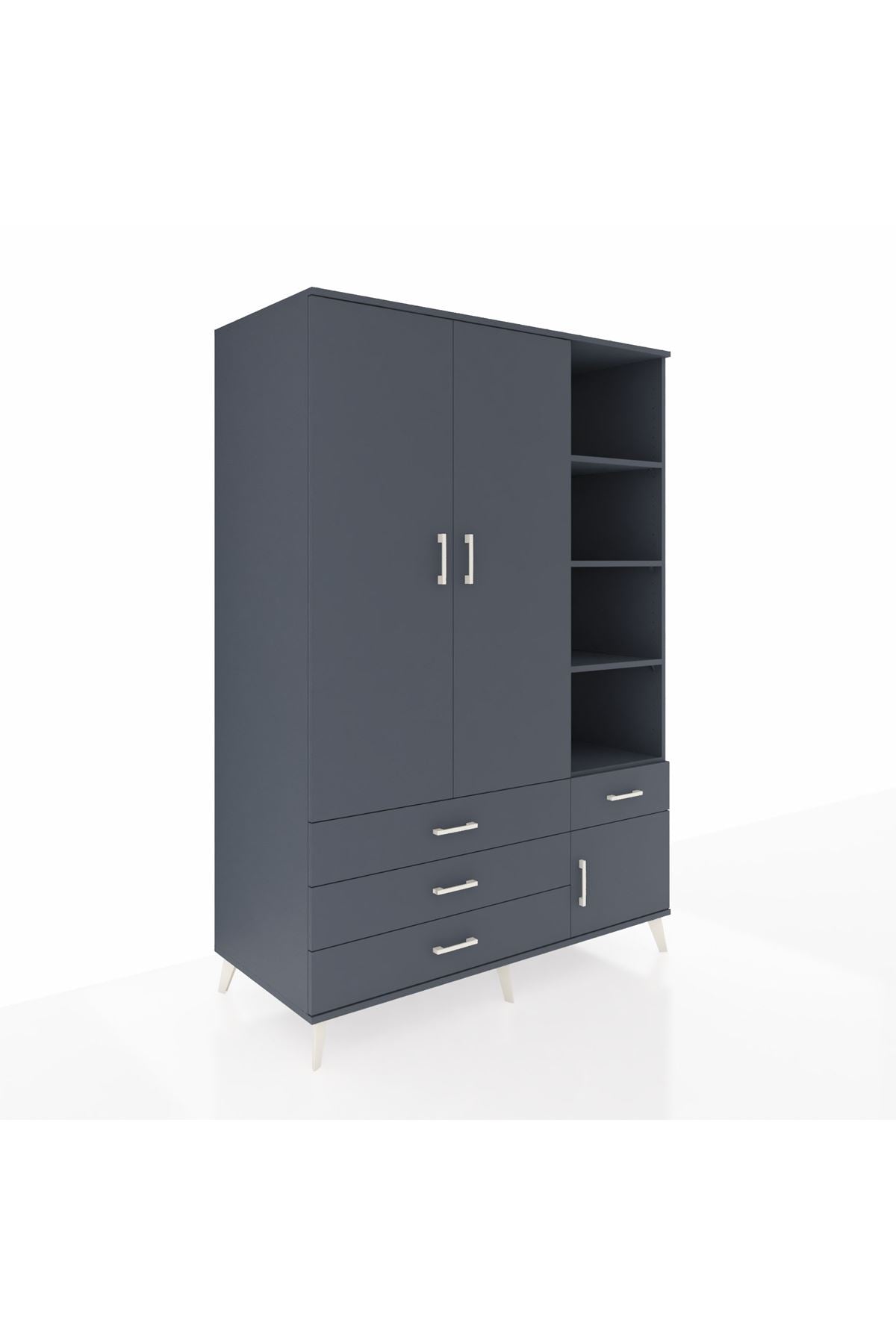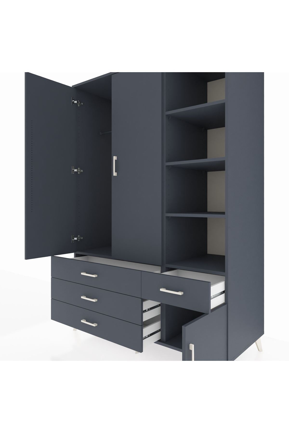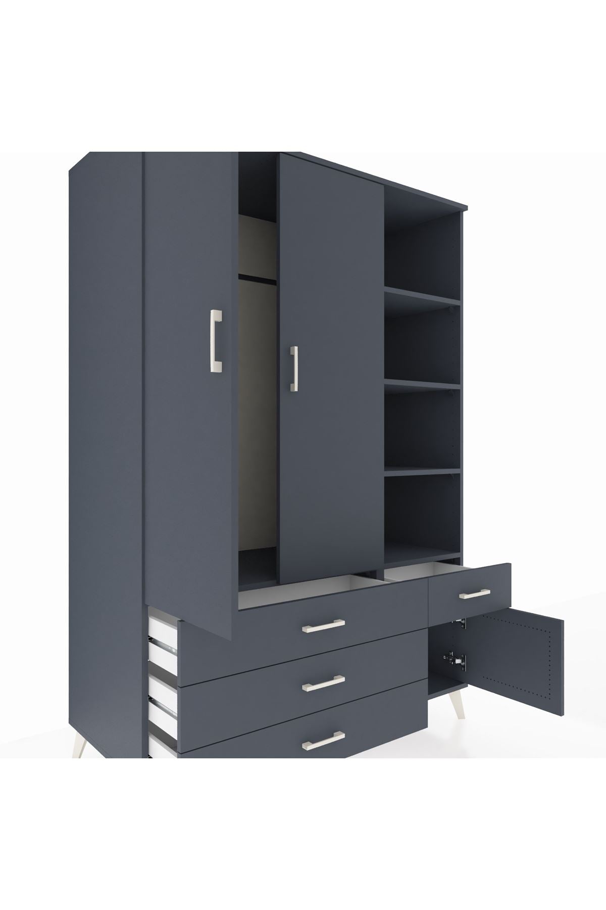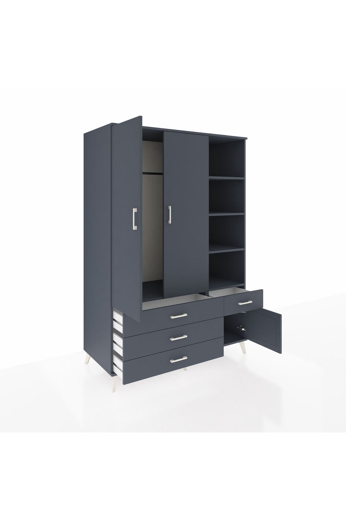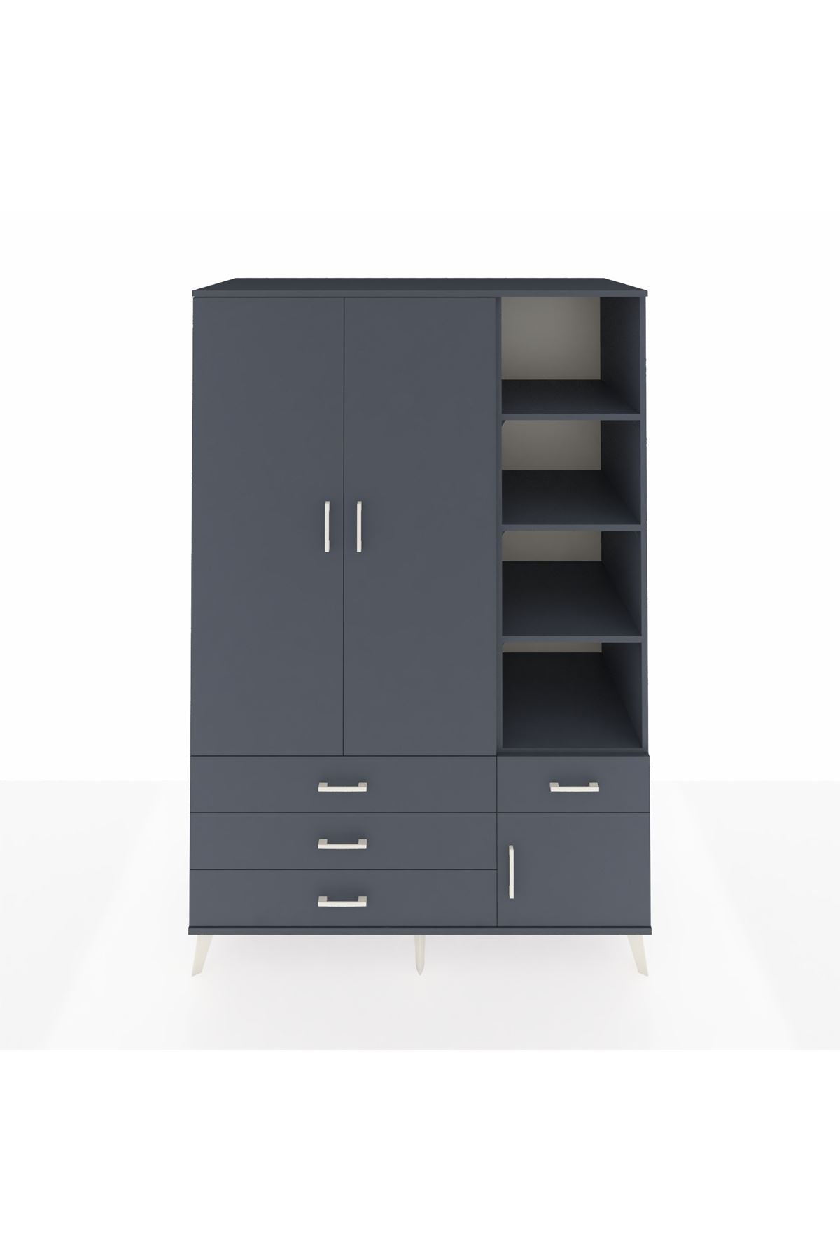 Kronos Dolap 5 Raflı 4 Çekmeceli Tek Askılı 132x59x195 Antrasit-Antrasit/Antrasit
