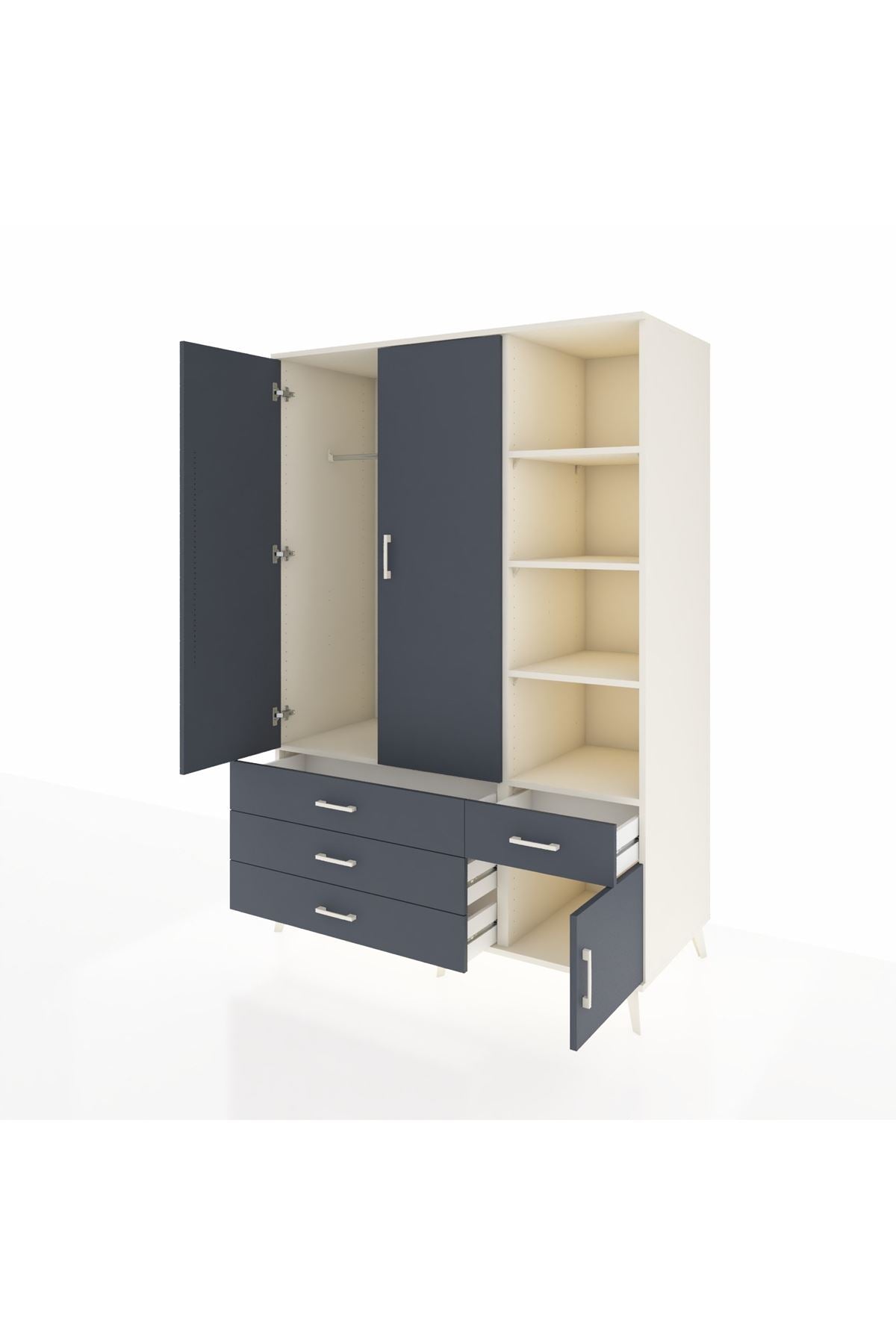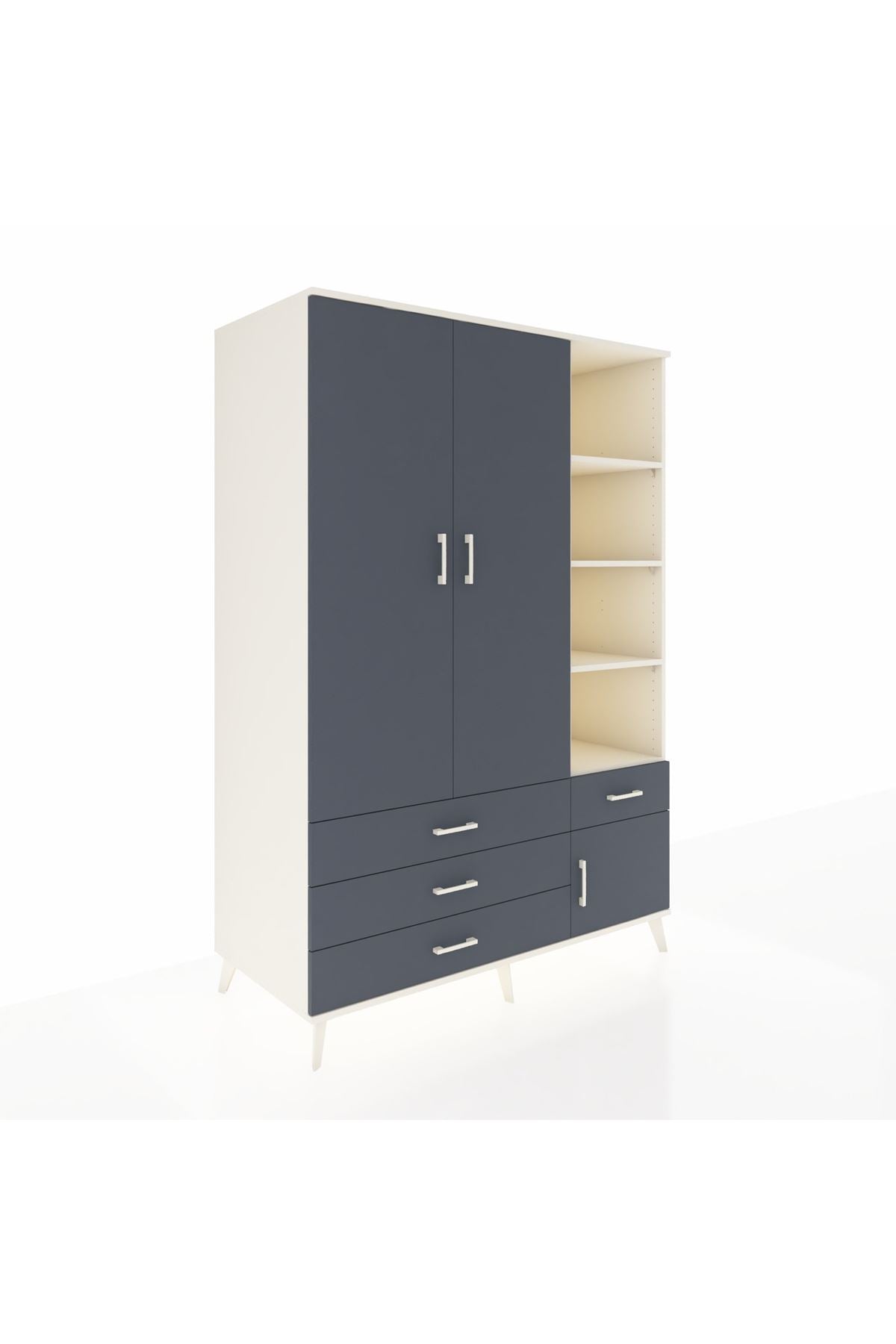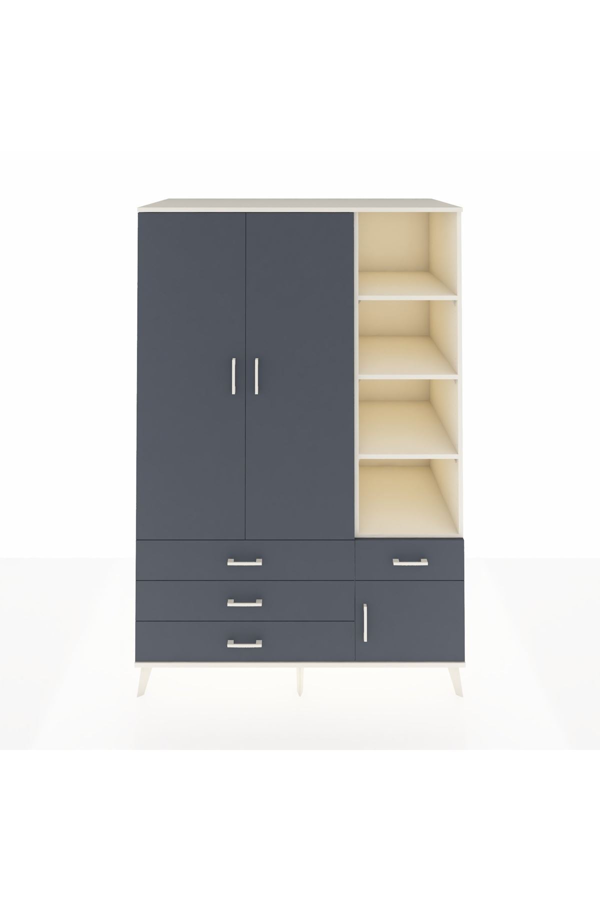 Geniş iç hacmiyle 7 adet raf, 4 çekmece ve 3 kapaklı bölümüyle fazladan depolama alanı sağlar. 📚🧥 Her türlü eşyanızı kolayca yerleştirebilir, evinizde düzeni koruyabilirsiniz.