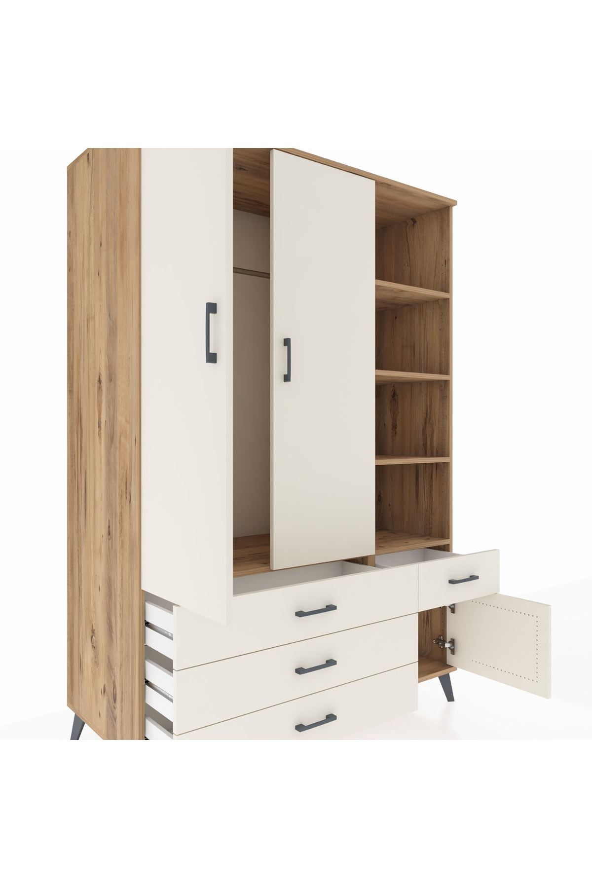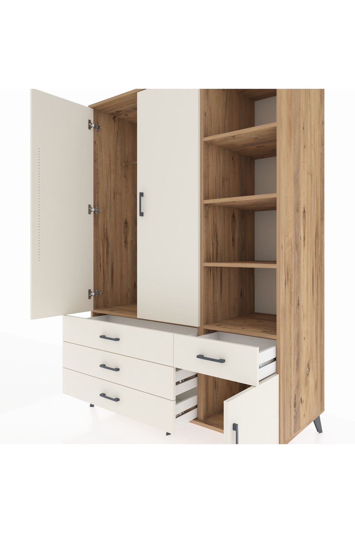 Kronos Dolap 5 Raflı 4 Çekmeceli Tek Askılı 132x59x195 Çam-Aytaşı/Aytaşı