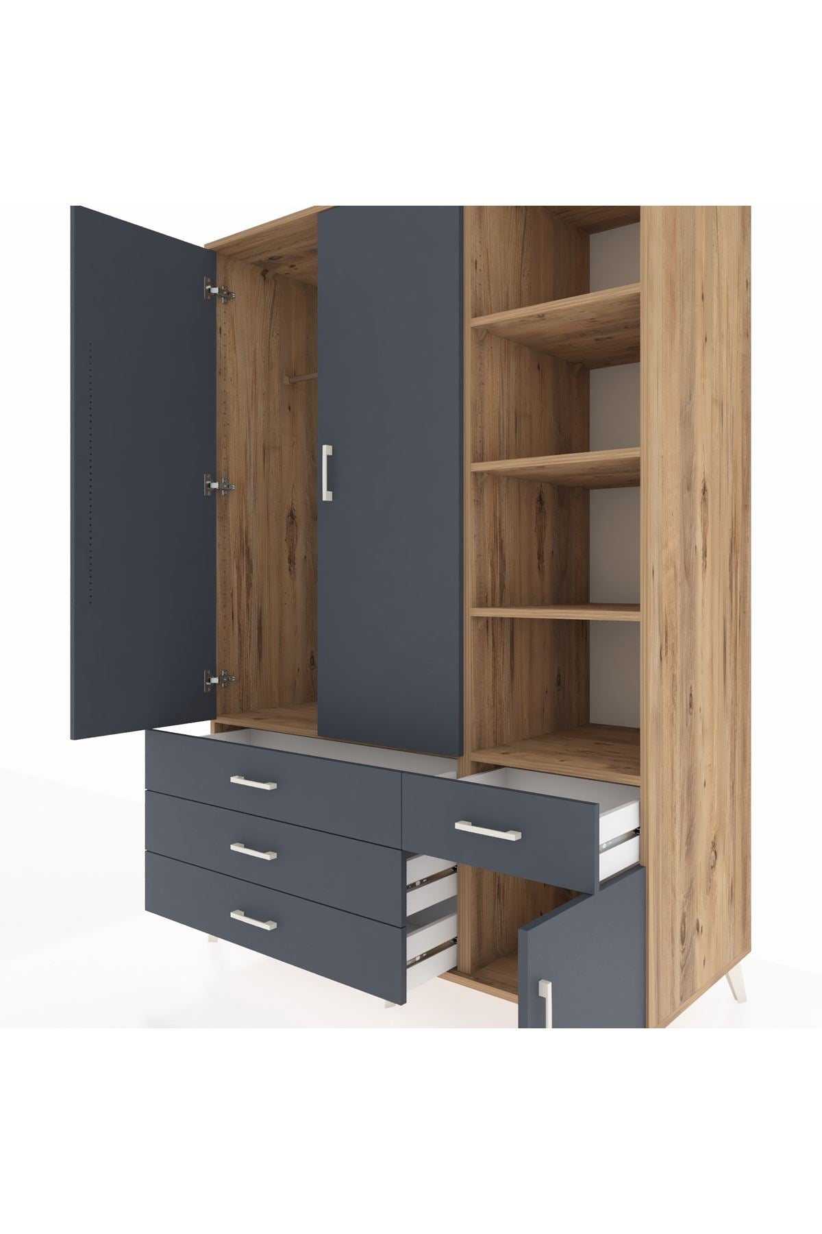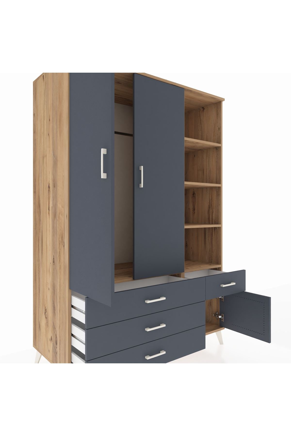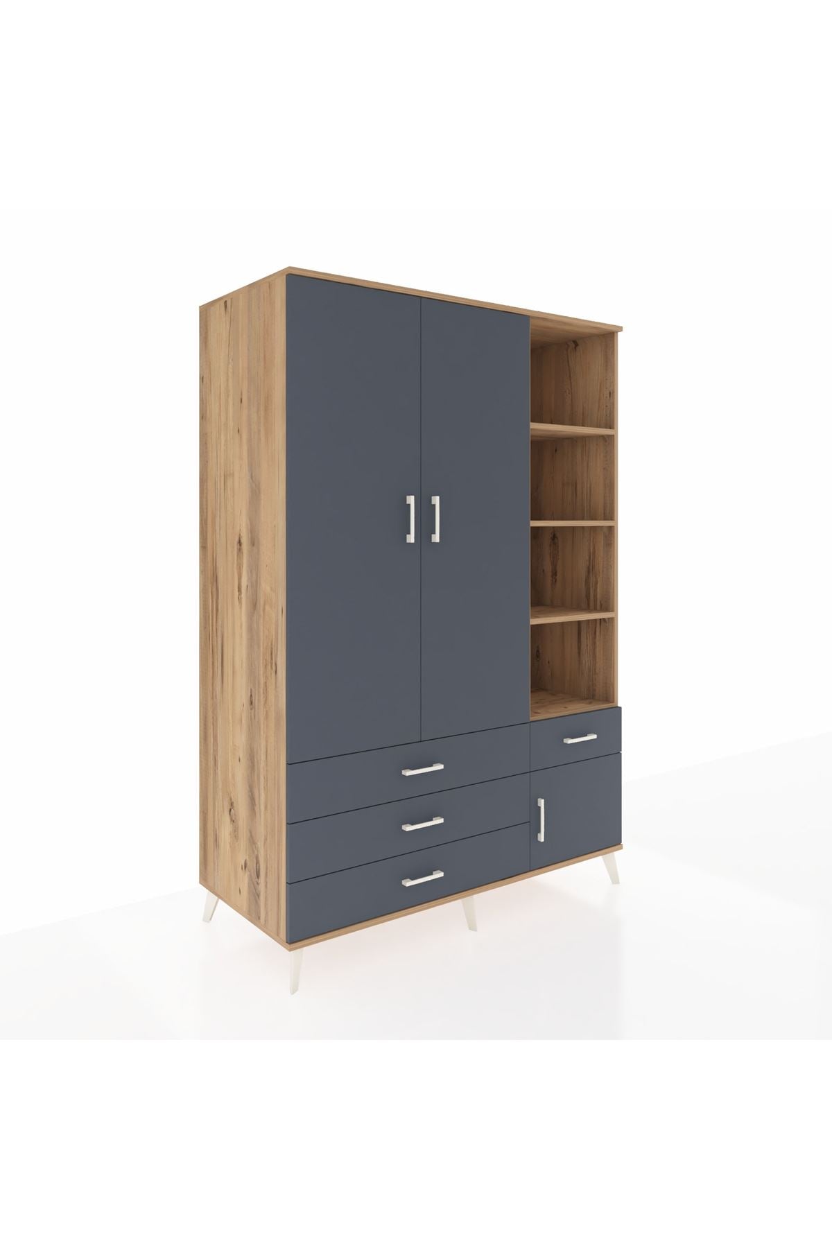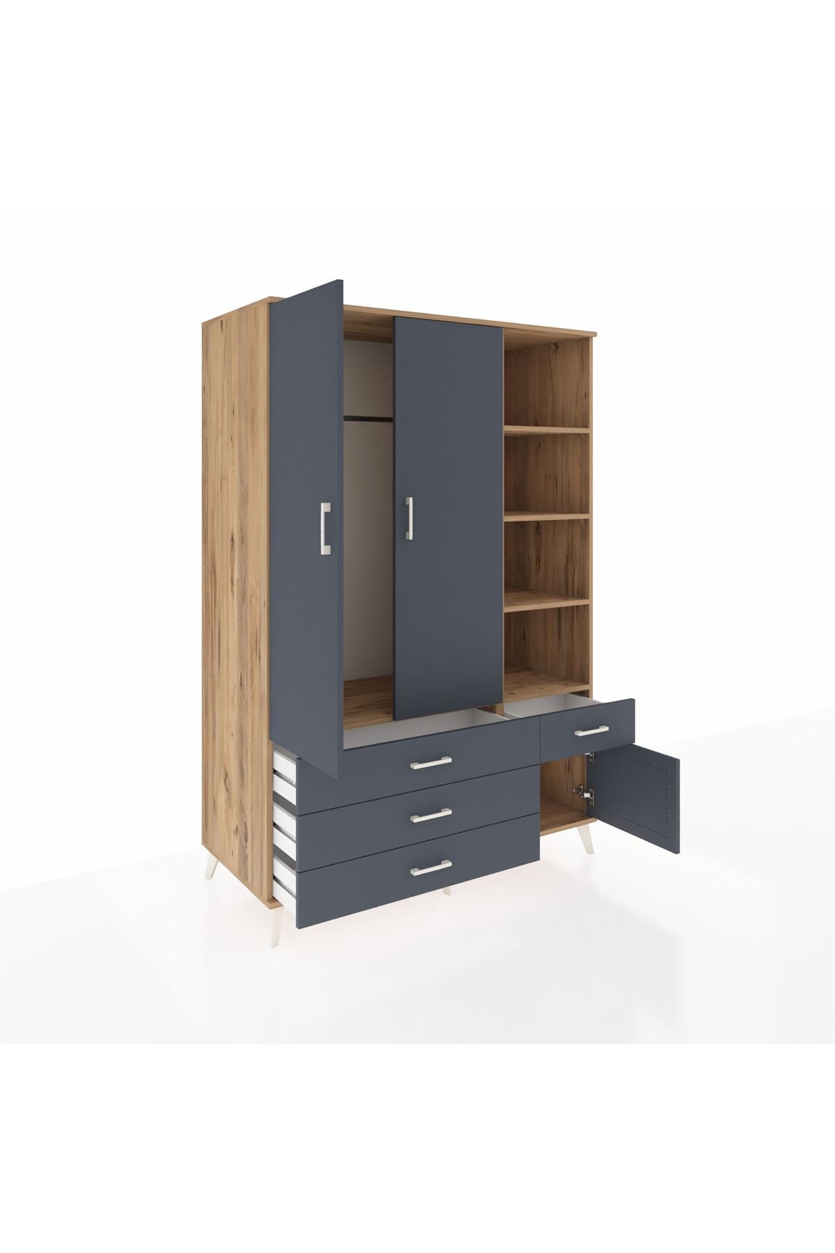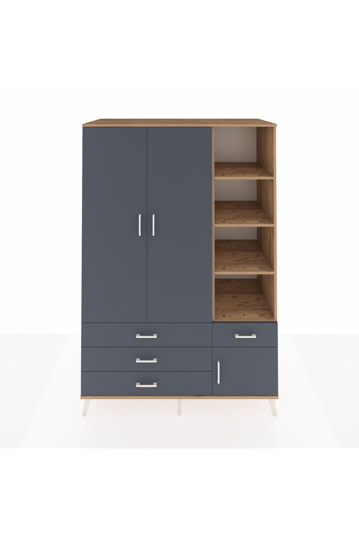 Kronos Dolap 5 Raflı 4 Çekmeceli Tek Askılı 132x59x195 Çam-Antrasit/Antrasit