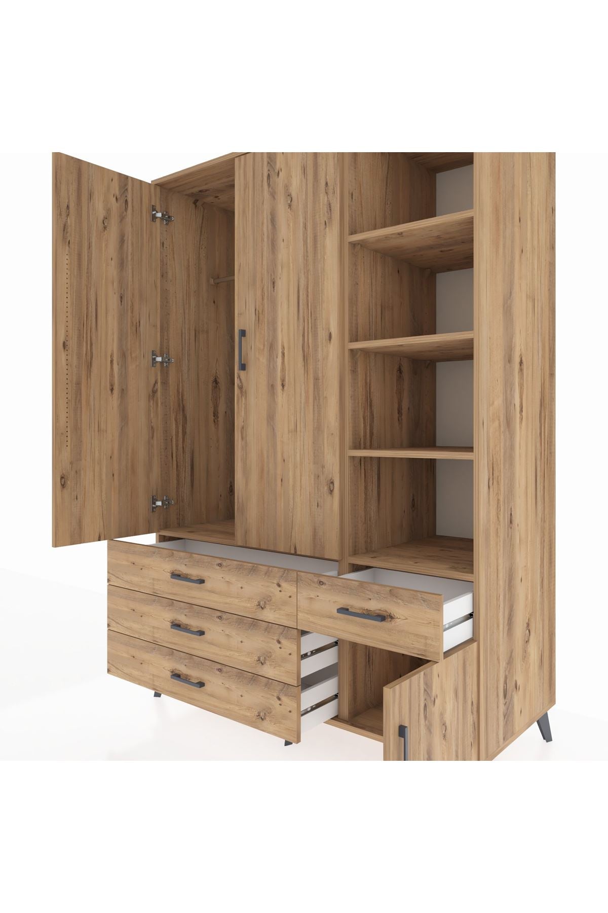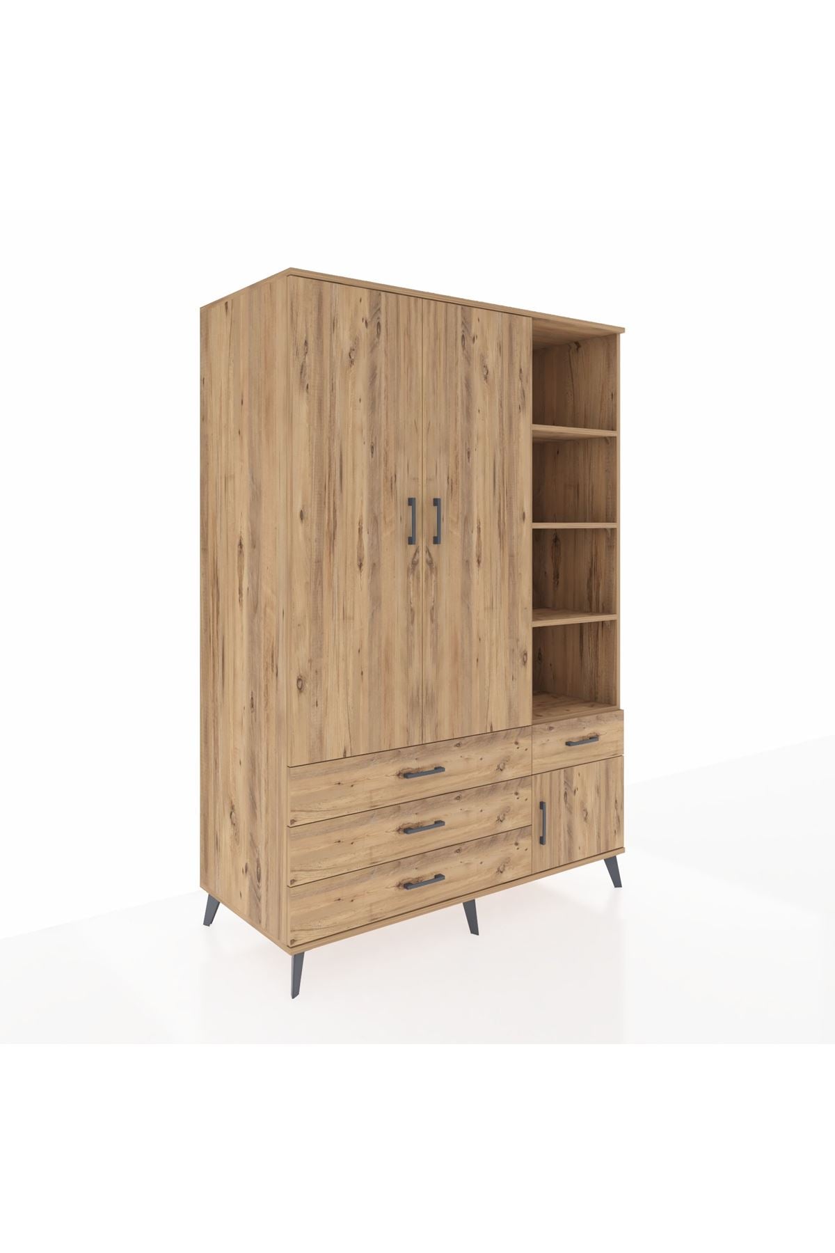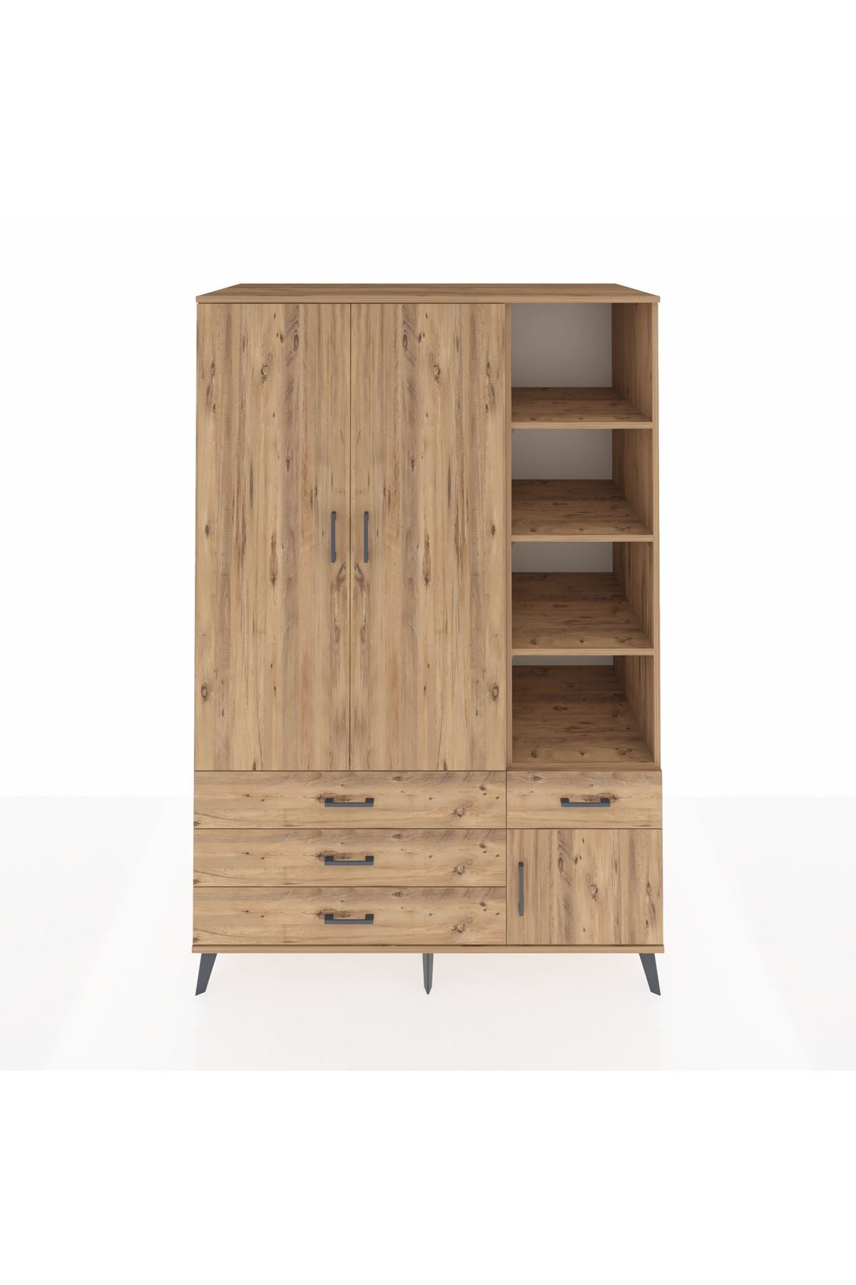 Kronos Dolap 5 Raflı 4 Çekmeceli Tek Askılı 132x59x195 Çam-Çam/Çam