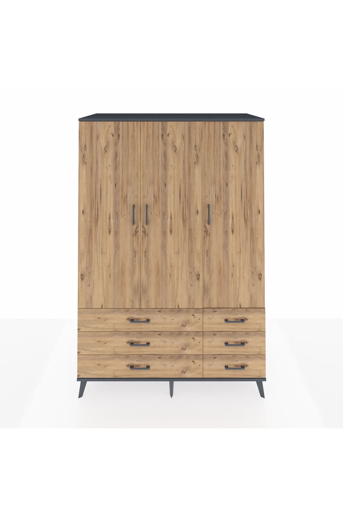 Kronos Dolap 5 Raflı 6 Çekmeceli Tek Askılı 132x59x195 Antrasit-Çam/Çam