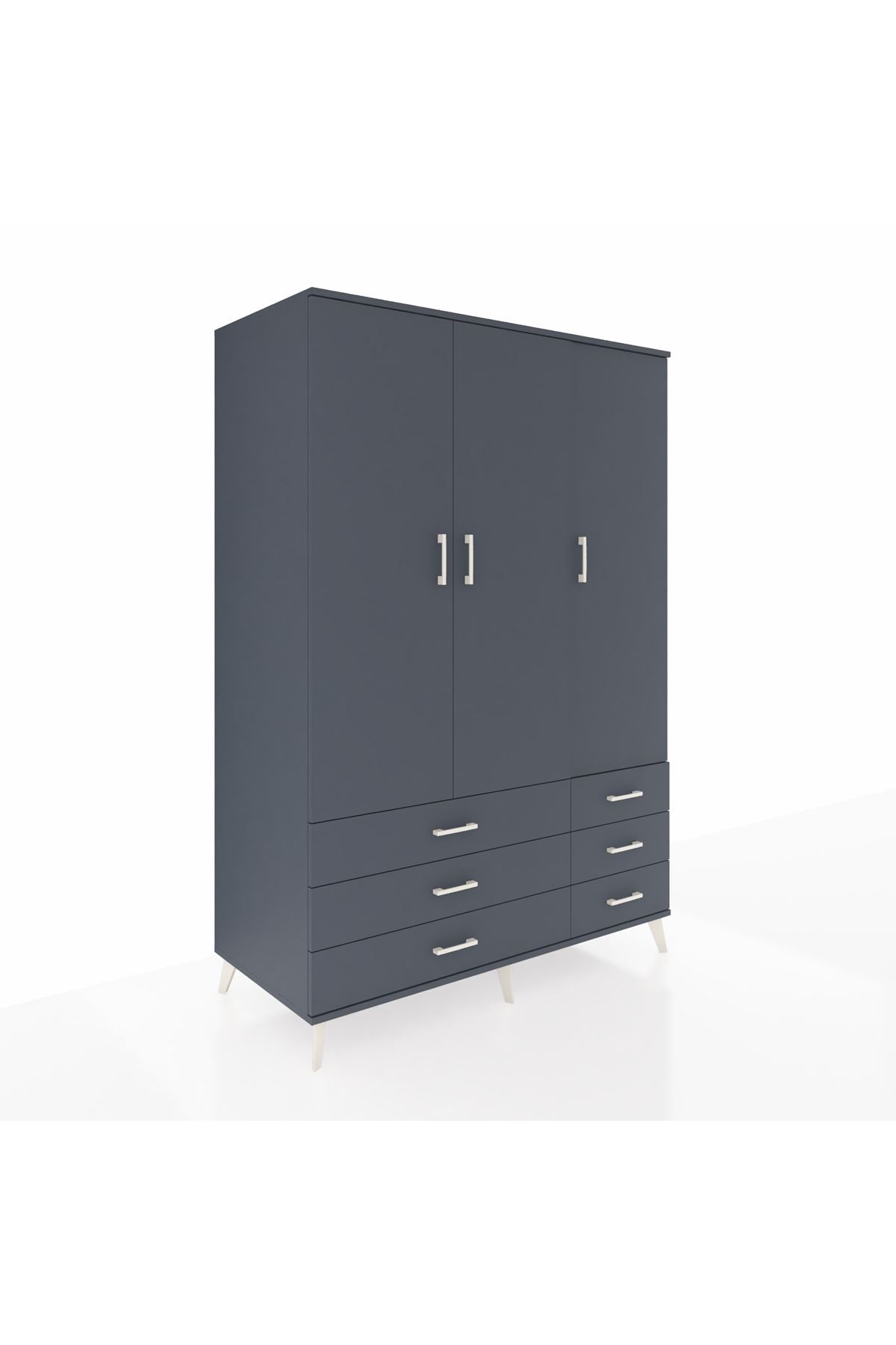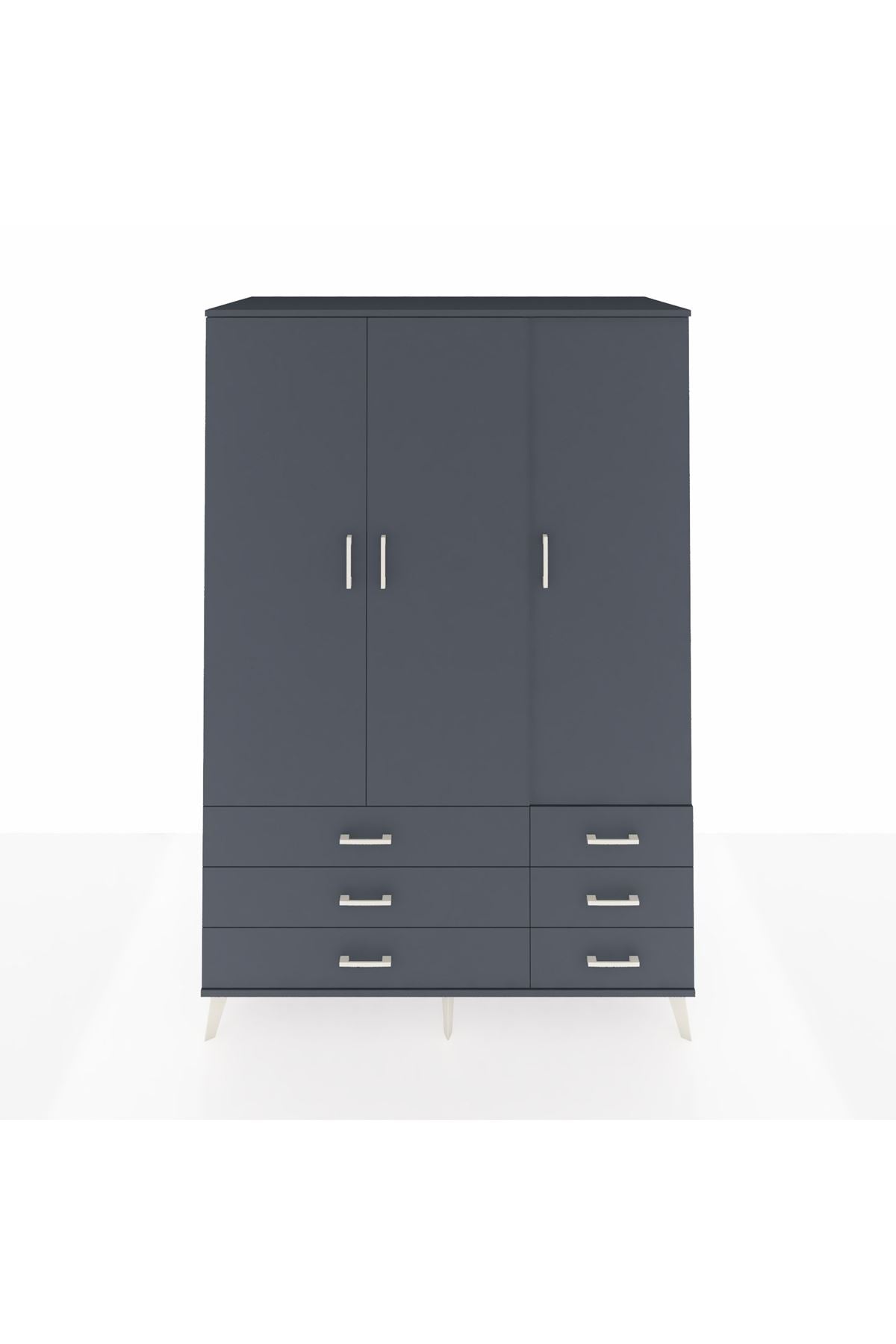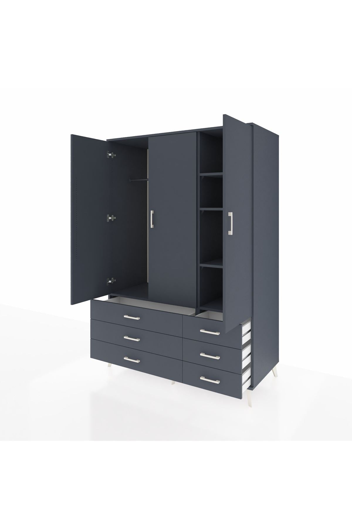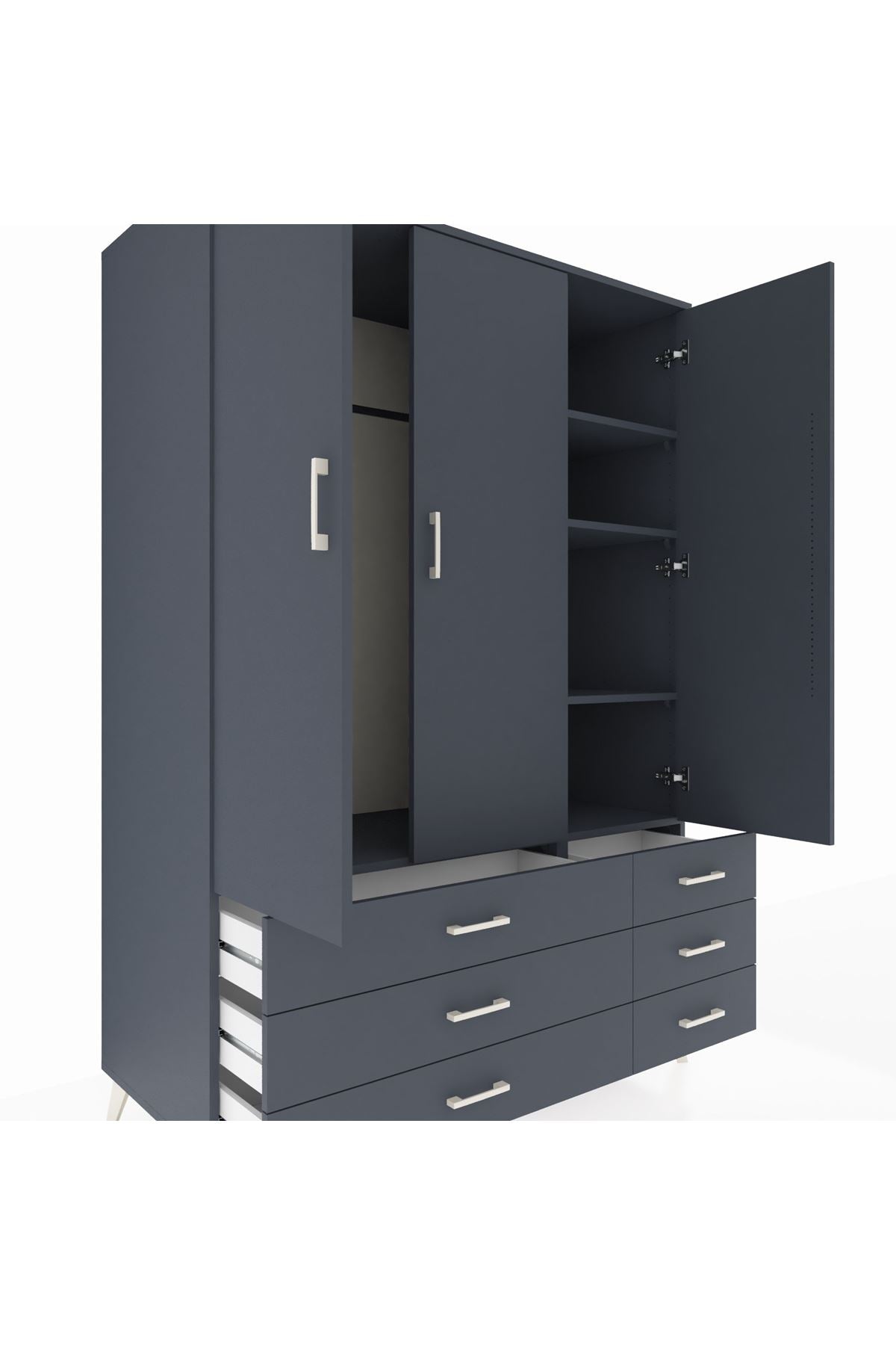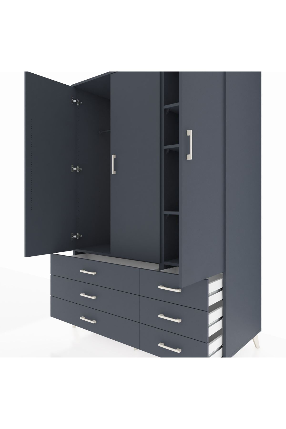 Kronos Dolap 5 Raflı 6 Çekmeceli Tek Askılı 132x59x195 Antrasit-Antrasit/Antrasit