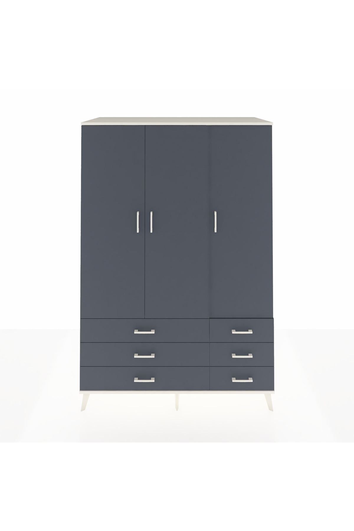 Kronos Dolap 5 Raflı 6 Çekmeceli Tek Askılı 132x59x195 Aytaşı-Antrasit/Antrasit