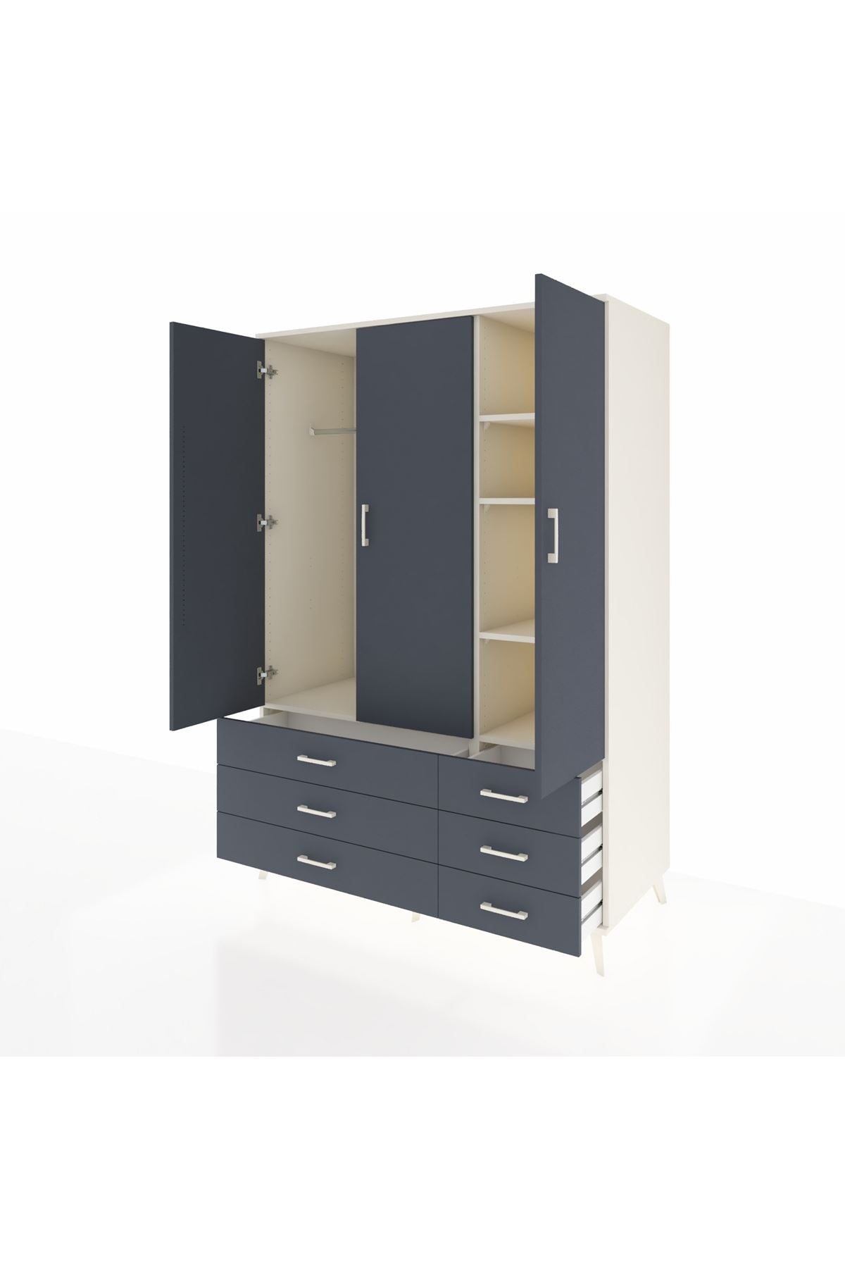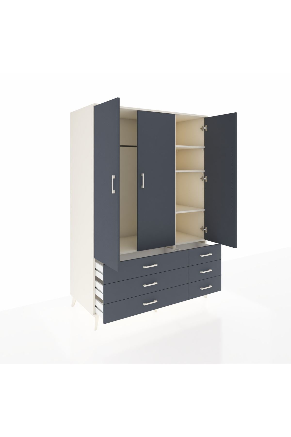 - Elbise dolabı: 195 cm yüksekliğiyle uzun giysilere de uygun bir çözüm.