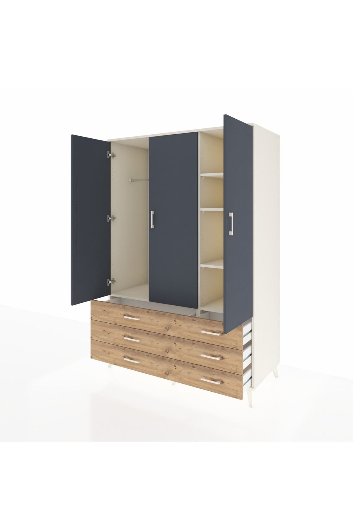 Modern yaşam alanlarına uyum sağlayan Kronos Dolap, 7 geniş rafı, 4 kullanışlı çekmecesi ve 3 kapaklı yapısıyla evinizde düzenin anahtarı olacak 🗄️