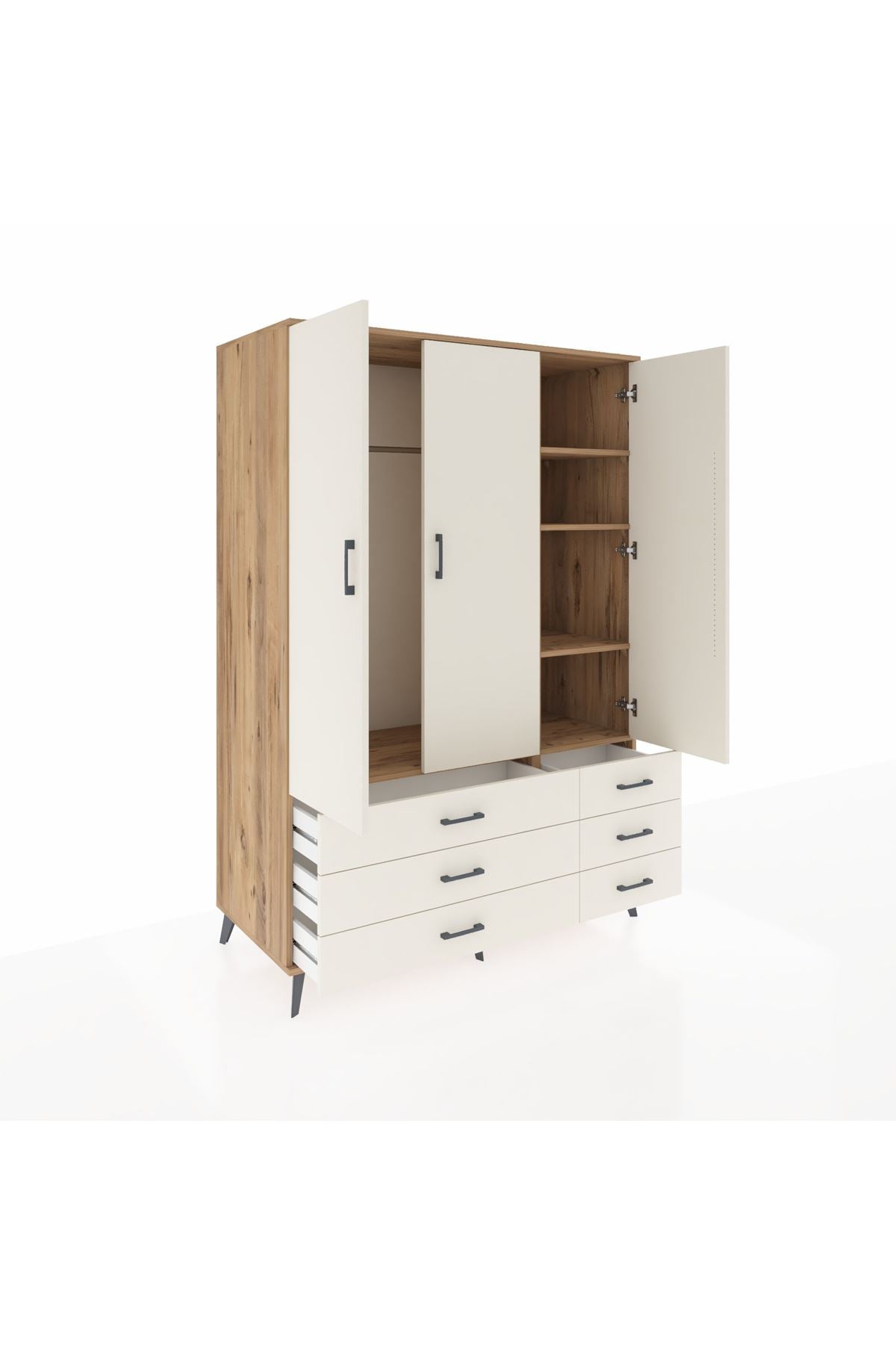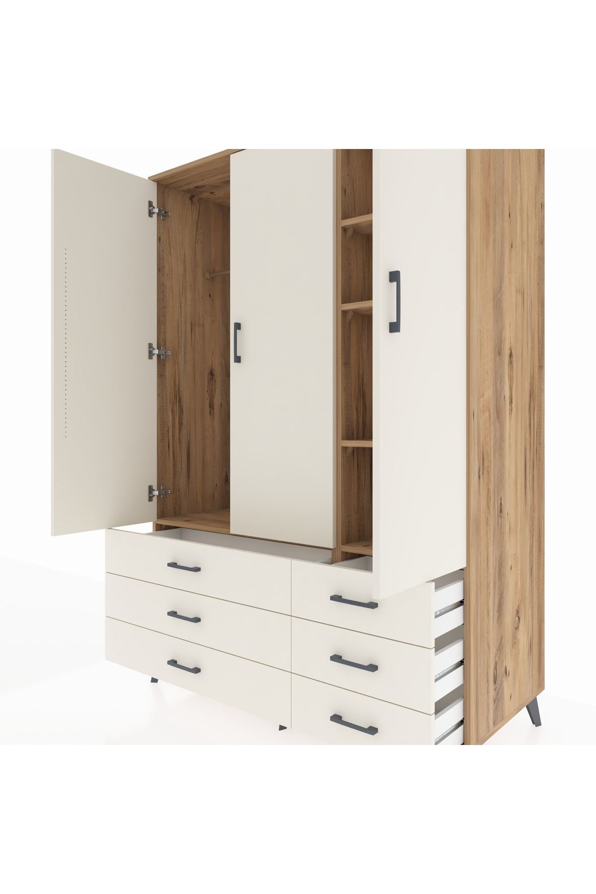 Kronos Dolap 5 Raflı 6 Çekmeceli Tek Askılı 132x59x195 Çam-Aytaşı/Aytaşı