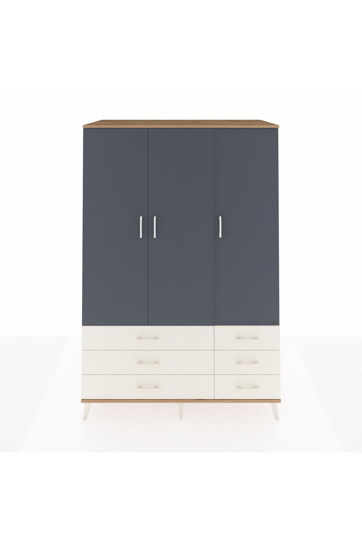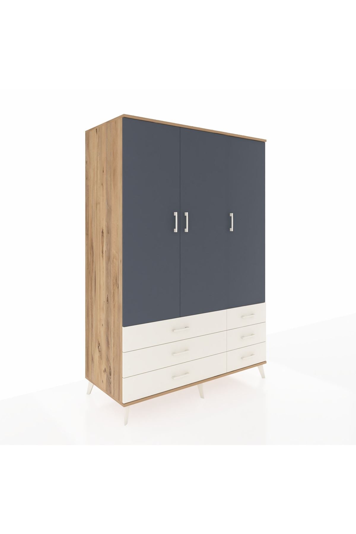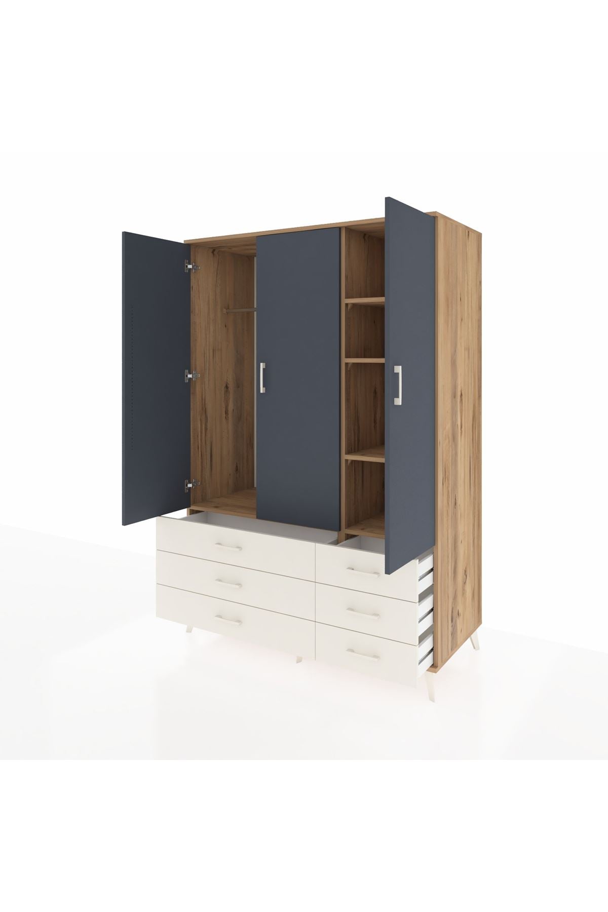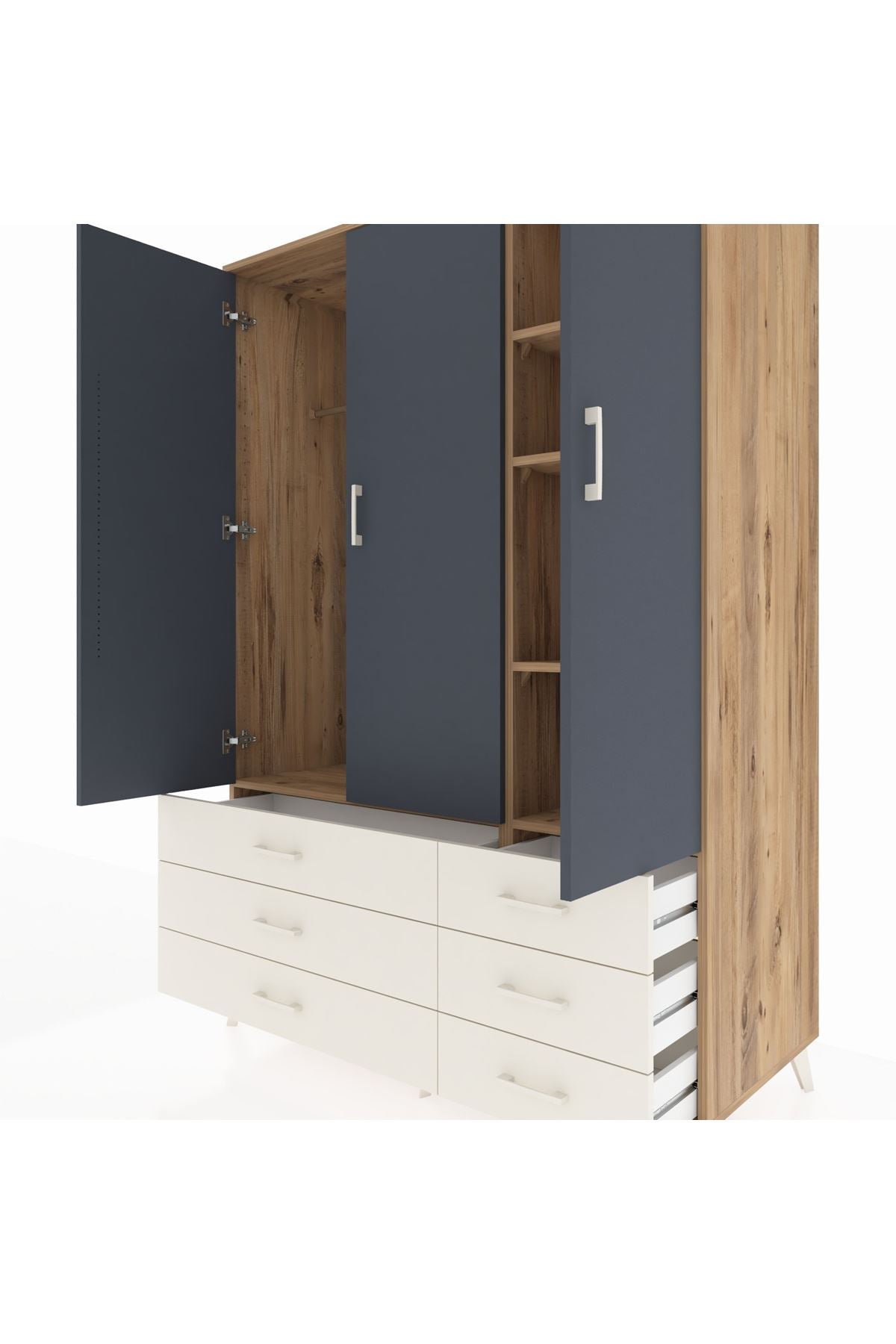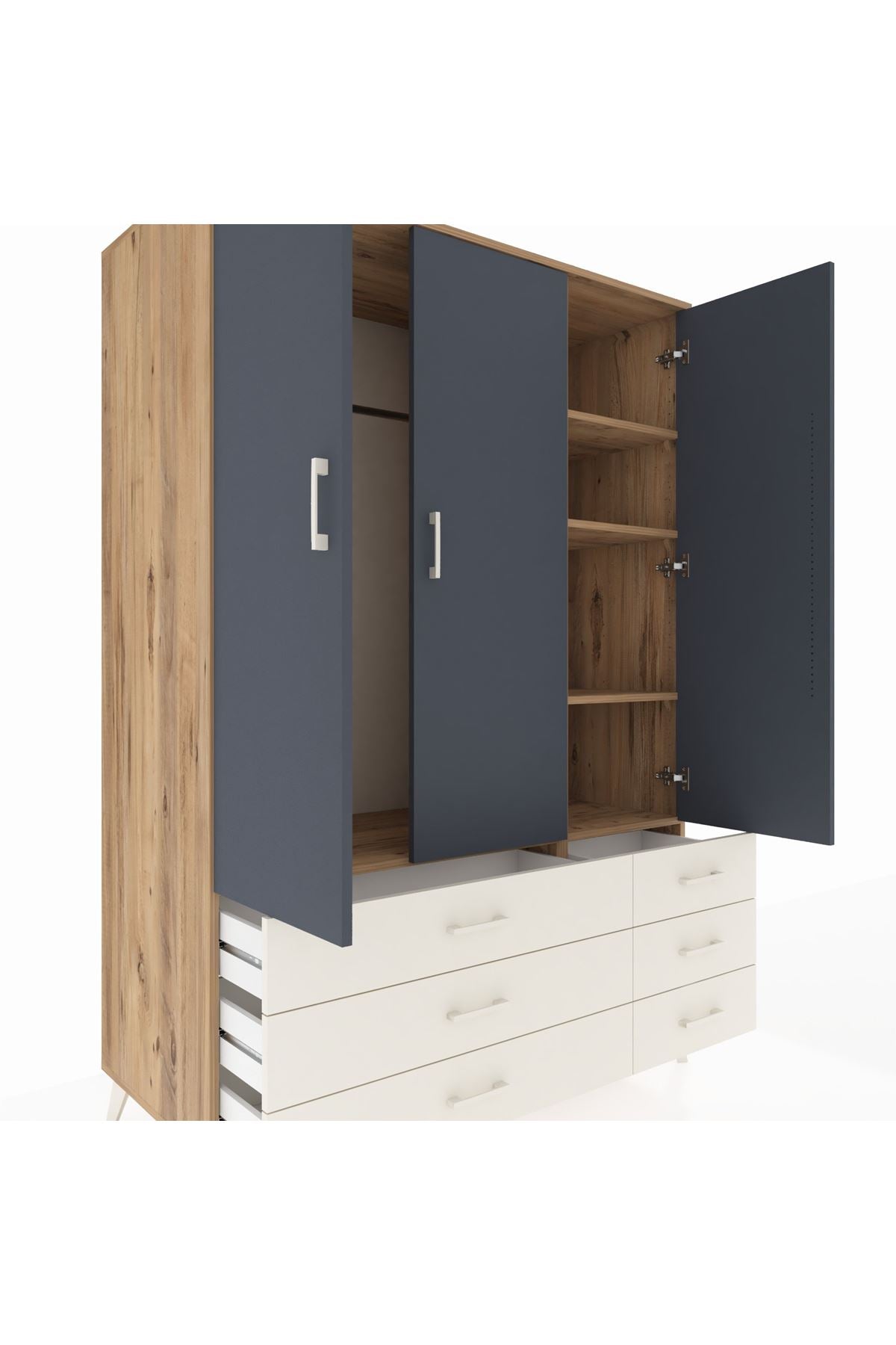 Kronos Dolap 5 Raflı 6 Çekmeceli Tek Askılı 132x59x195 Çam-Antrasit/Aytaşı