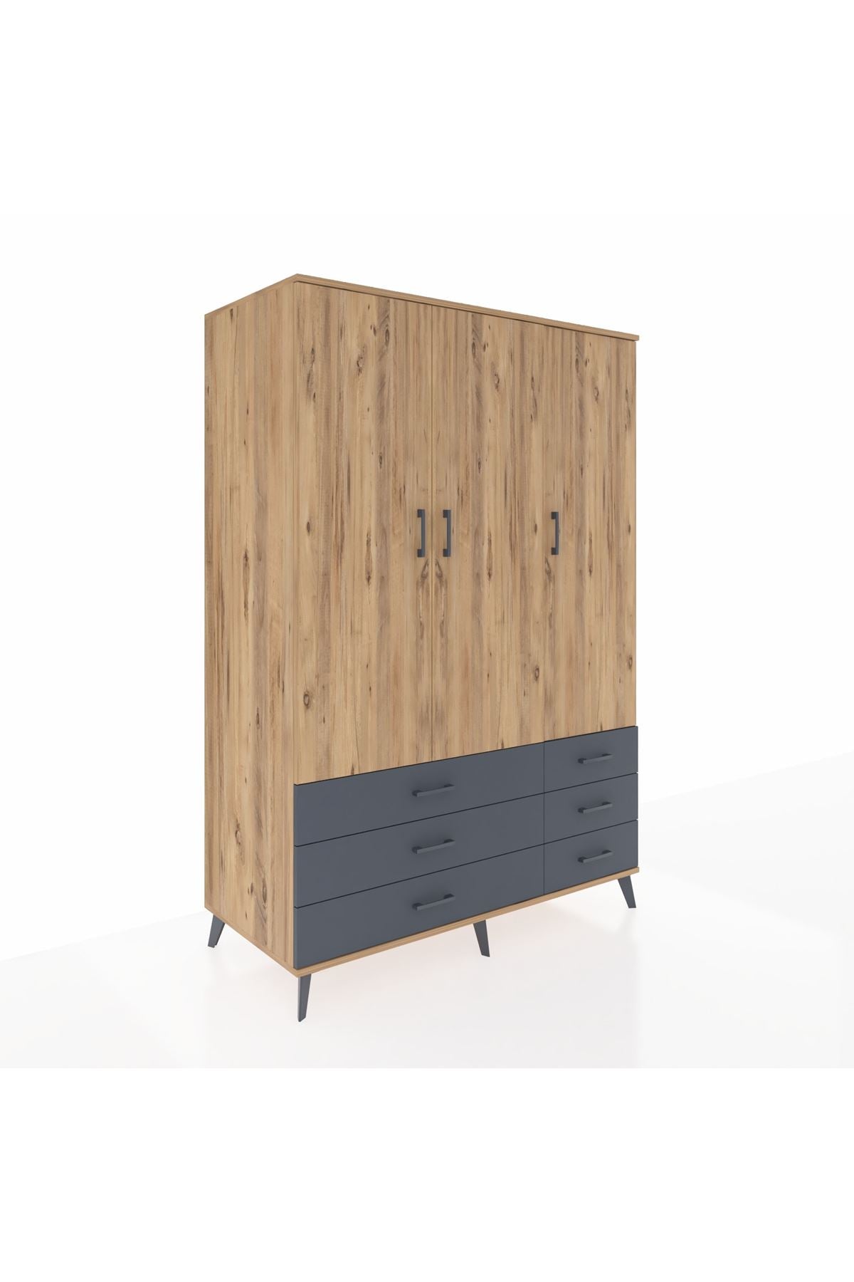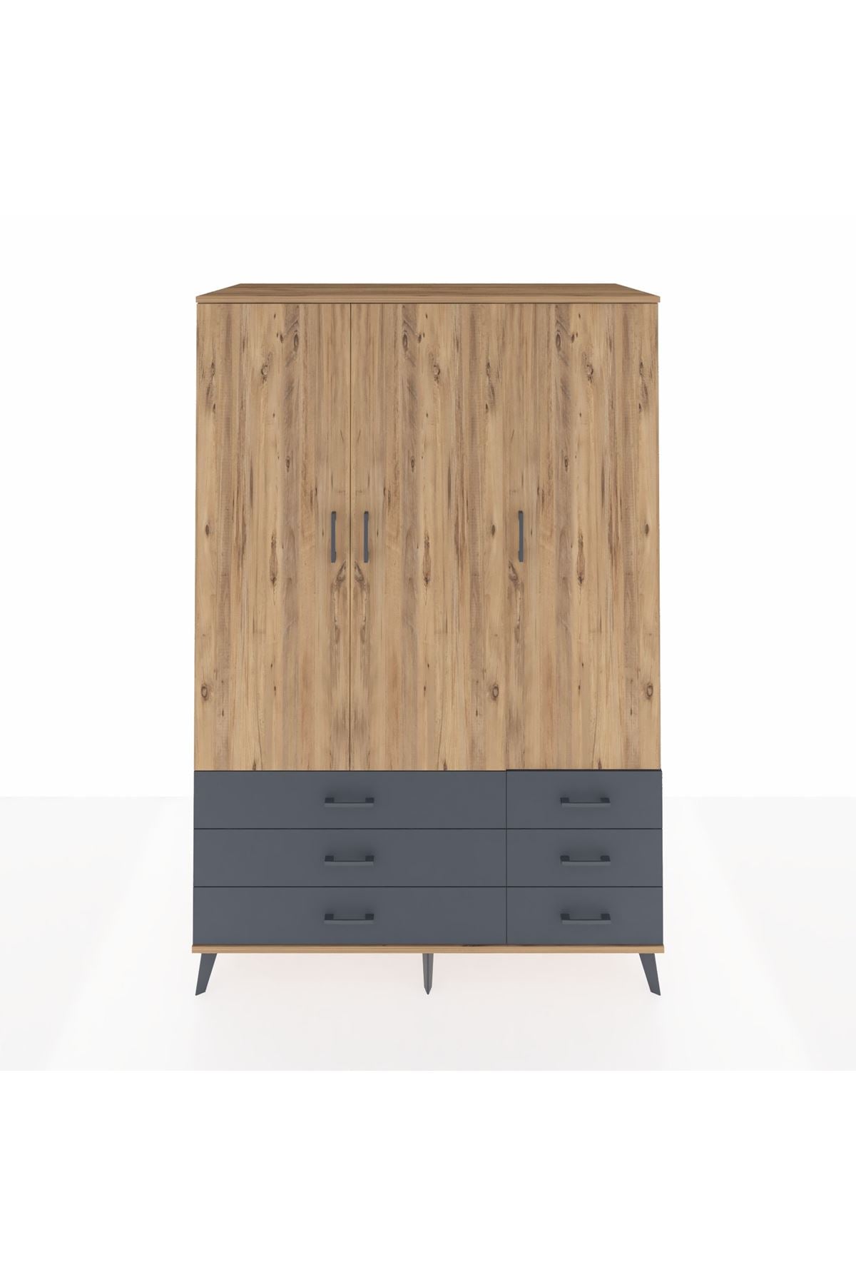🌞 Kronos Dolap 9 Raflı 6 Kapaklı 132x59x195 Çam-Antrasit/Aytaşı
