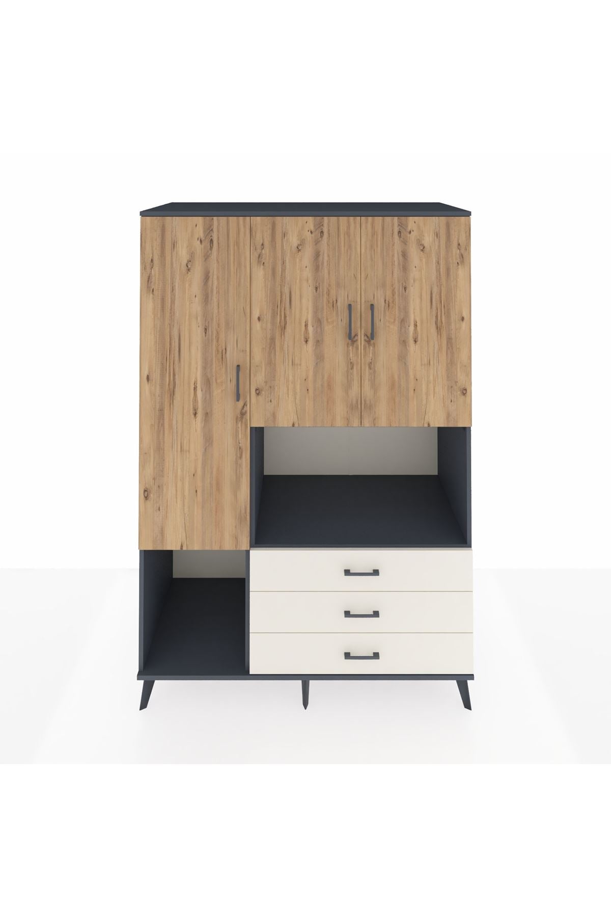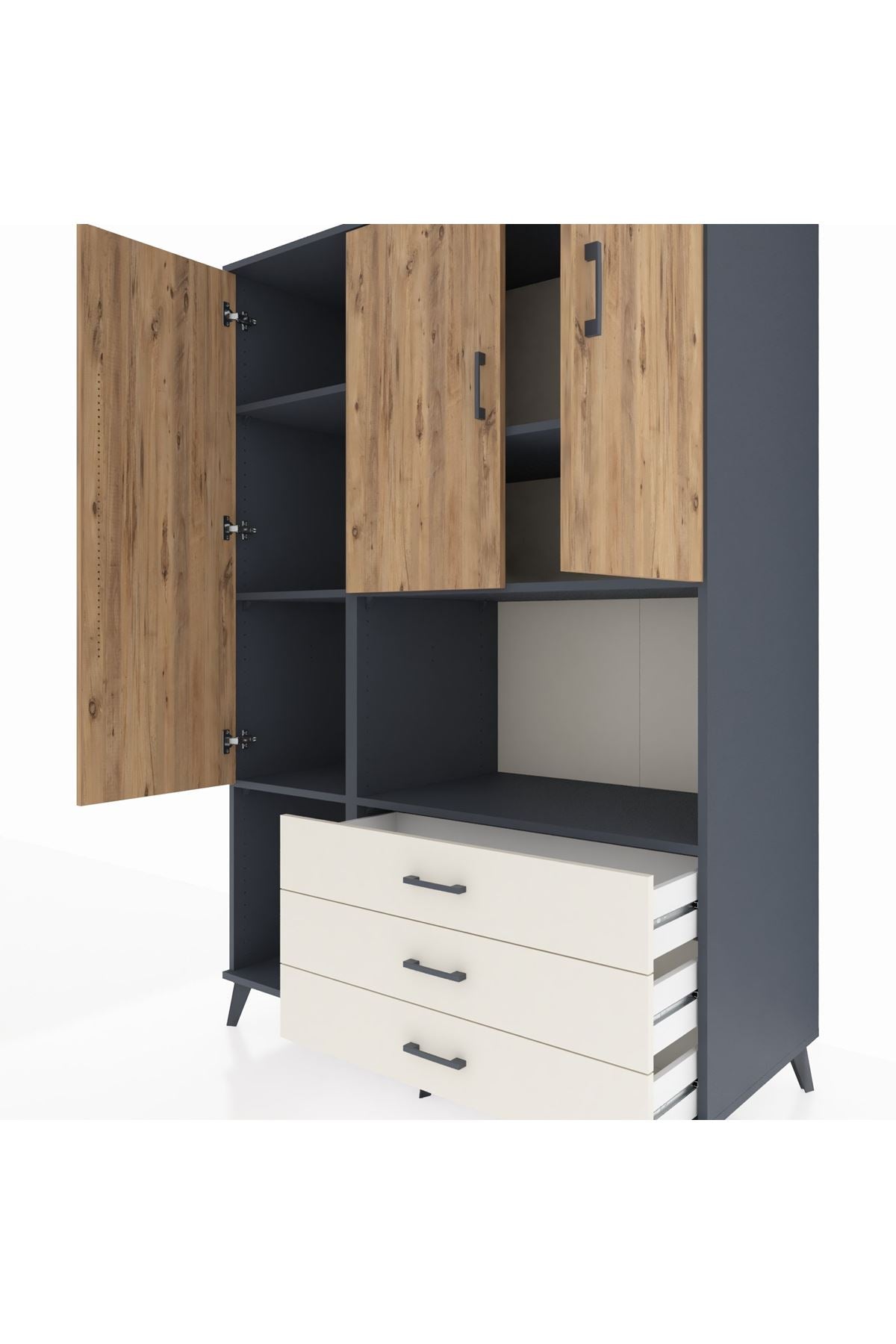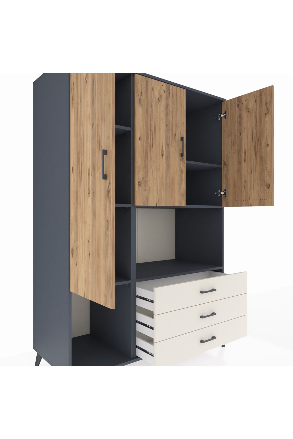 Kronos Dolap 6 Raflı 3 Çekmeceli 3 Kapaklı 132x59x195 Antrasit-Çam/Aytaşı