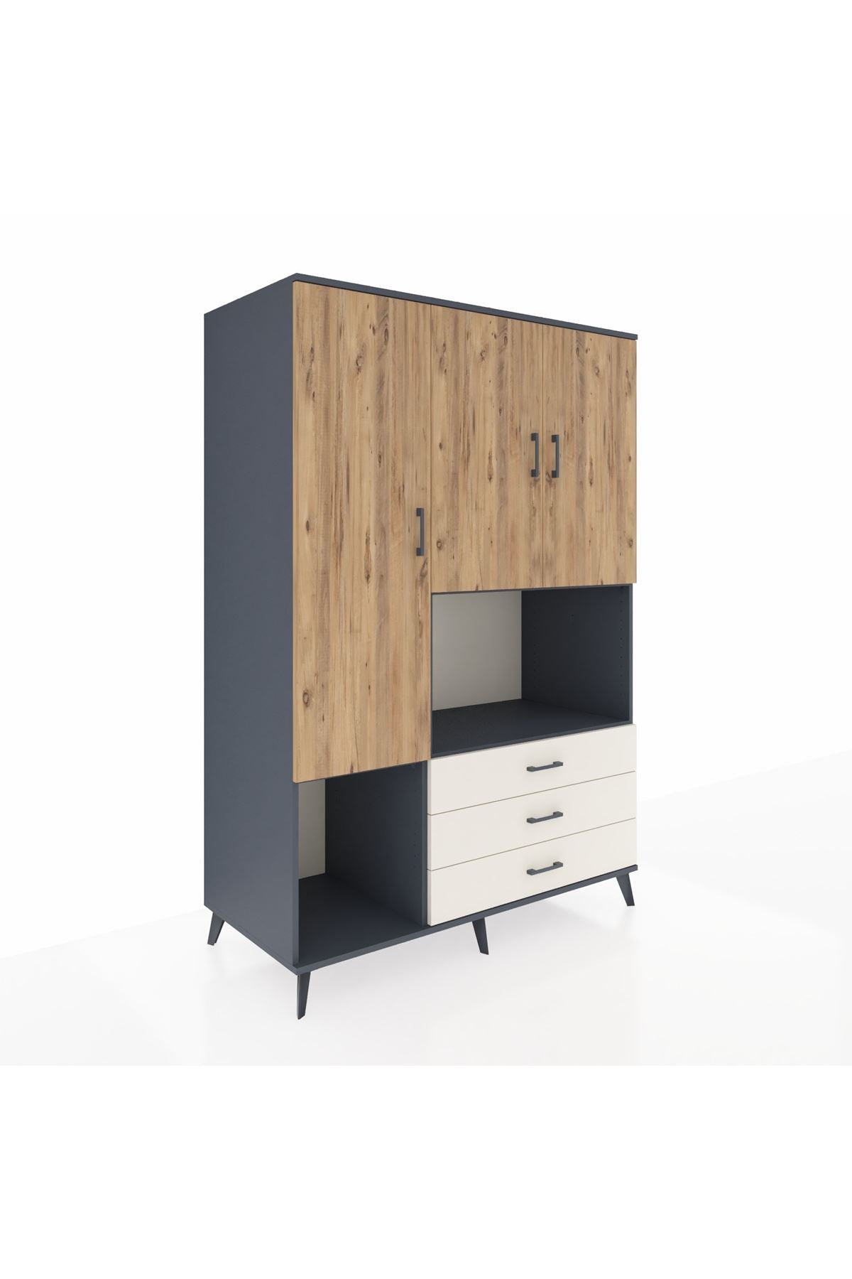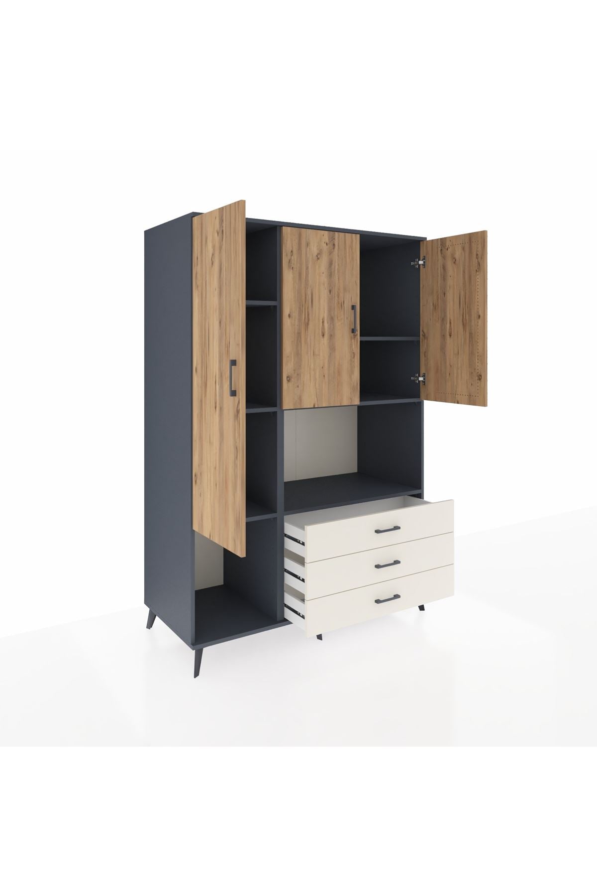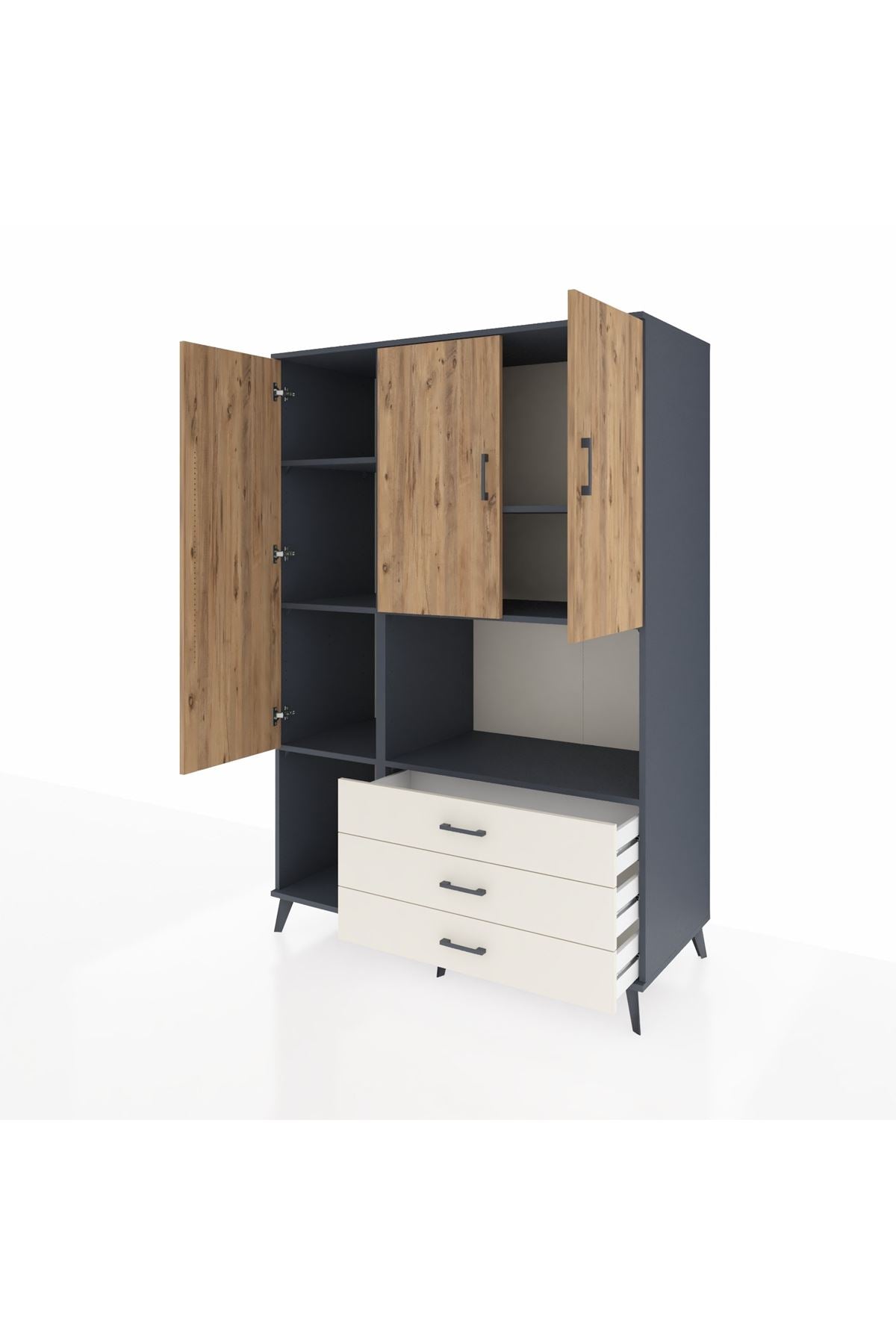 Kronos Dolap 6 Raflı 3 Çekmeceli 3 Kapaklı 132x59x195 Antrasit-Çam/Aytaşı
