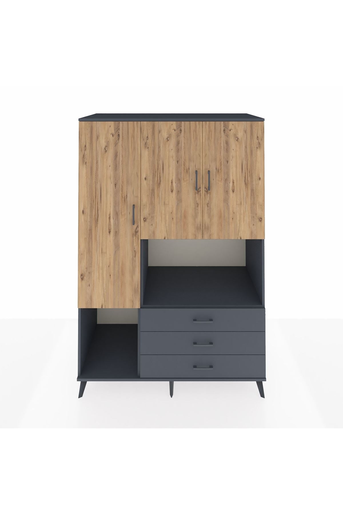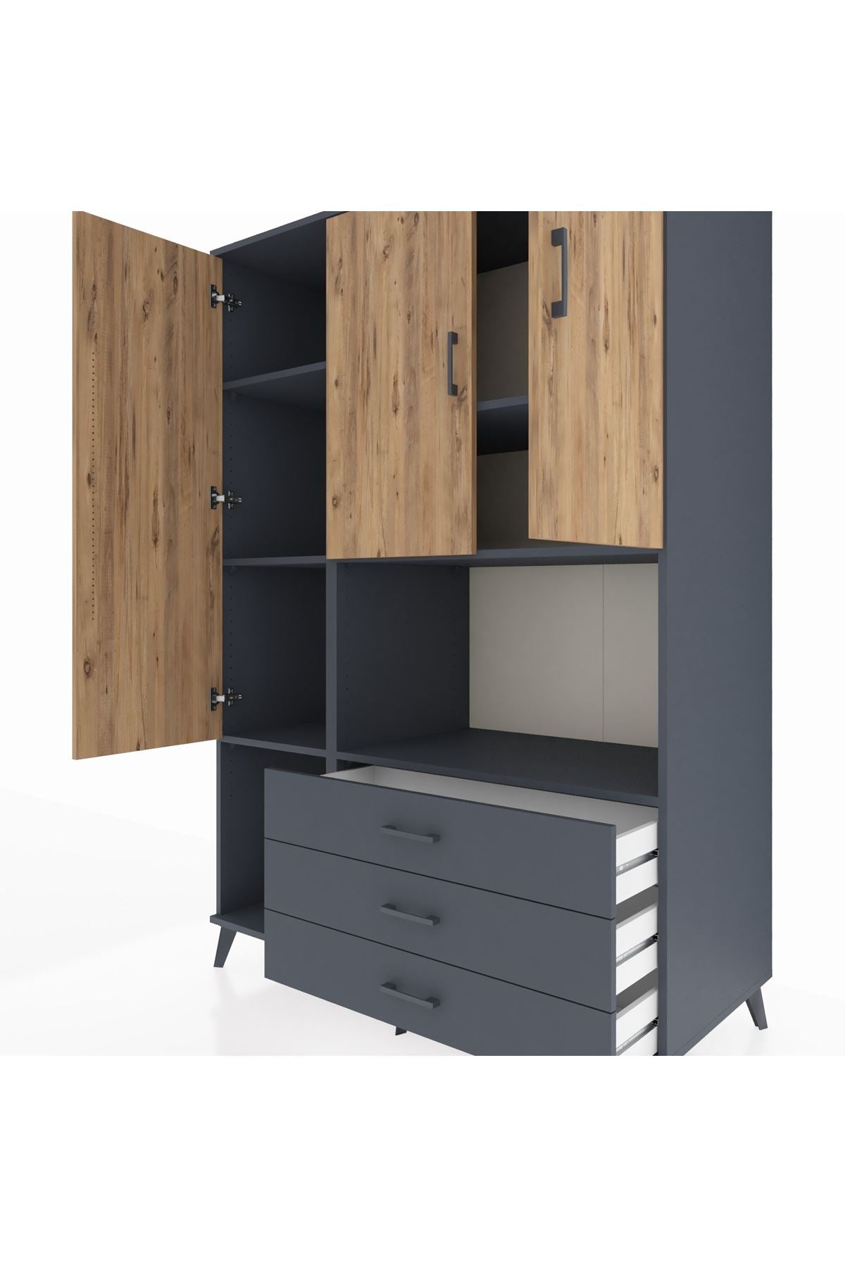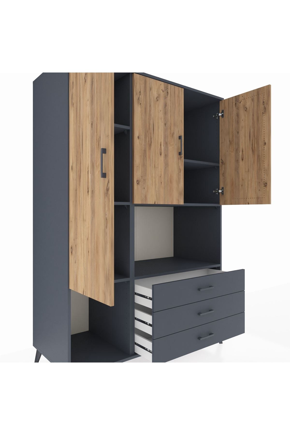 Kronos Dolap 6 Raflı 3 Çekmeceli 3 Kapaklı 132x59x195 Antrasit-Çam/Antrasit
