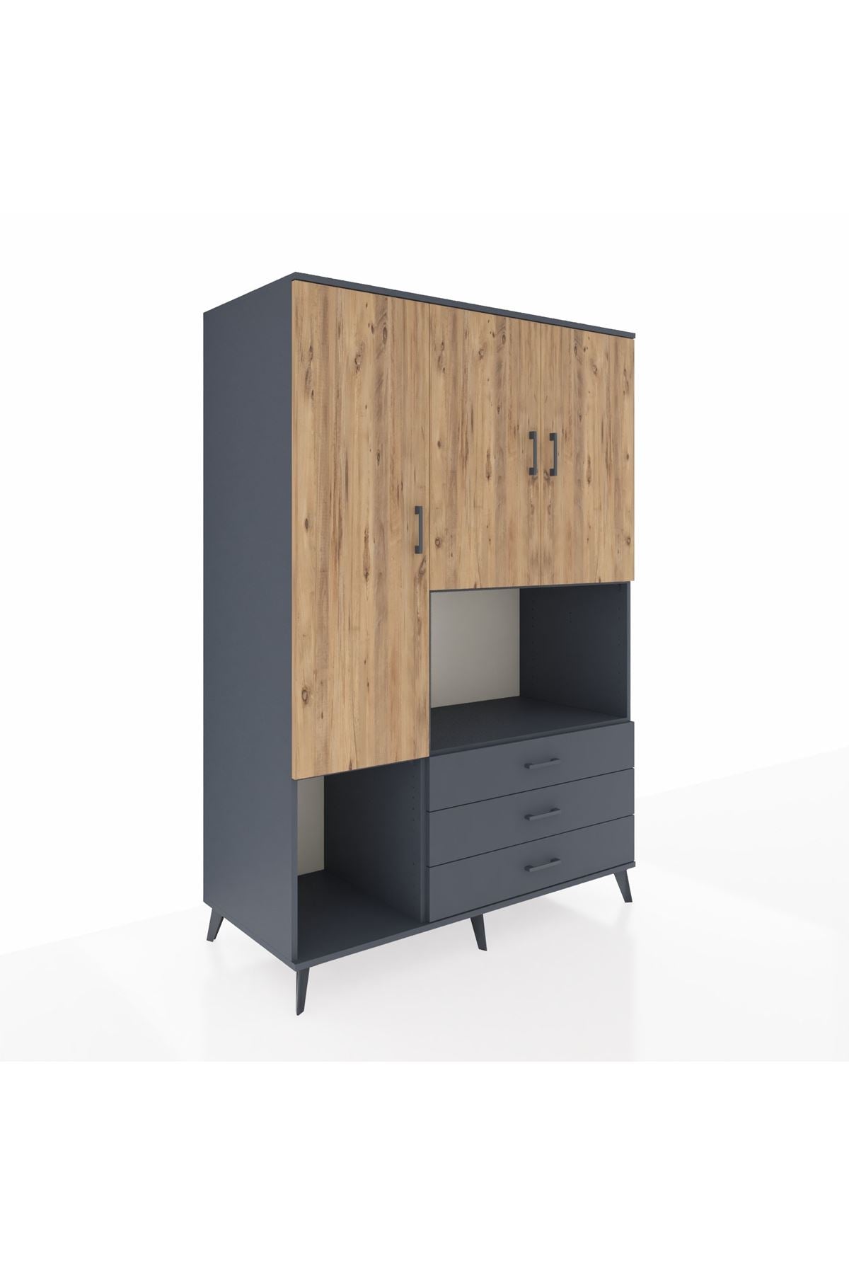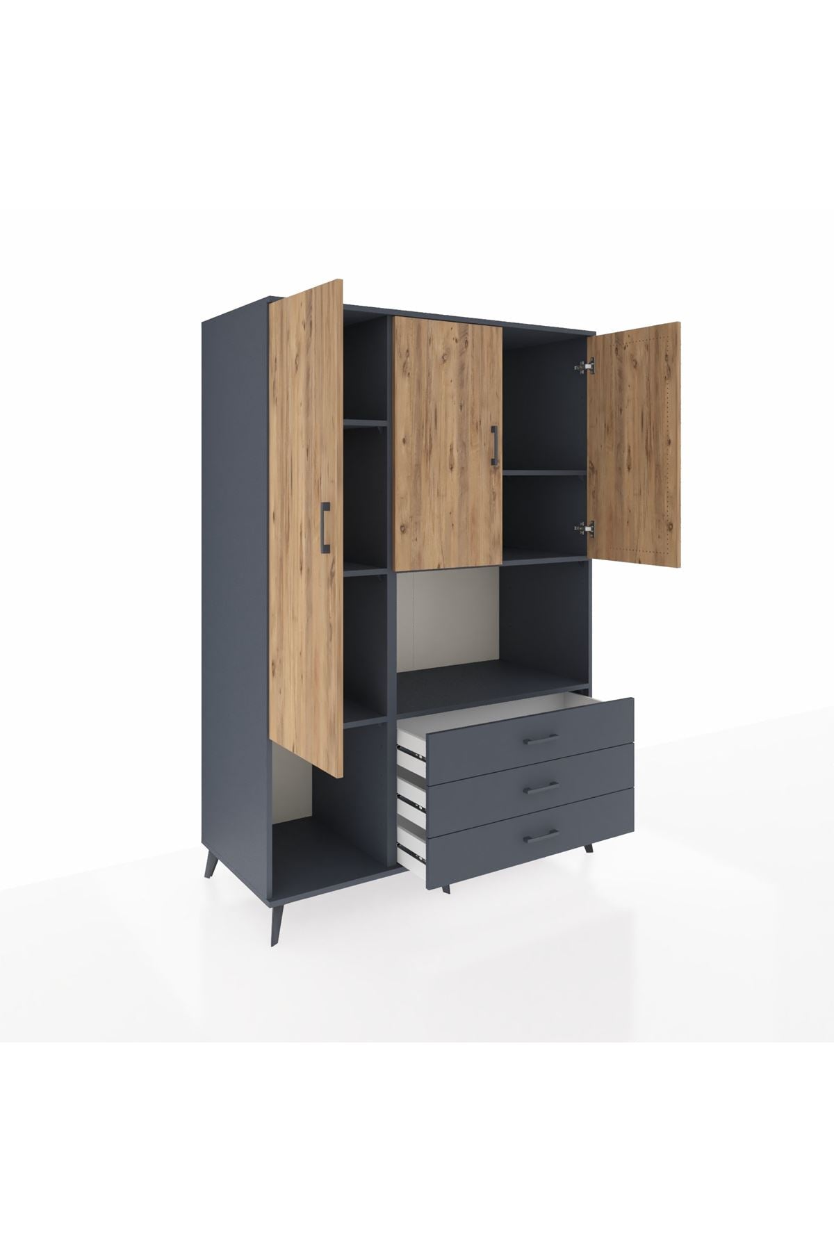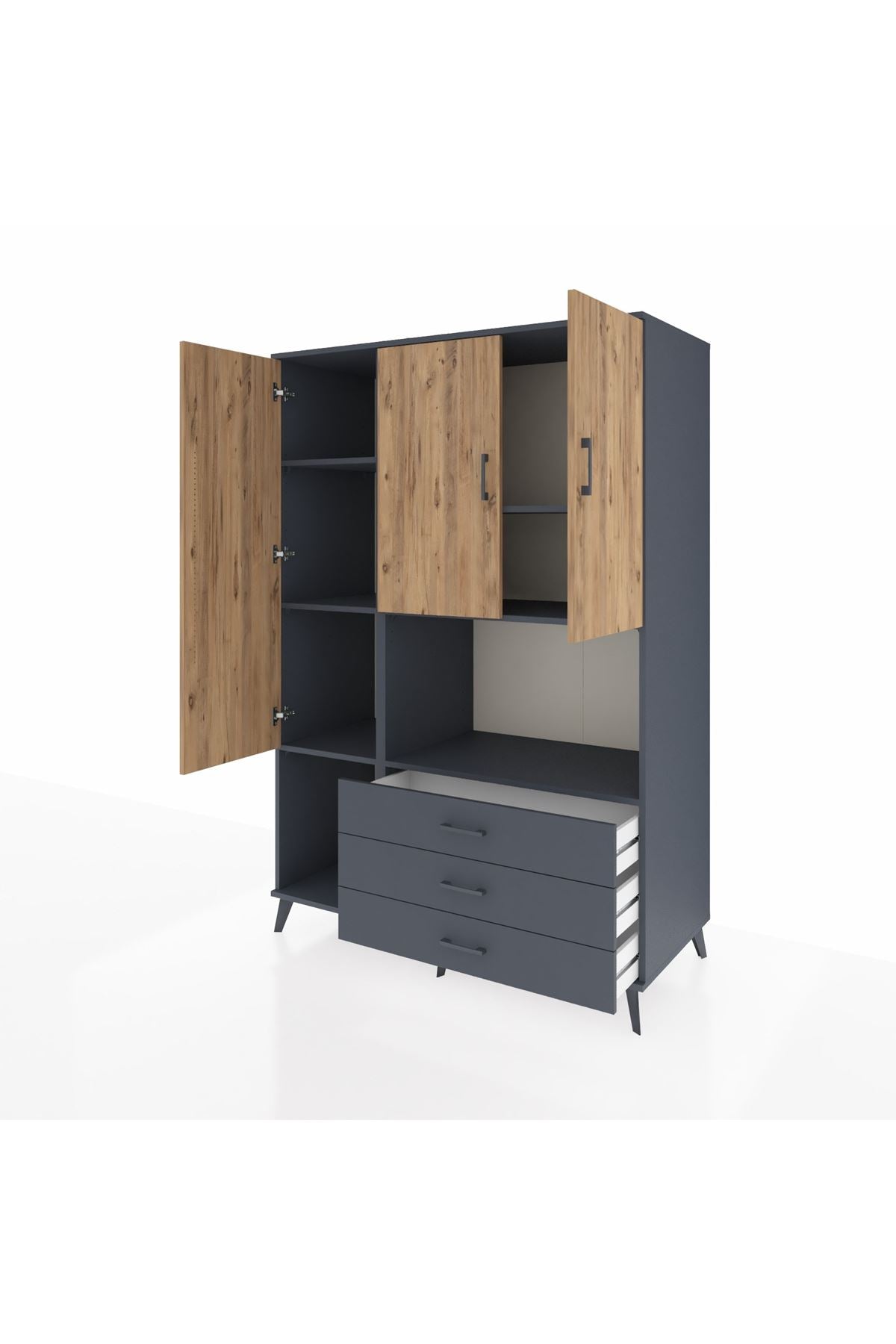 Kronos Dolap 6 Raflı 3 Çekmeceli 3 Kapaklı 132x59x195 Antrasit-Çam/Antrasit
