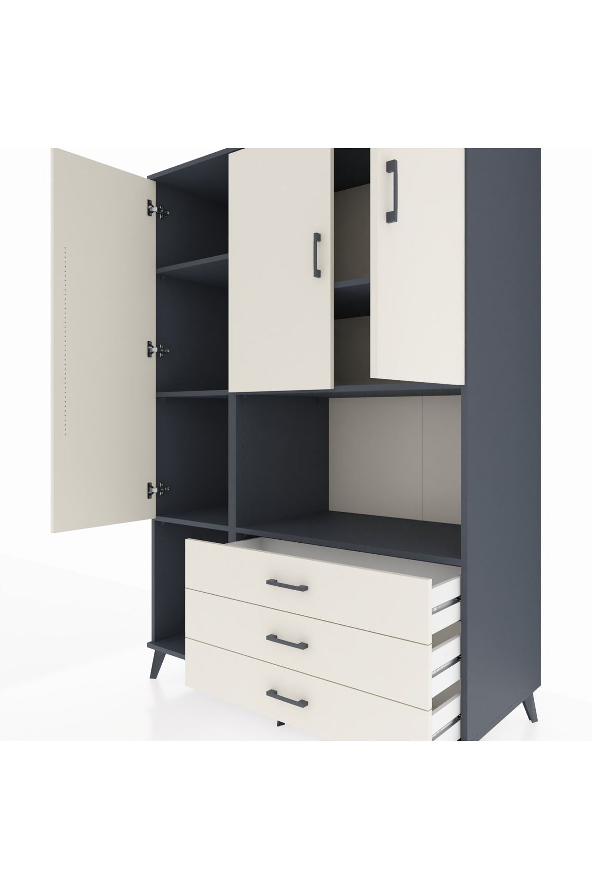 Kronos Dolap 6 Raflı 3 Çekmeceli 3 Kapaklı 132x59x195 Antrasit-Aytaşı/Aytaşı