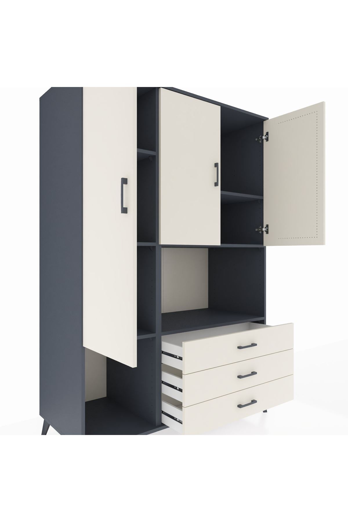 6 geniş rafı, 3 kullanışlı çekmecesi ve 3 kapaklı bölümüyle; giyinme odasından antreye, ofisten çocuk odasına kadar birçok alanda düzenin anahtarı olacak.