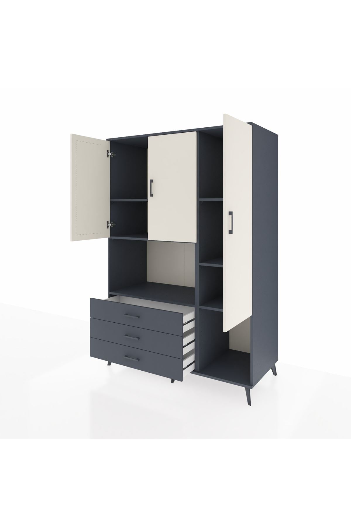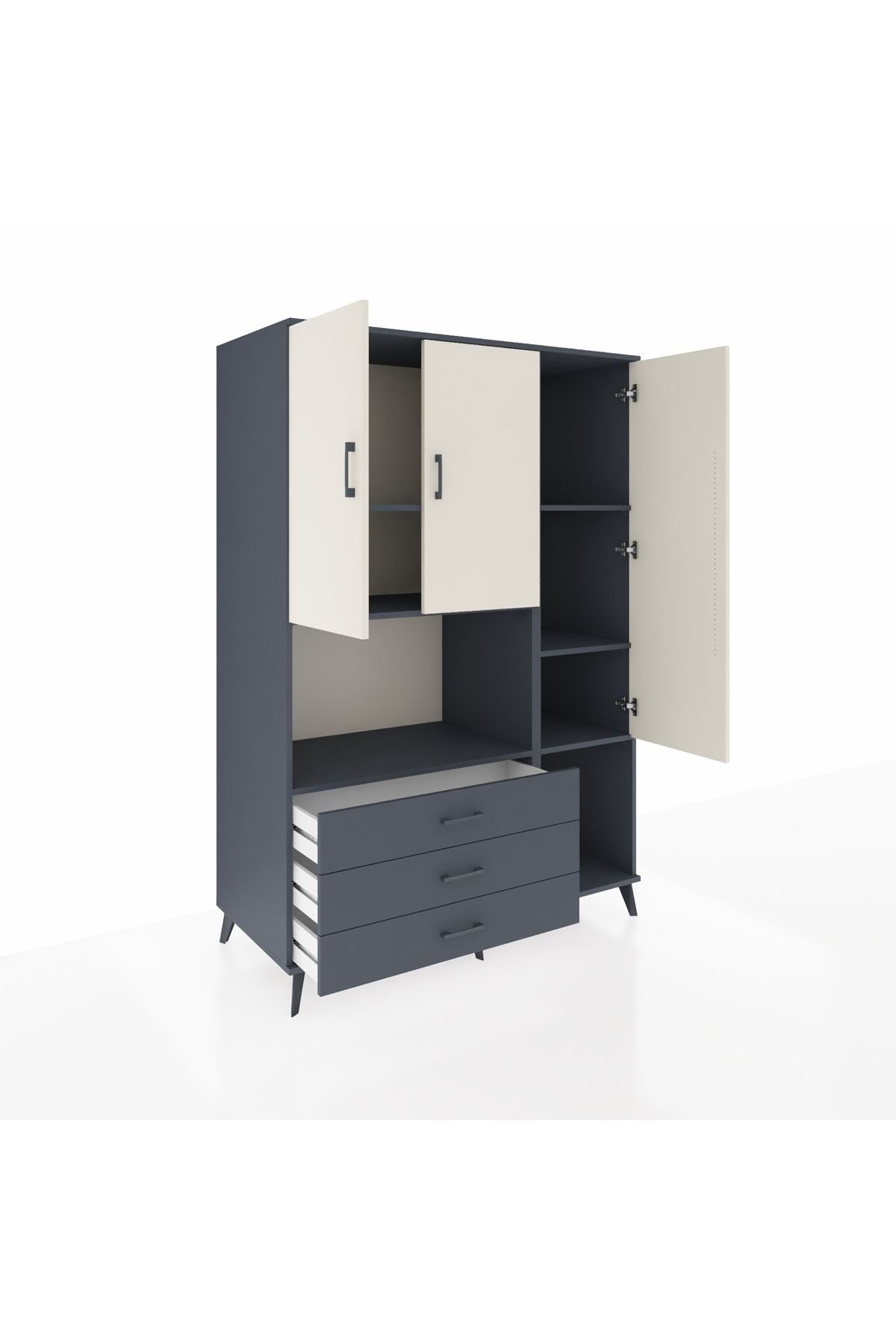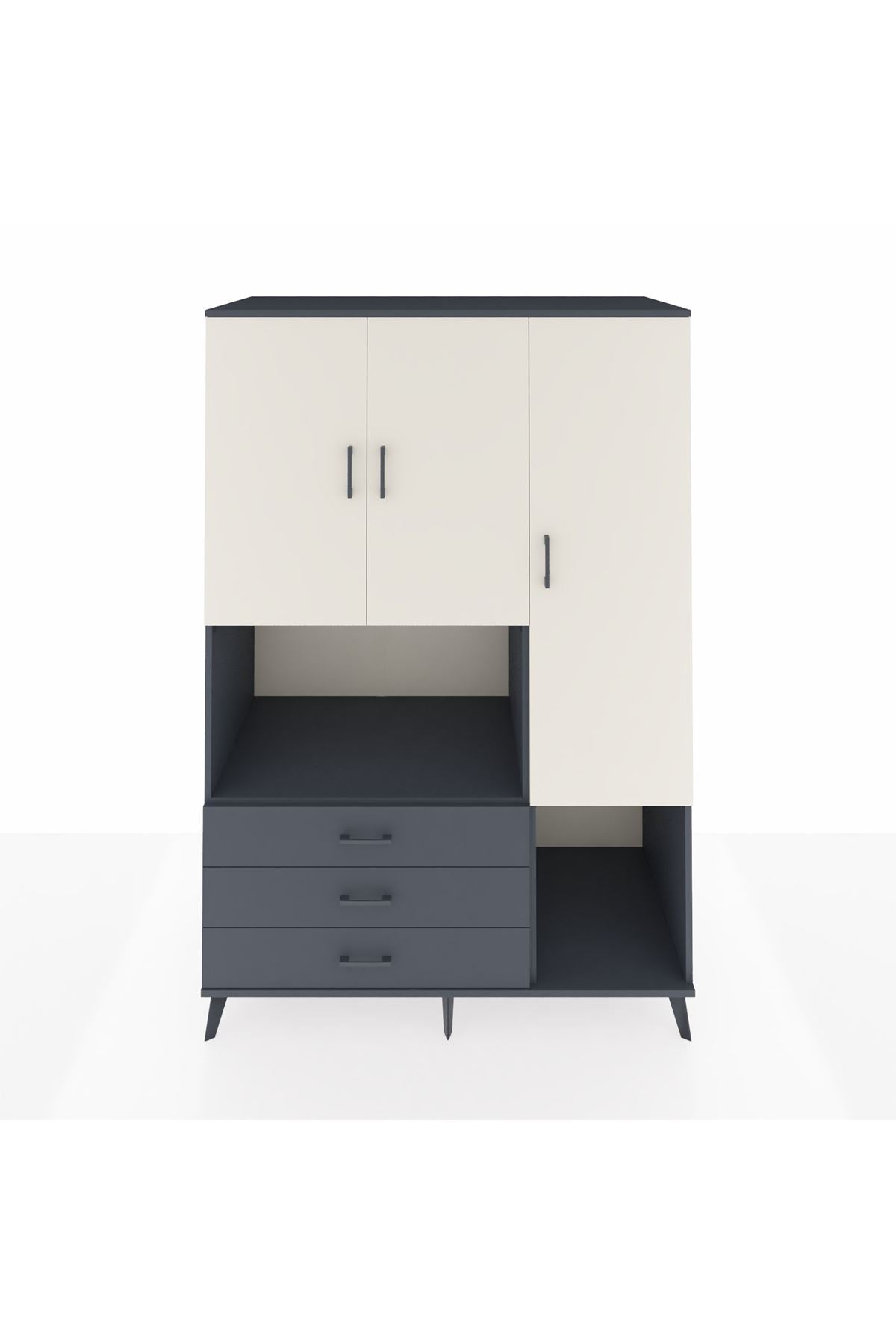 Kronos Dolap 6 Raflı 3 Çekmeceli 3 Kapaklı 132x59x195 Antrasit-Aytaşı/Antrasit