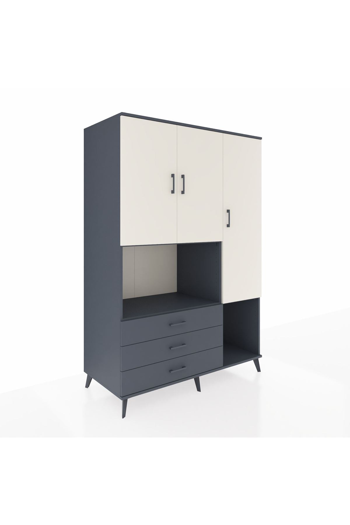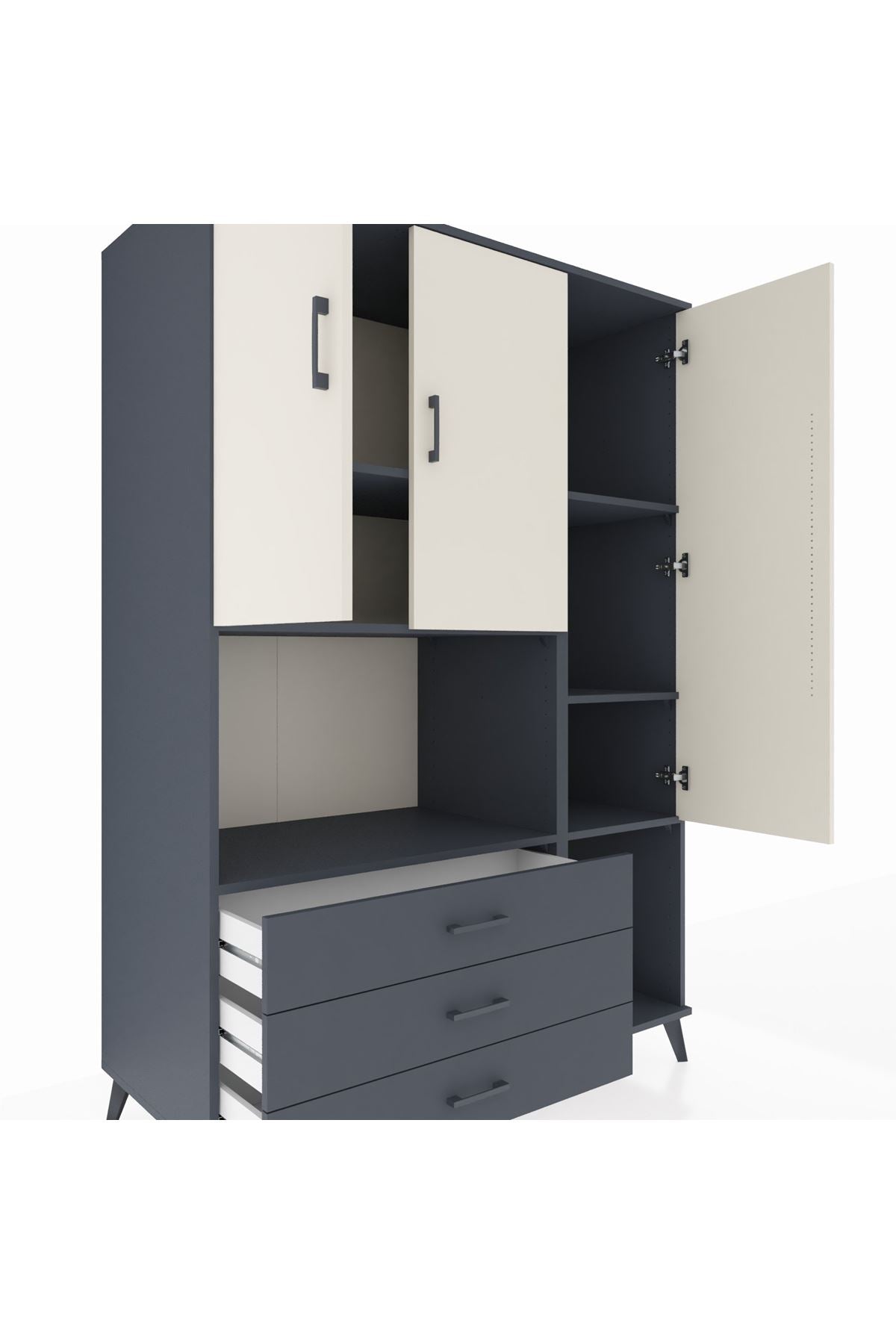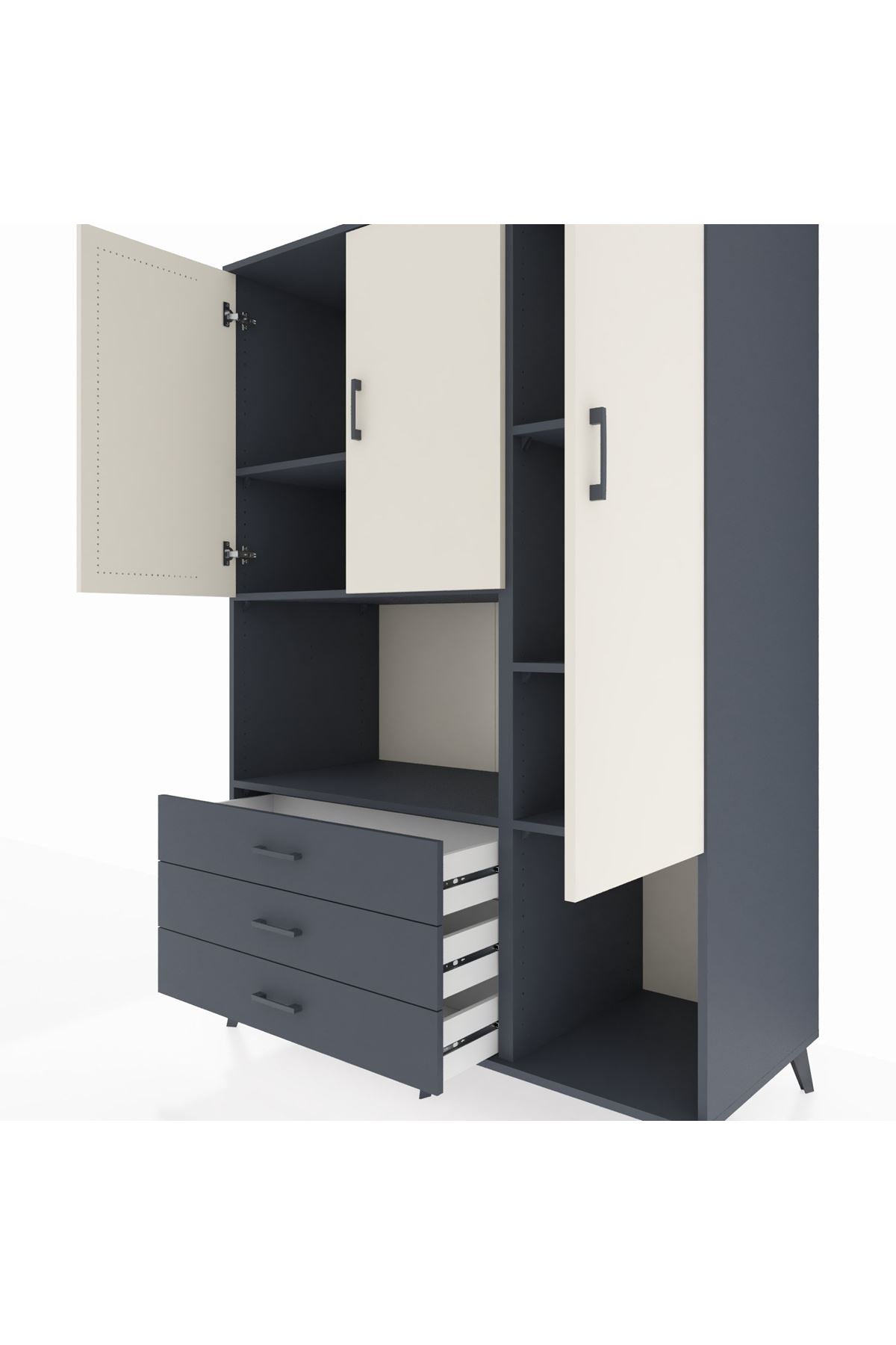 Kronos Dolap 6 Raflı 3 Çekmeceli 3 Kapaklı 132x59x195 Antrasit-Aytaşı/Antrasit
