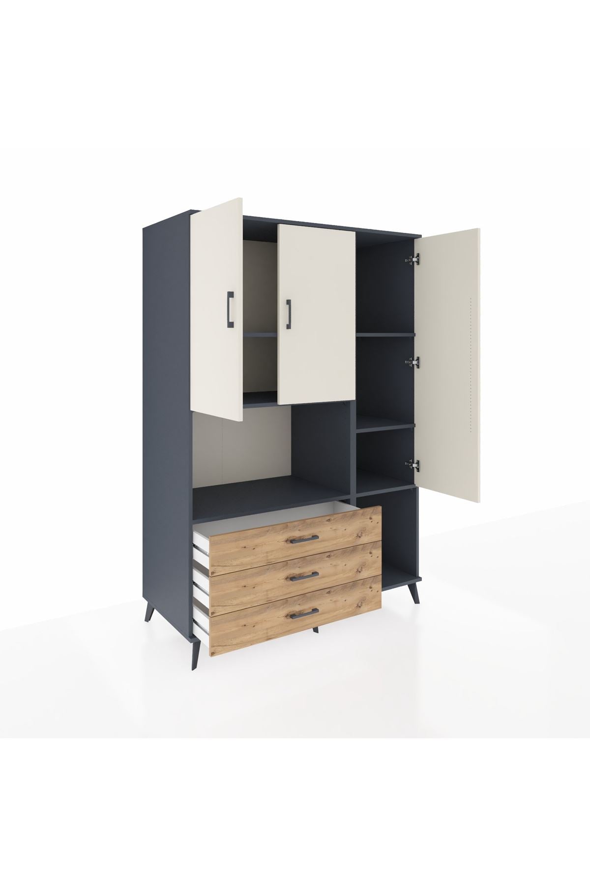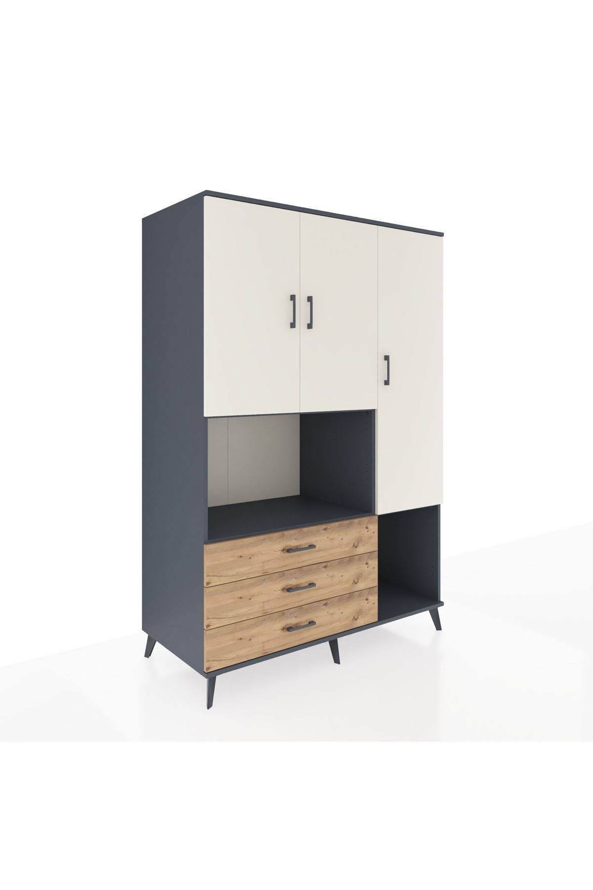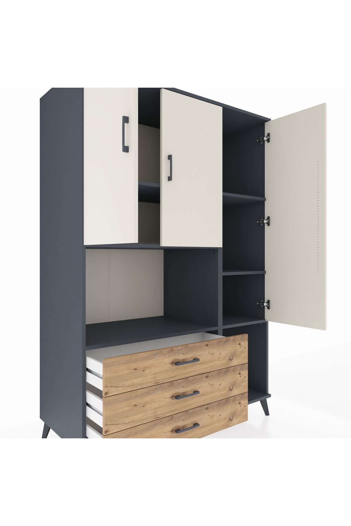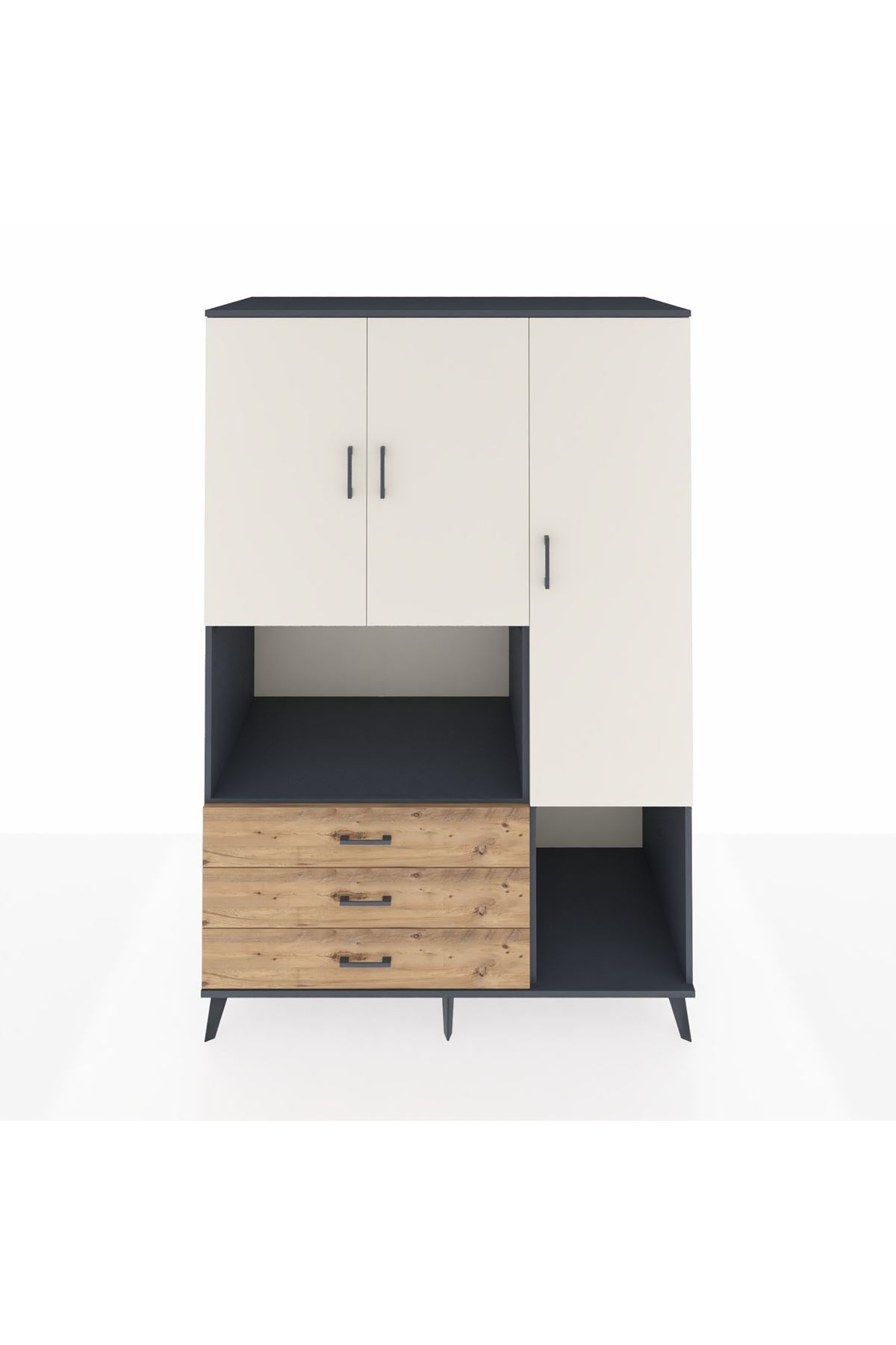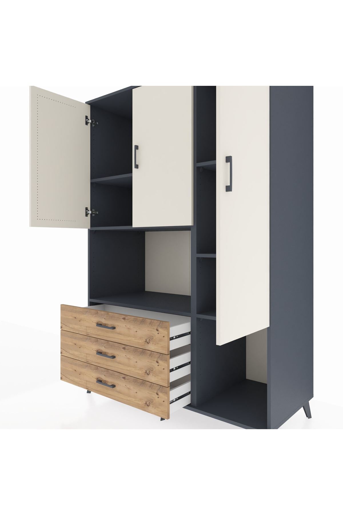 Kronos Dolap 6 Raflı 3 Çekmeceli 3 Kapaklı 132x59x195 Antrasit-Aytaşı/Çam