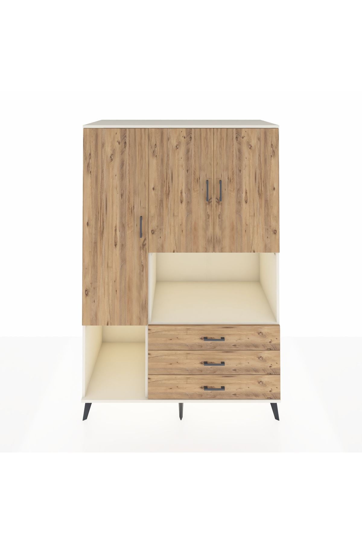 🌞 Kronos Dolap 6 Raflı 3 Çekmeceli 3 Kapaklı 132x59x195 Aytaşı-Çam/Çam