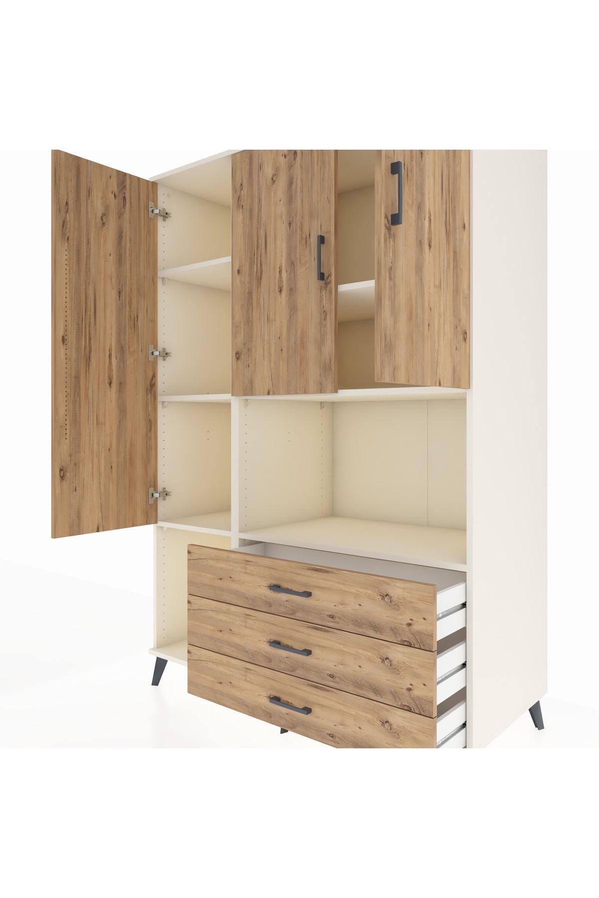 Kronos Dolap 6 Raflı 3 Çekmeceli 3 Kapaklı 132x59x195 Aytaşı-Çam/Çam
