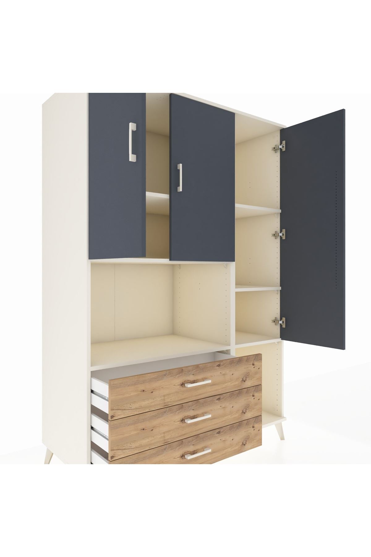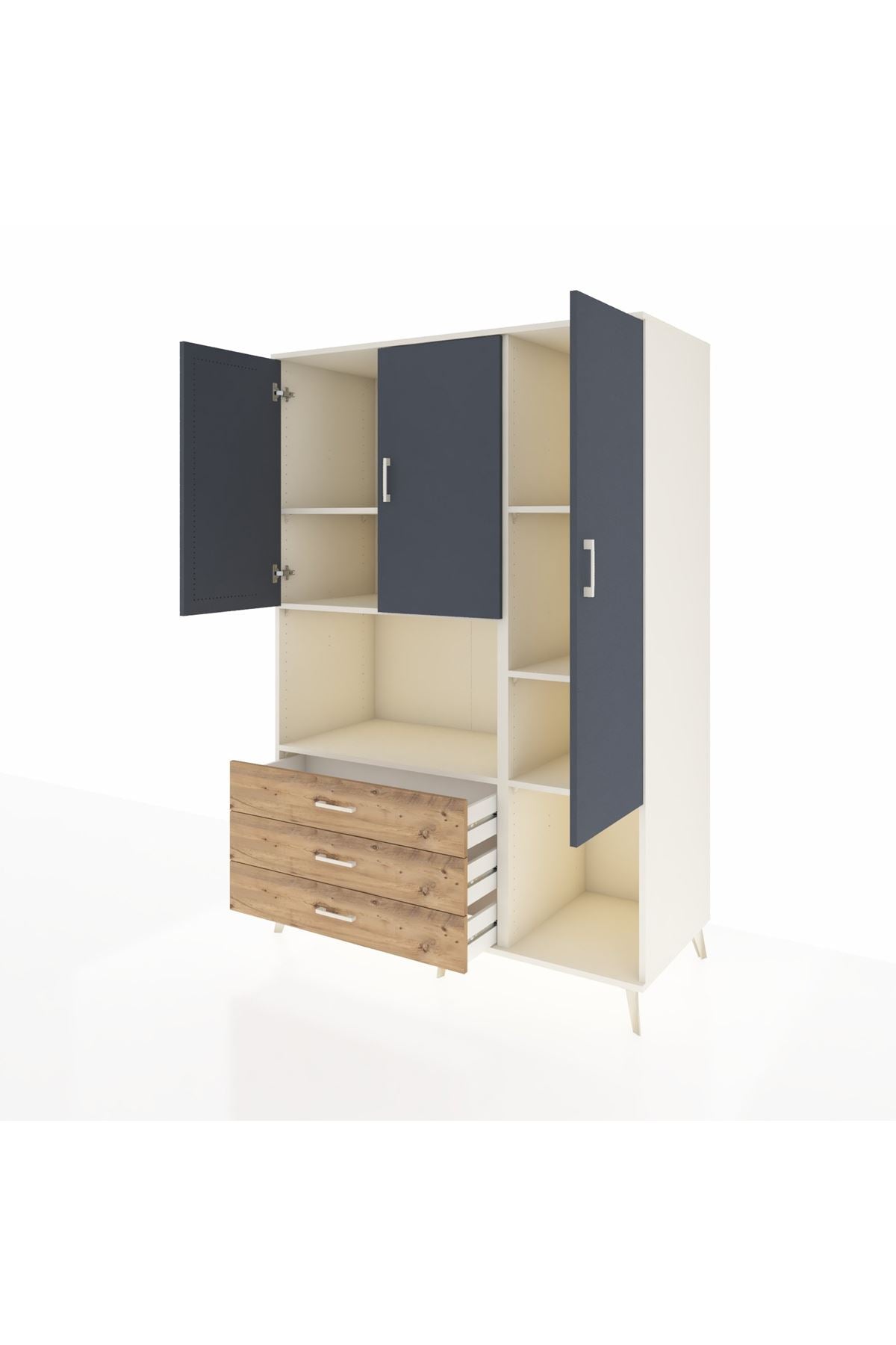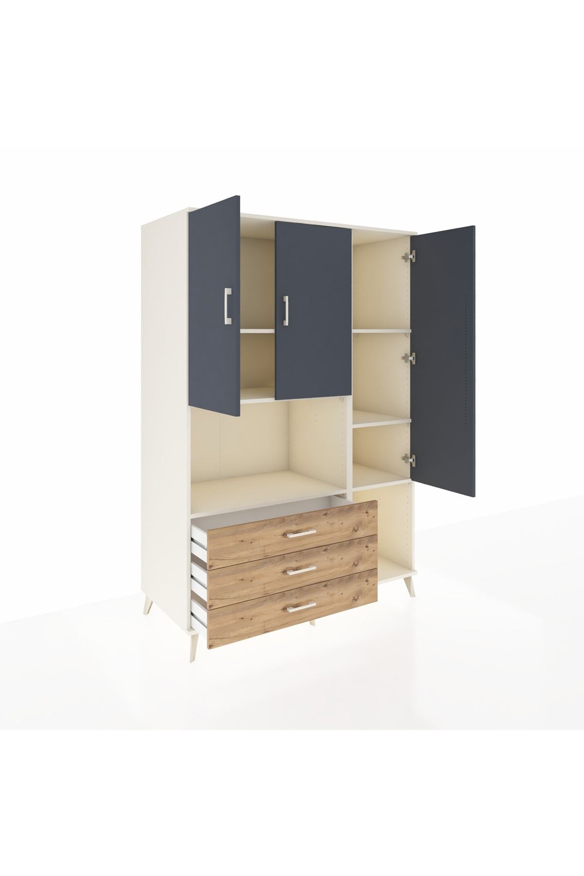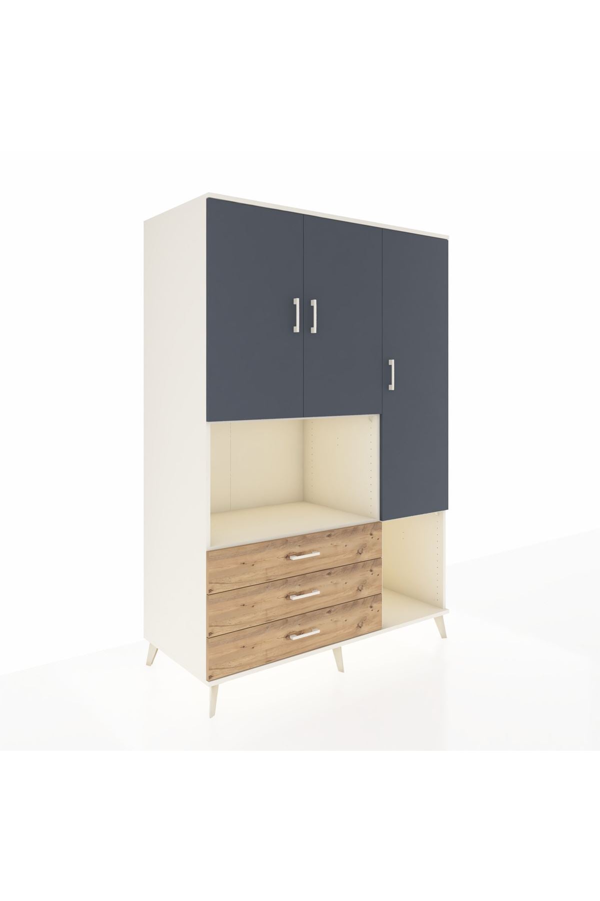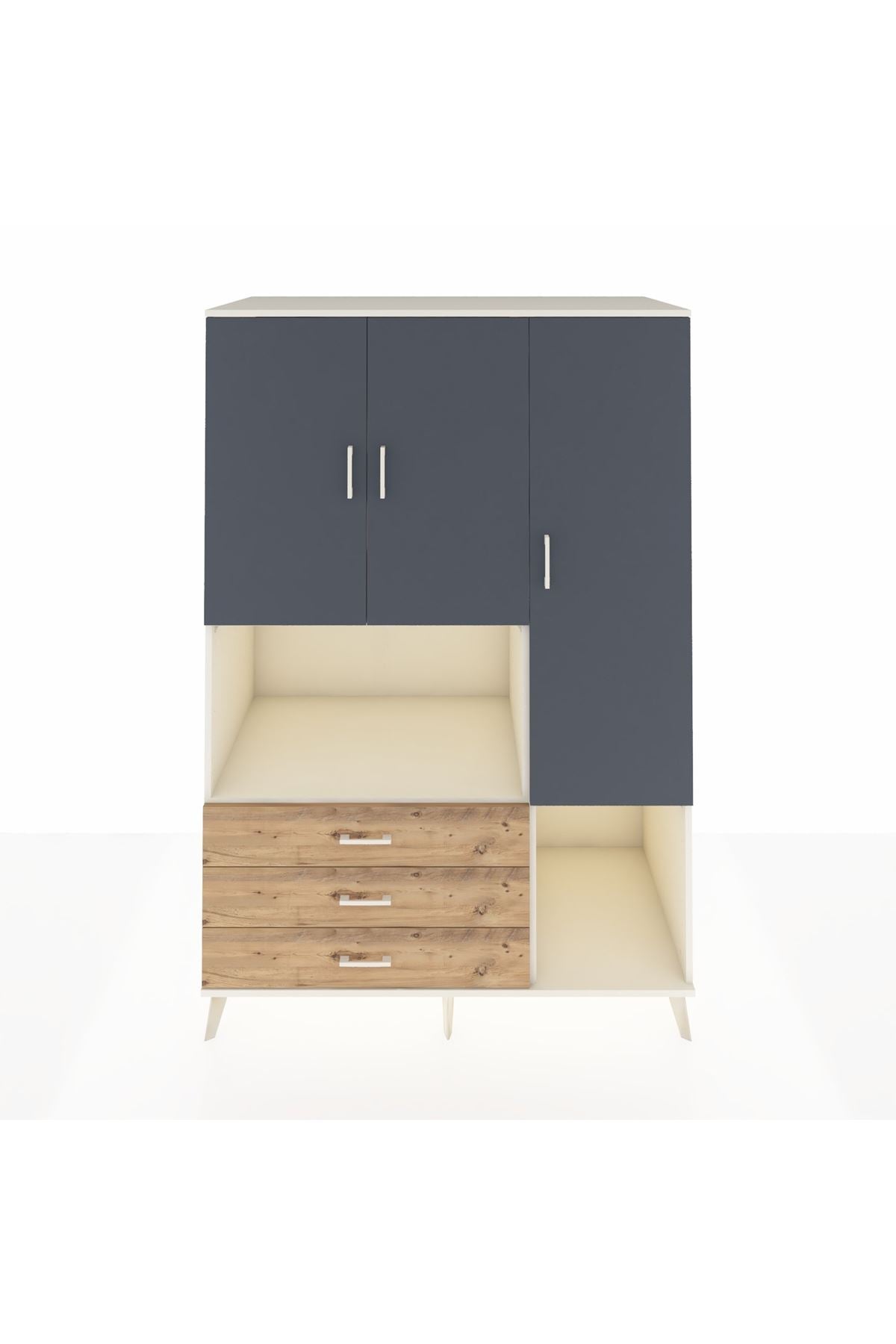 Kronos Dolap 6 Raflı 3 Çekmeceli 3 Kapaklı 132x59x195 Aytaşı-Antrasit/Çam