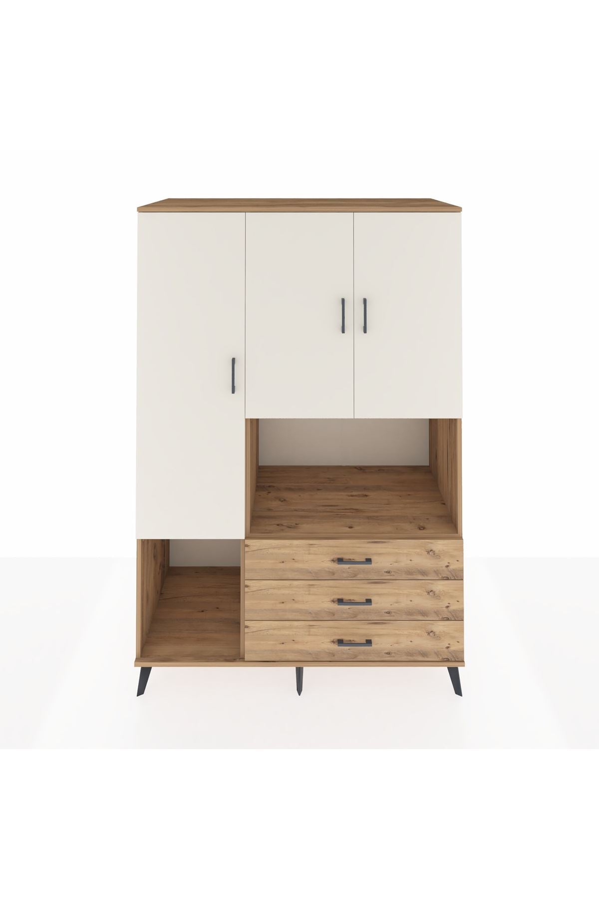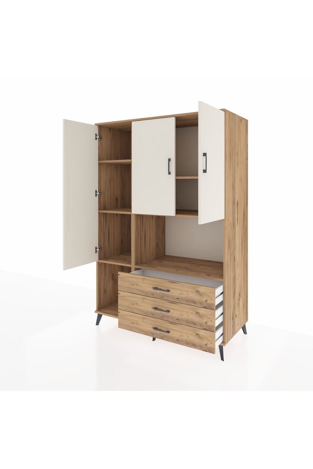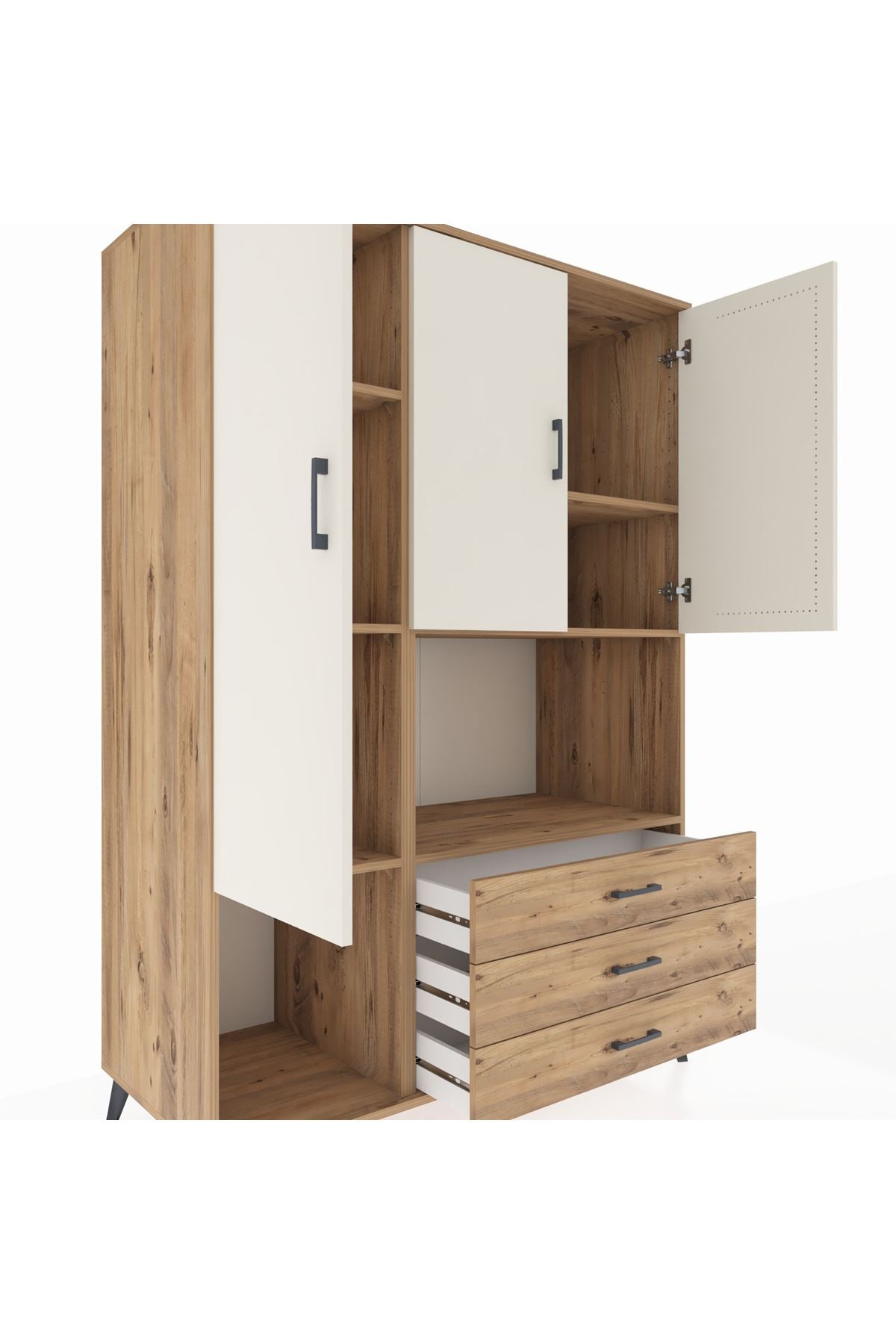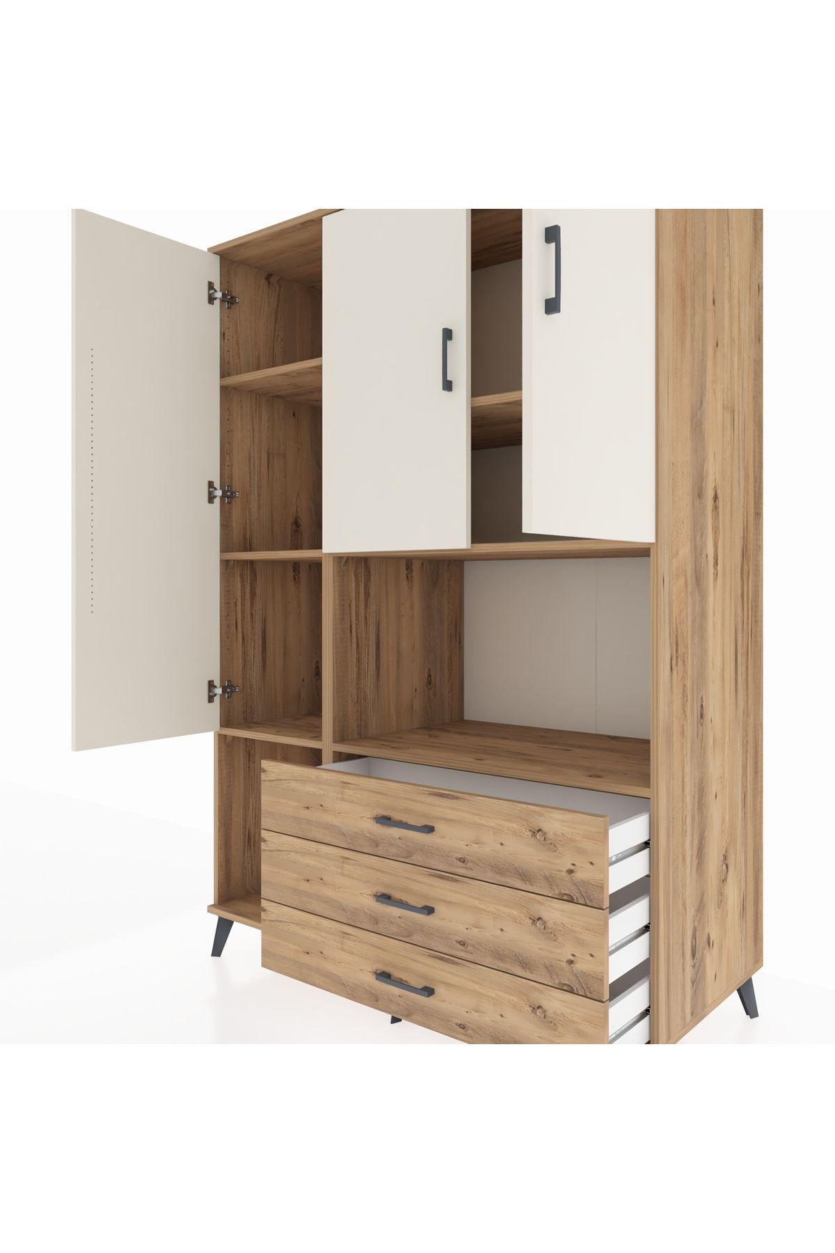 Kronos Dolap 6 Raflı 3 Çekmeceli 3 Kapaklı 132x59x195 Çam-Aytaşı/Çam