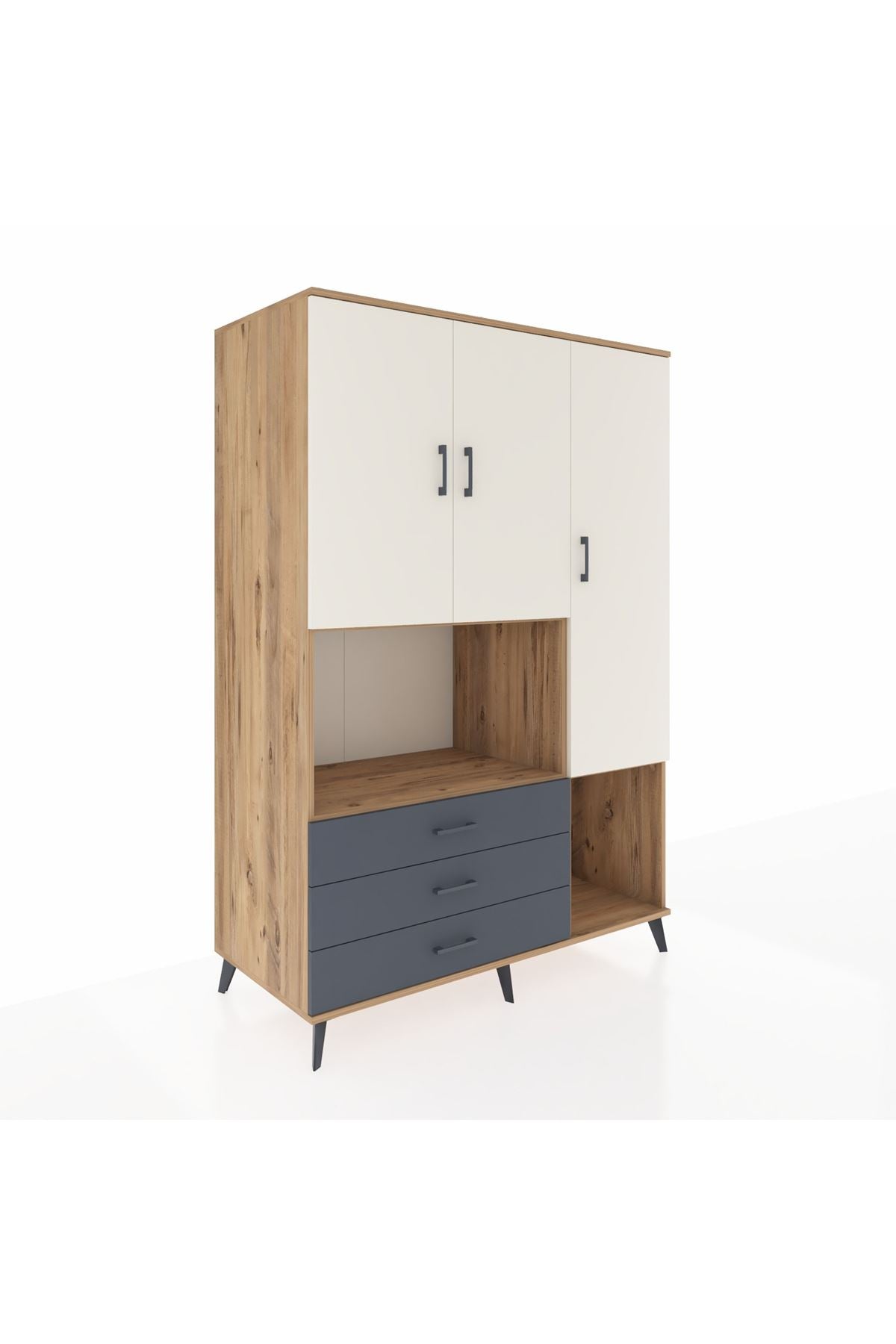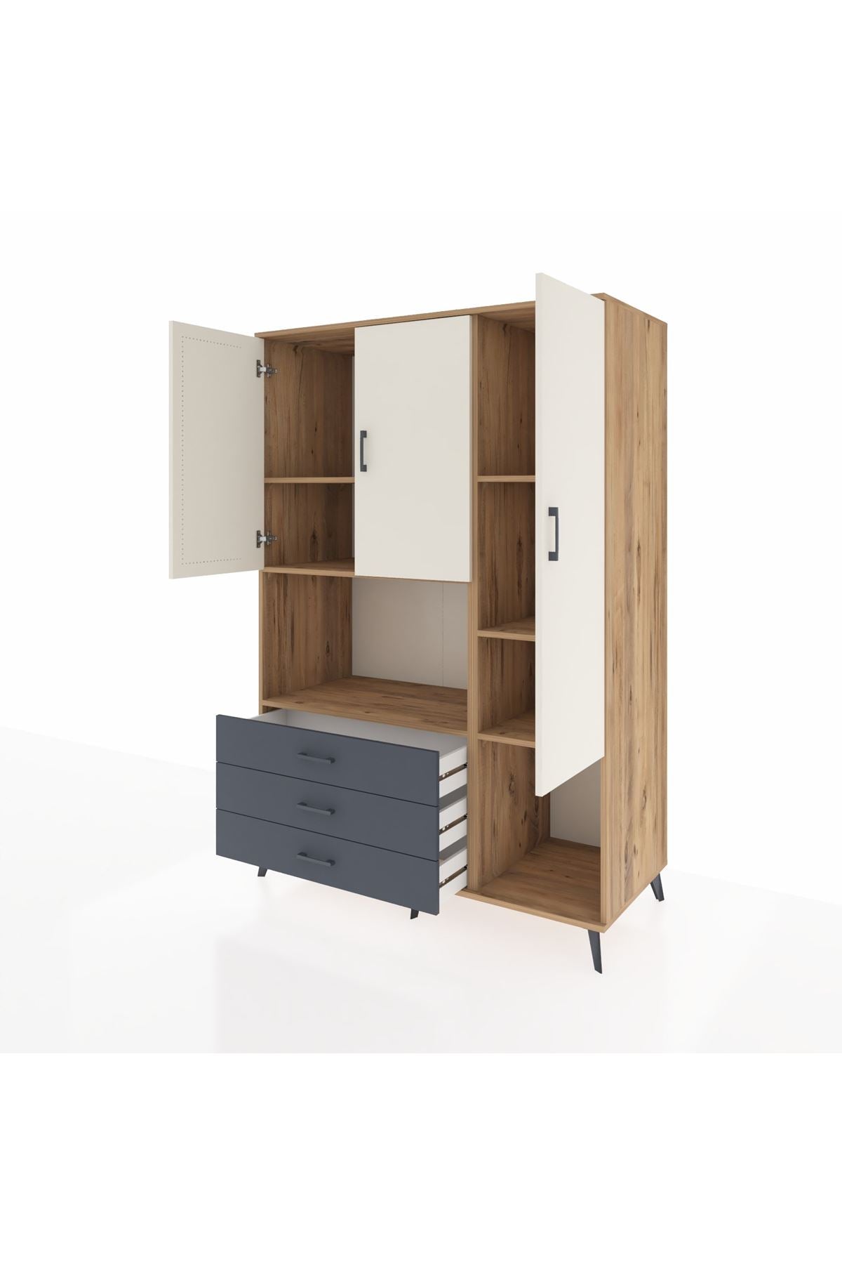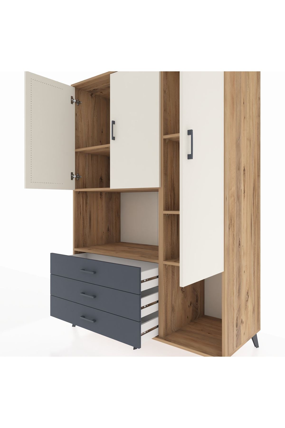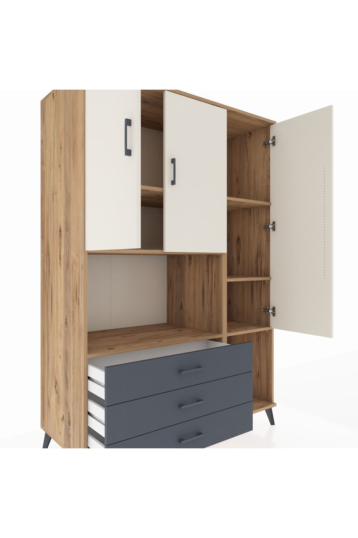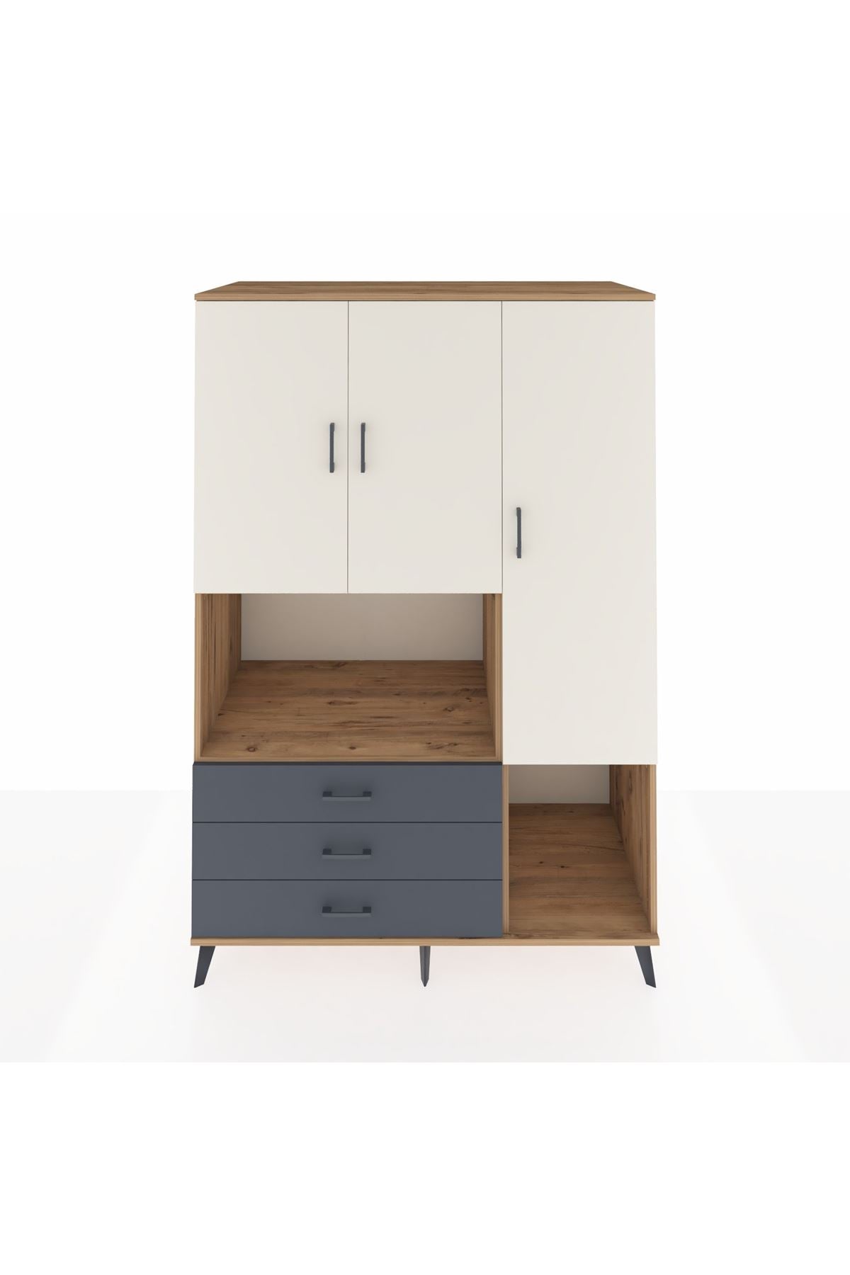 Kronos Dolap 6 Raflı 3 Çekmeceli 3 Kapaklı 132x59x195 Çam-Aytaşı/Antrasit