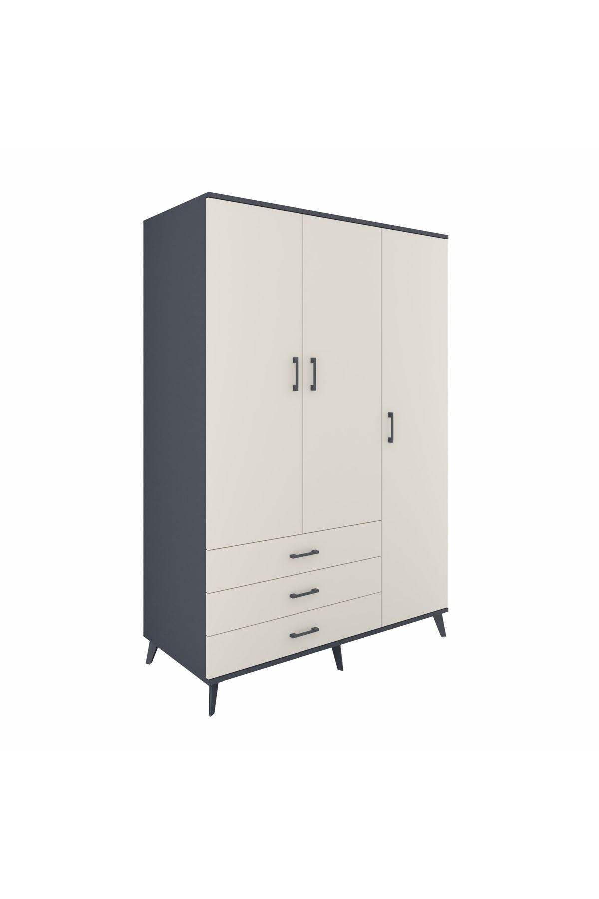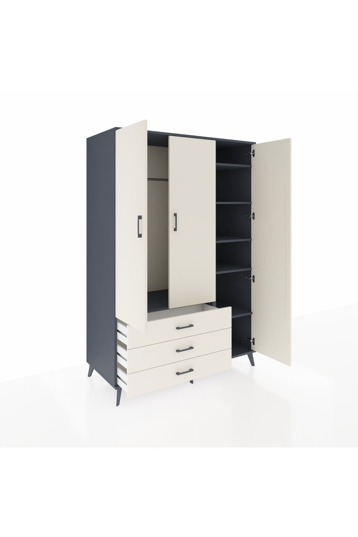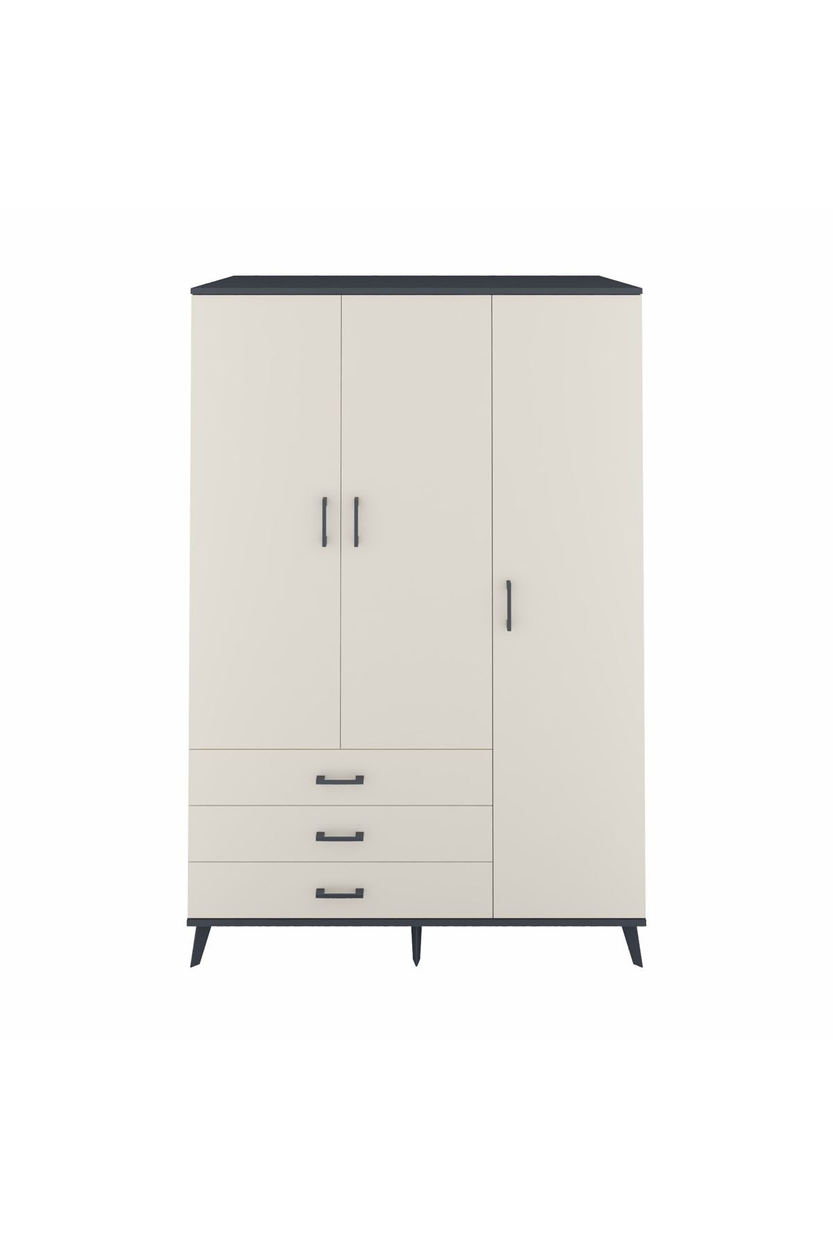 Kronos Dolap 6 Raflı 3 Çekmeceli Tek Askılı 132x59x195 Antrasit-Aytaşı/Aytaşı