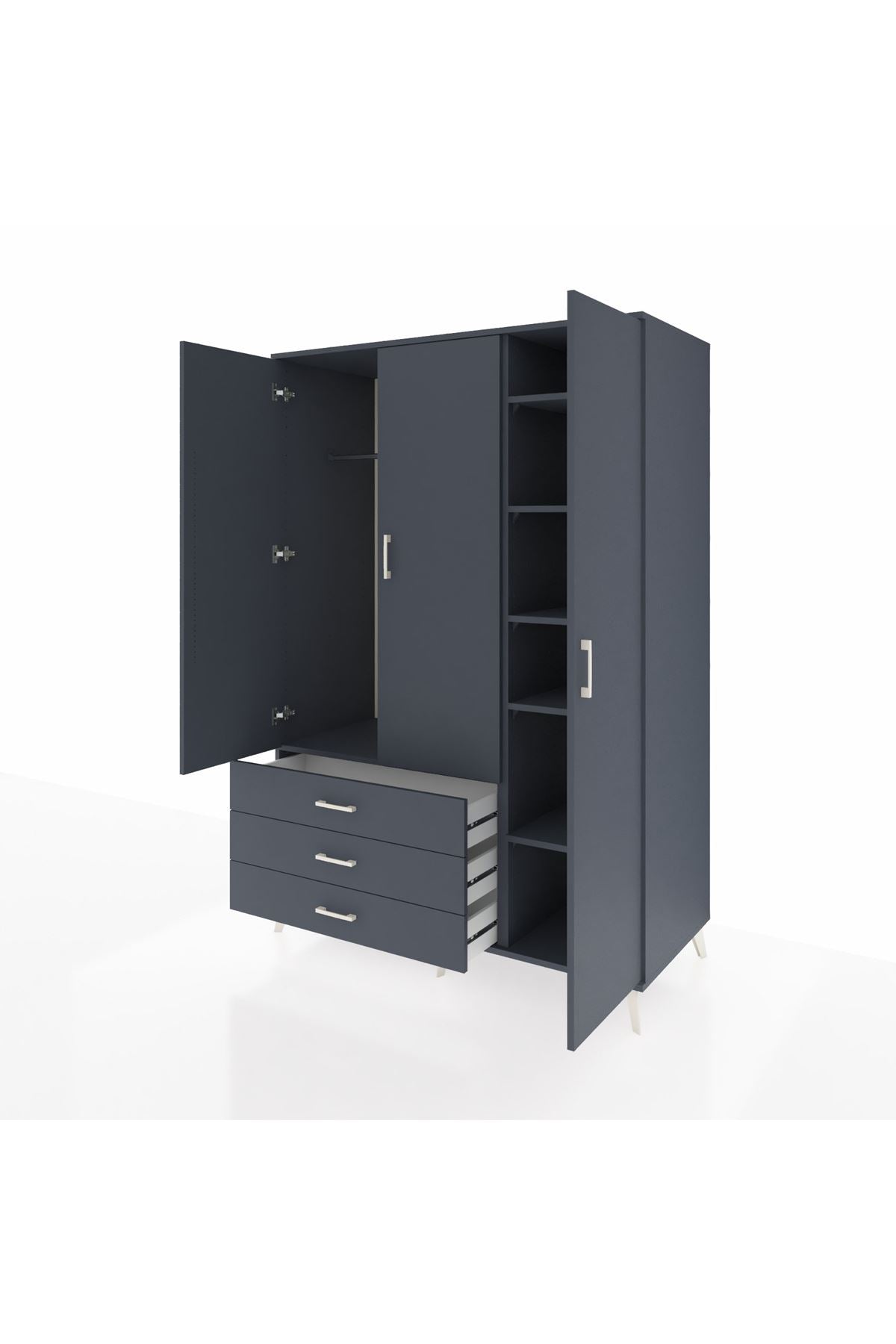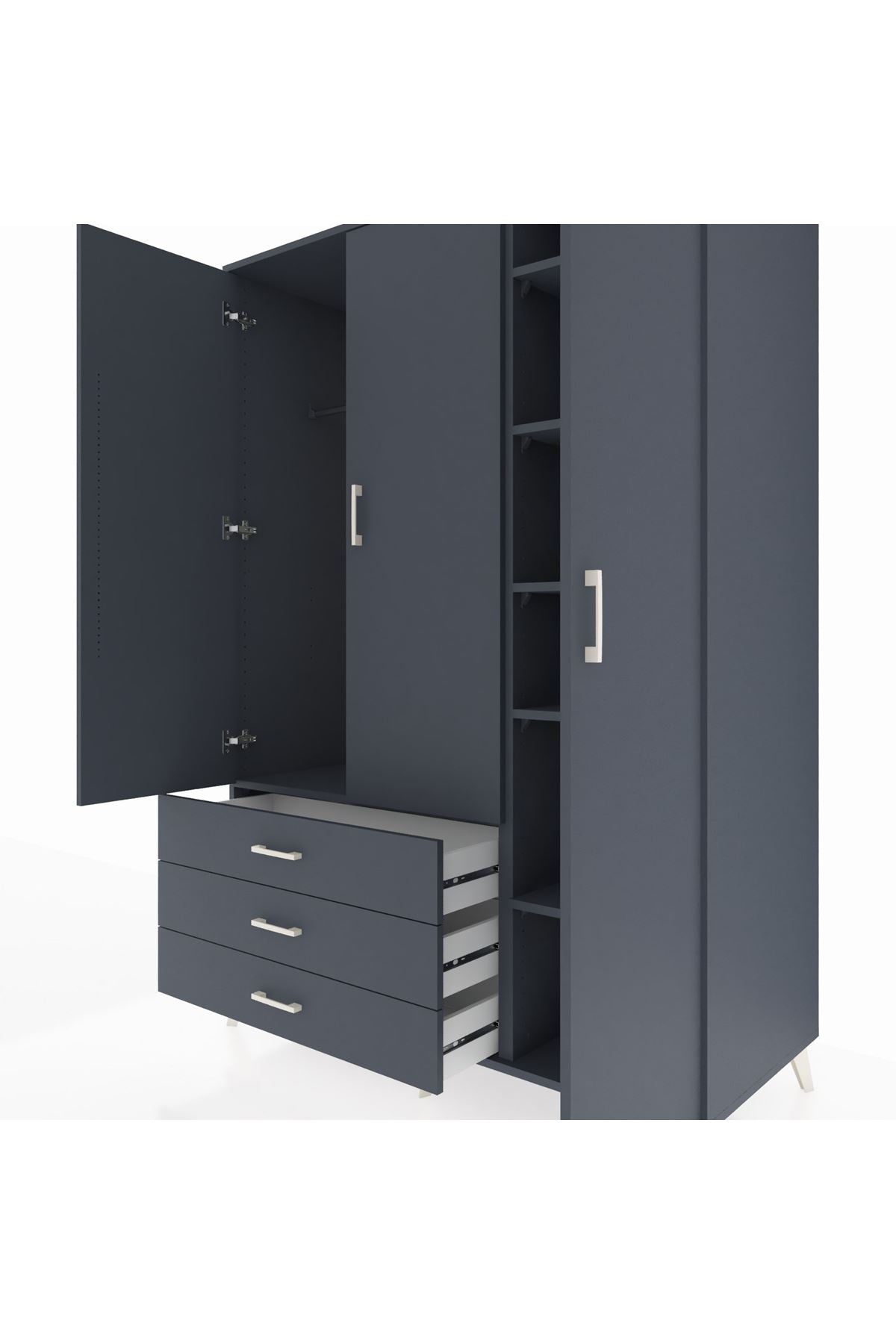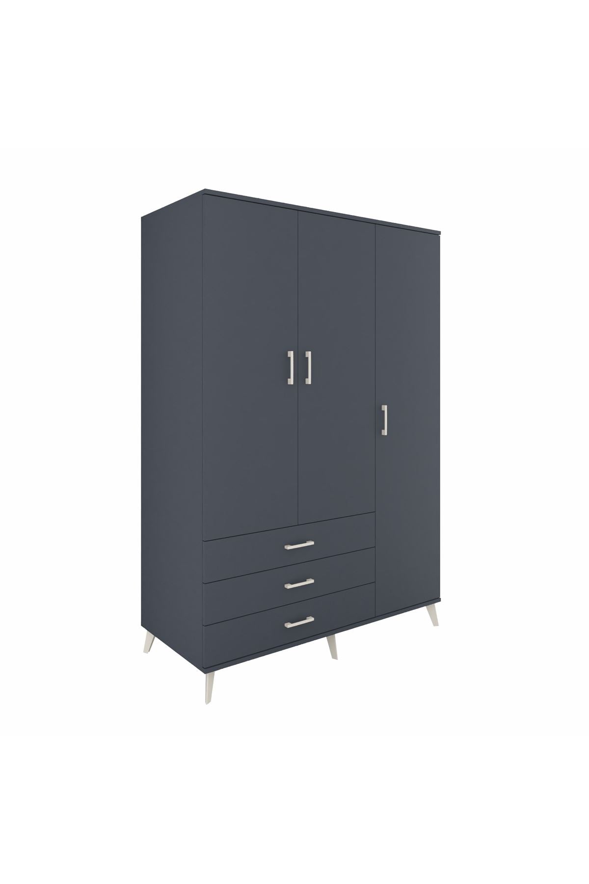 Kronos Dolap 6 Raflı 3 Çekmeceli Tek Askılı 132x59x195 Antrasit-Antrasit/Antrasit