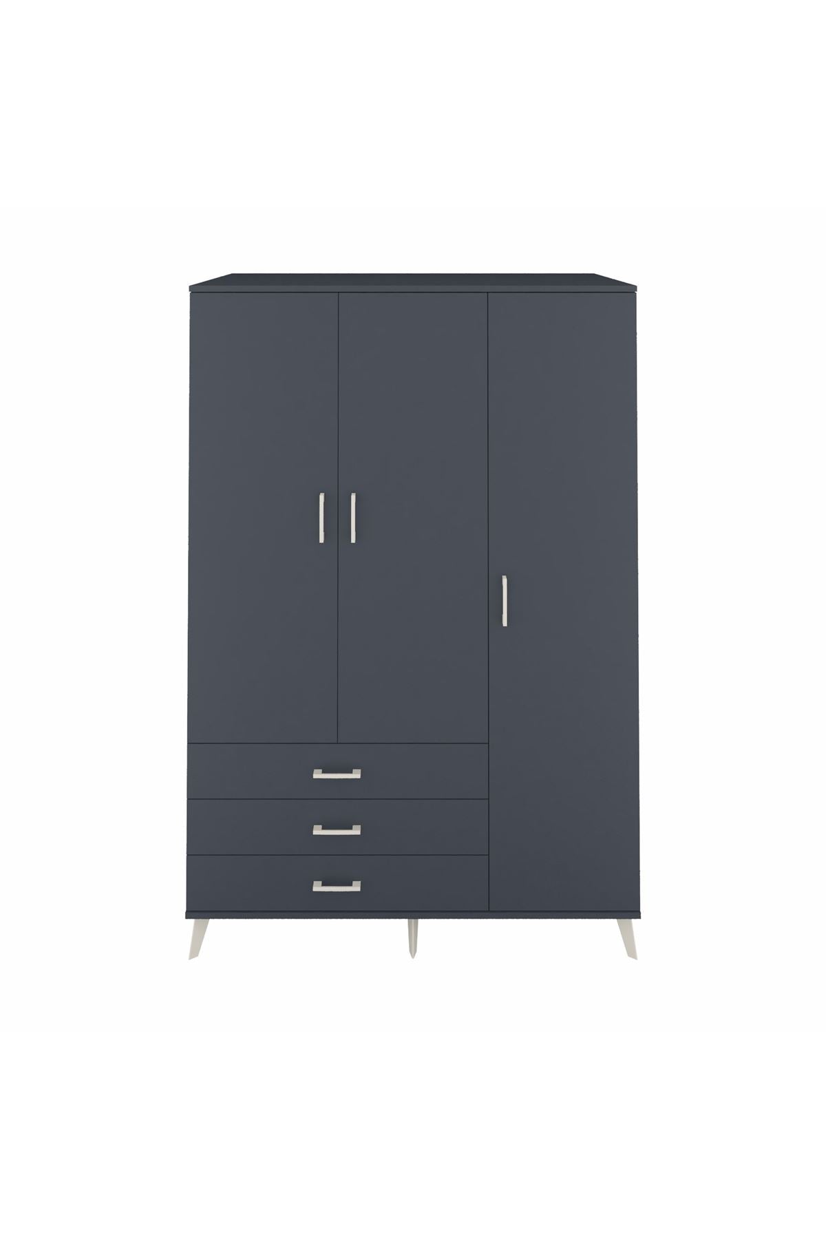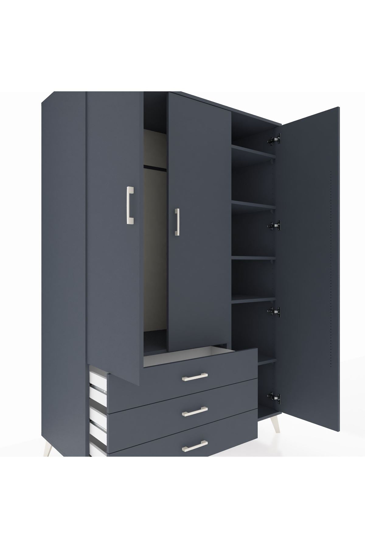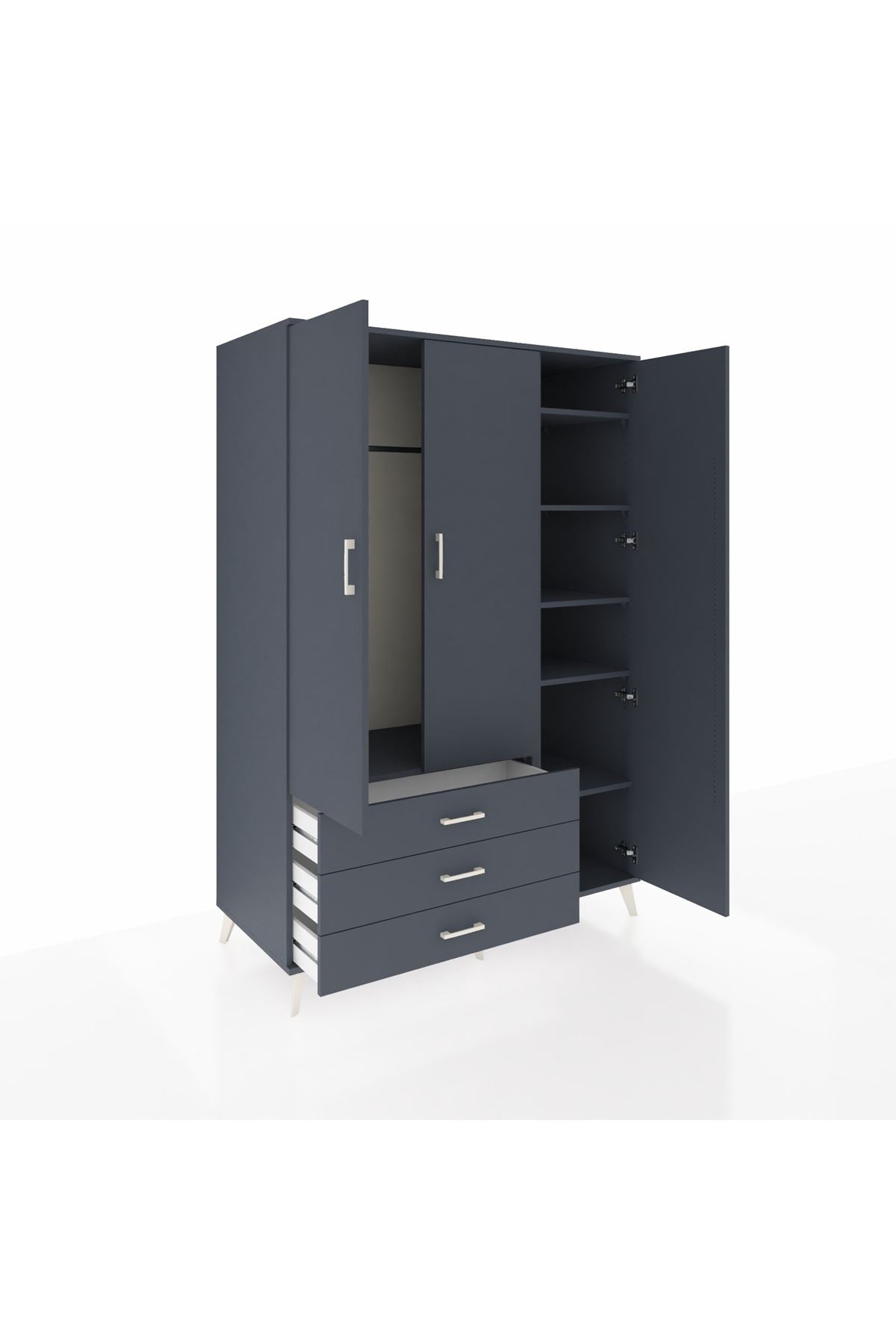 Kronos Dolap 6 Raflı 3 Çekmeceli Tek Askılı 132x59x195 Antrasit-Antrasit/Antrasit