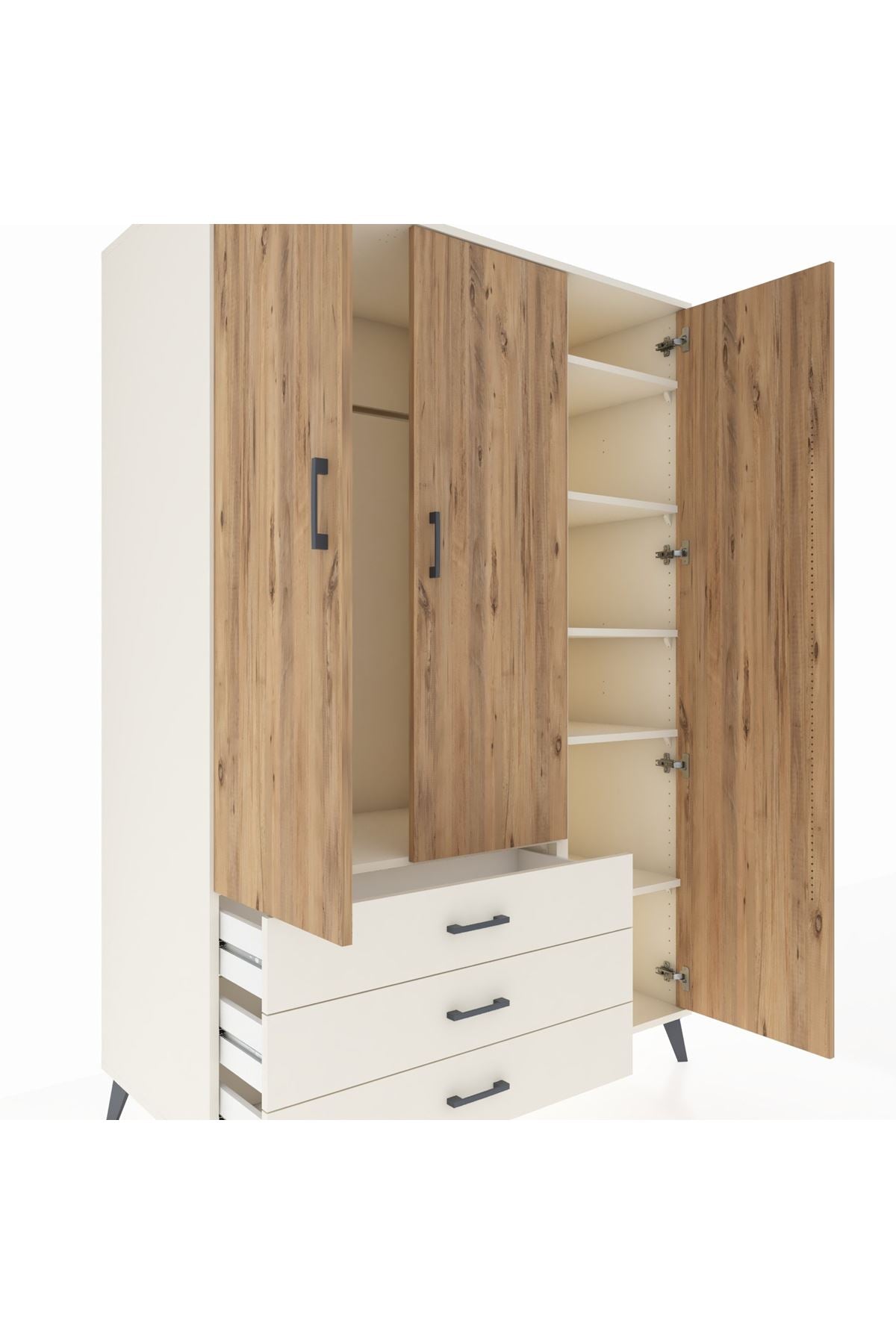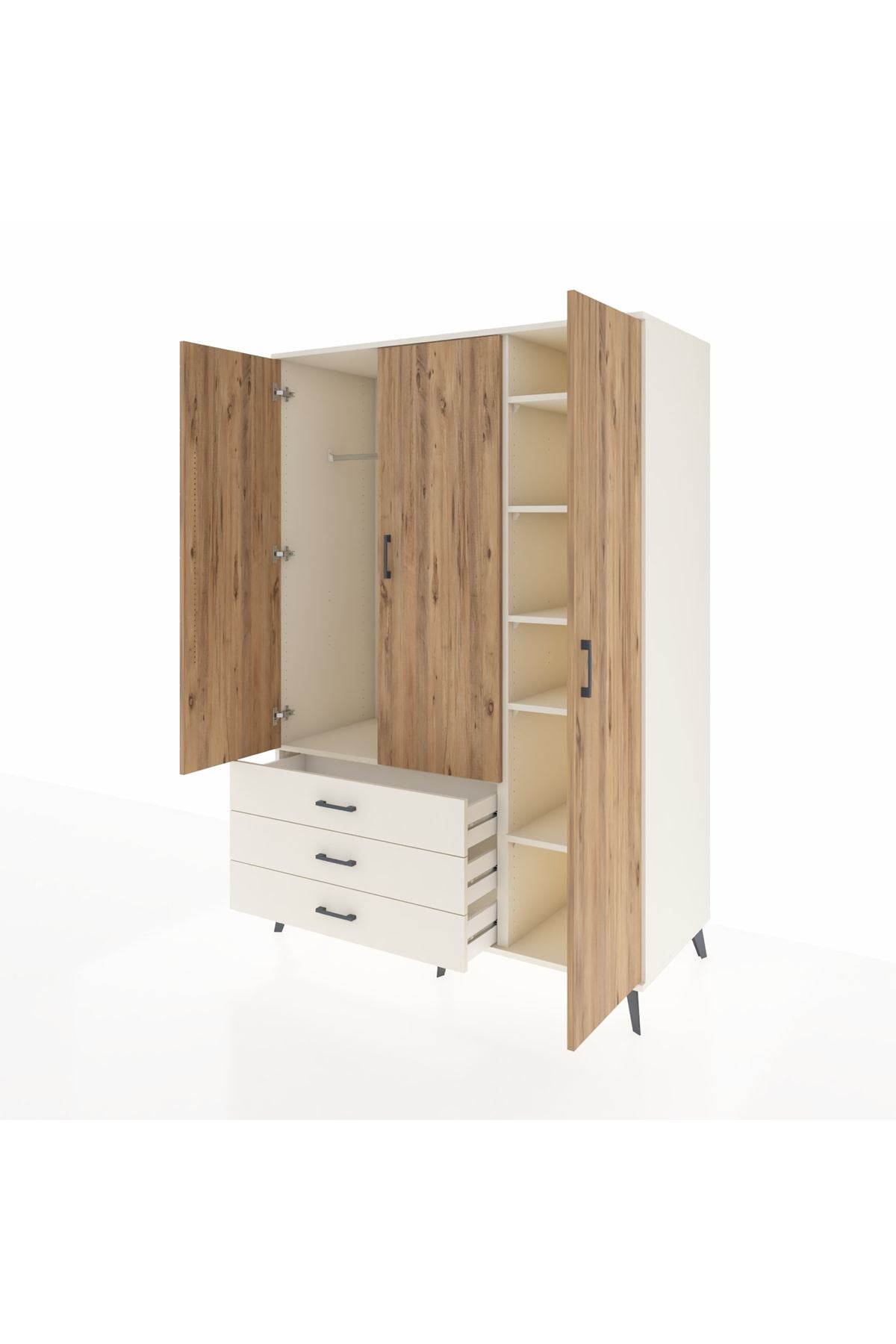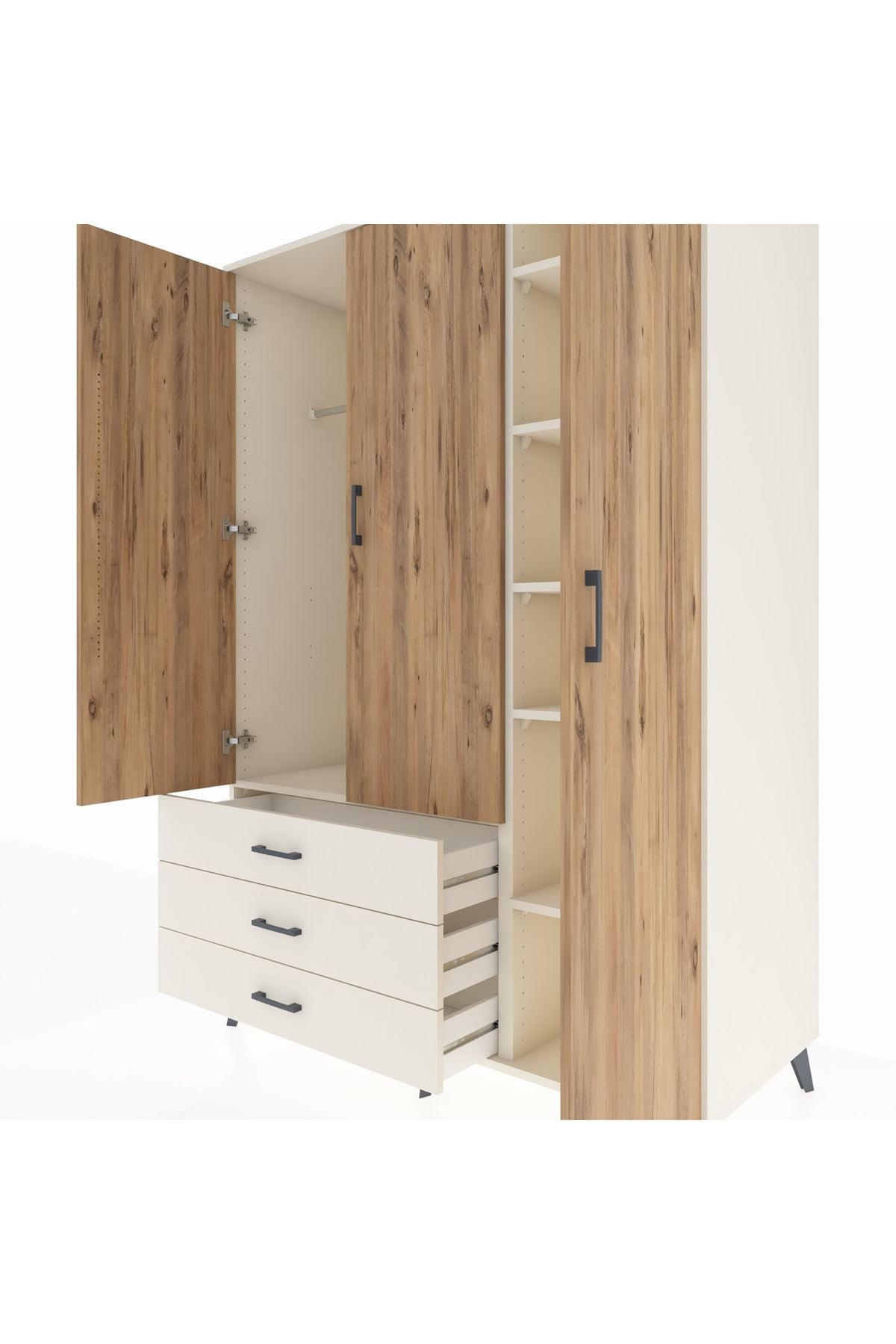 Kronos Dolap 6 Raflı 3 Çekmeceli Tek Askılı 132x59x195 Aytaşı-Çam/Aytaşı