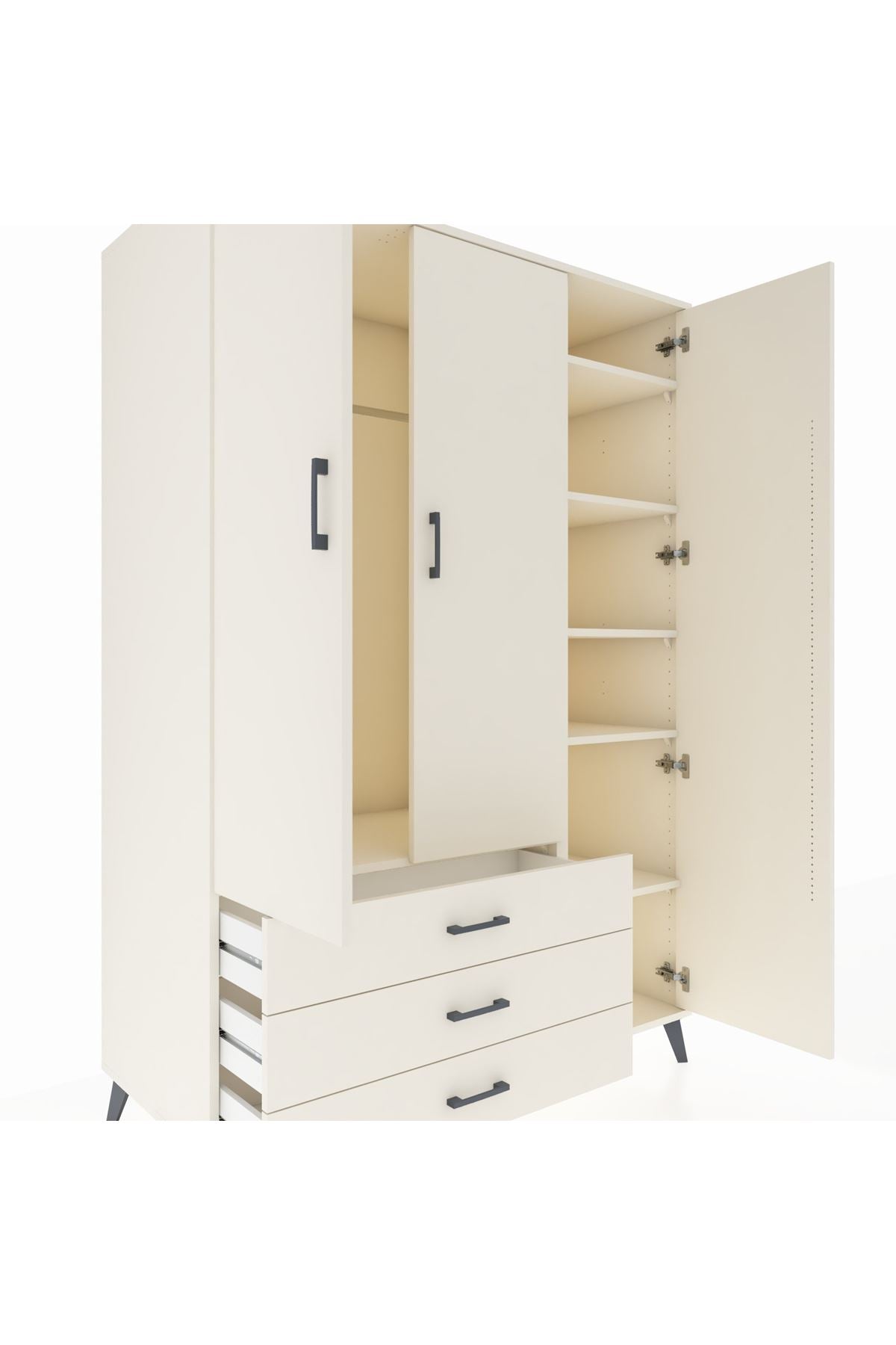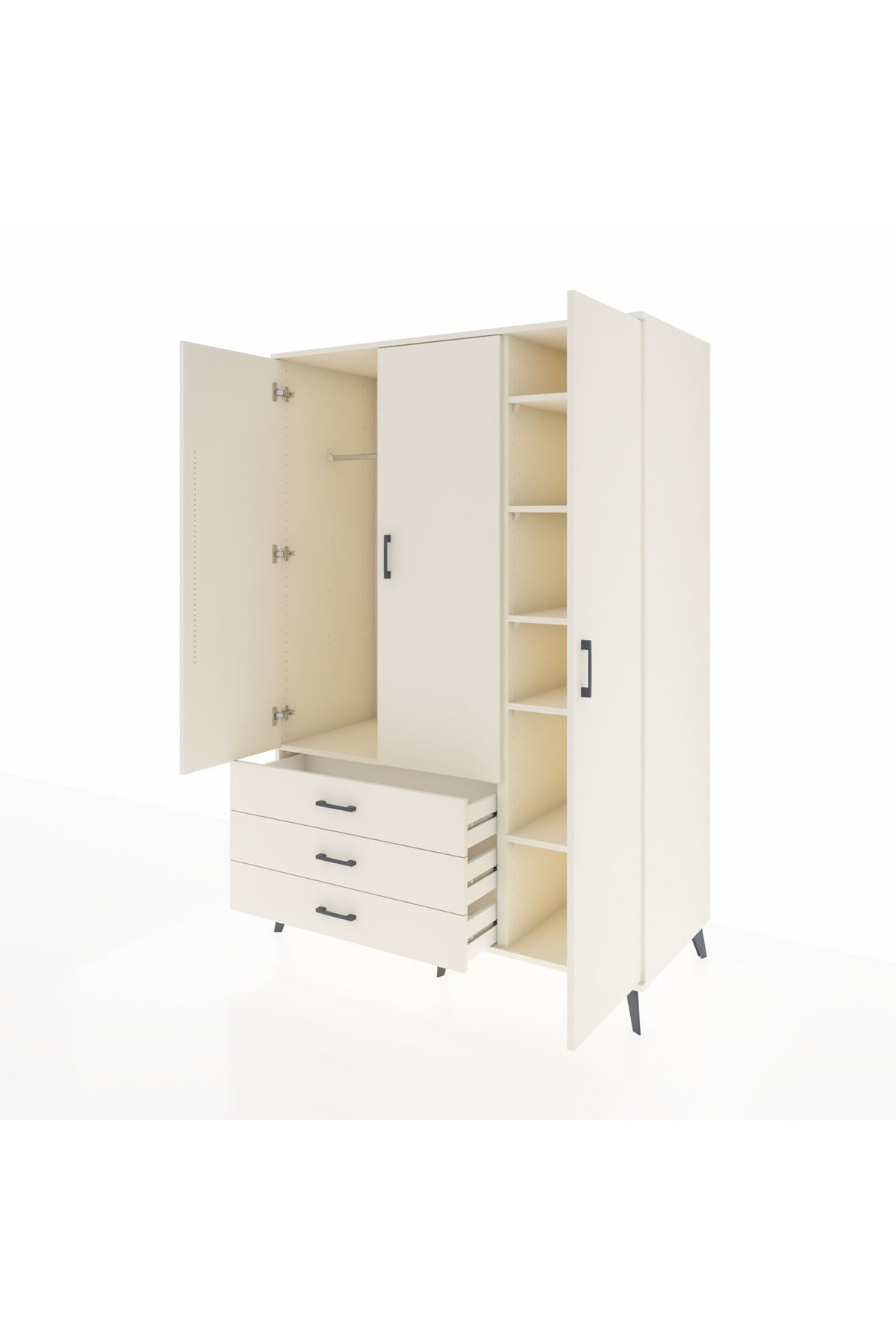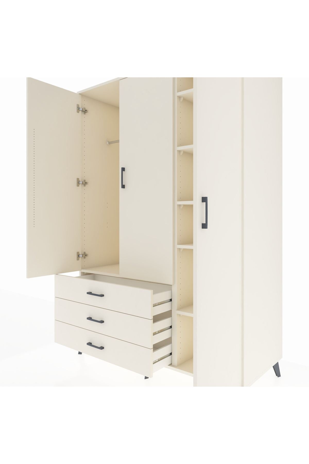 Geniş ve kullanışlı yapısıyla evinizin düzenini bir üst seviyeye taşıyan Kronos Dolap, 8 rafı, 5 çekmecesi ve 3 kapaklı yapısıyla her türlü ihtiyacınıza cevap verir 📚👗