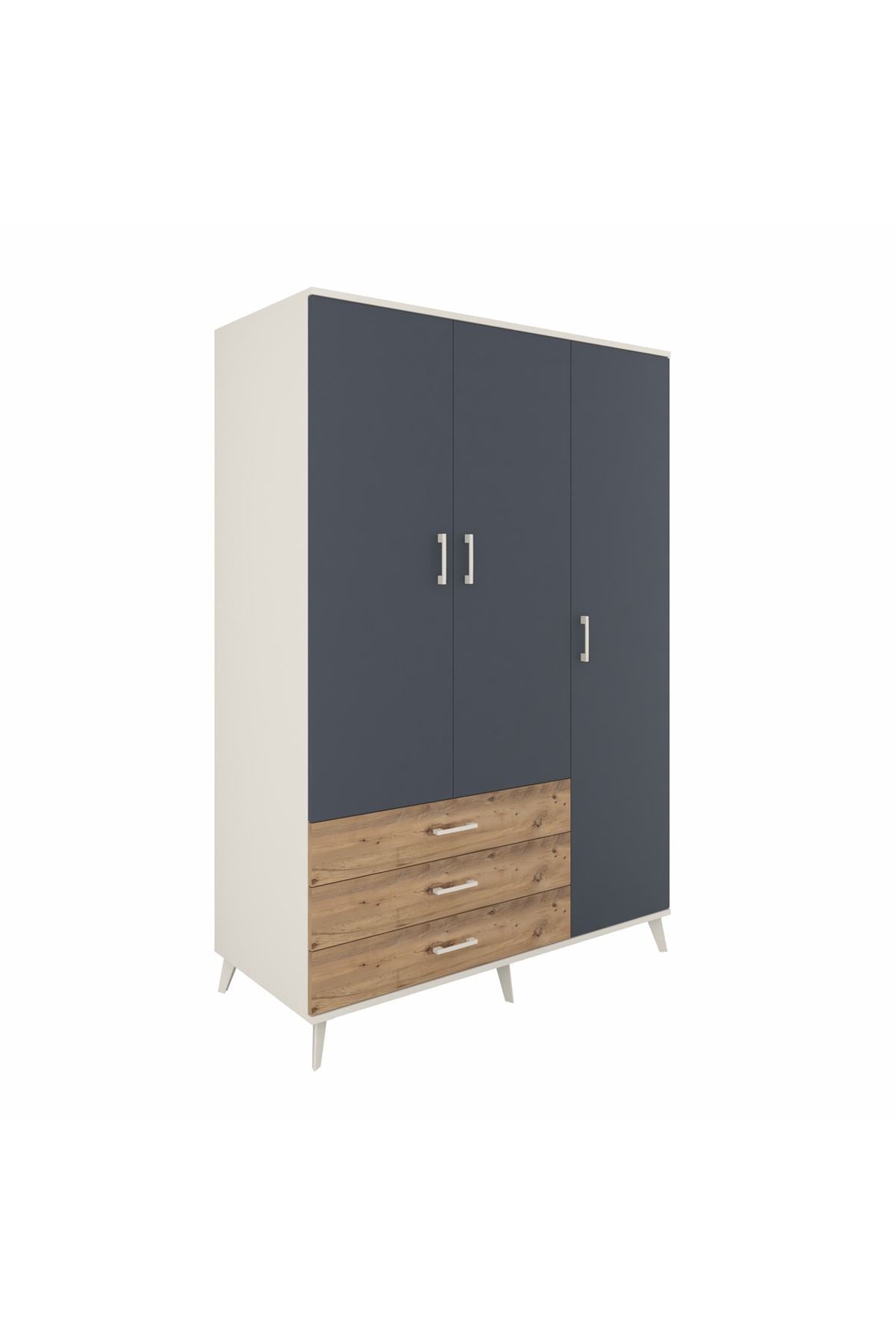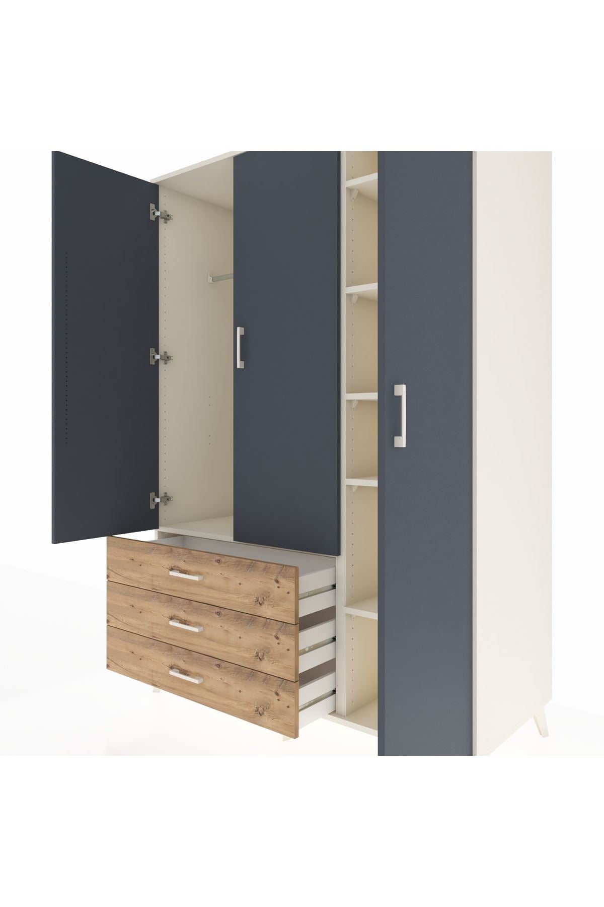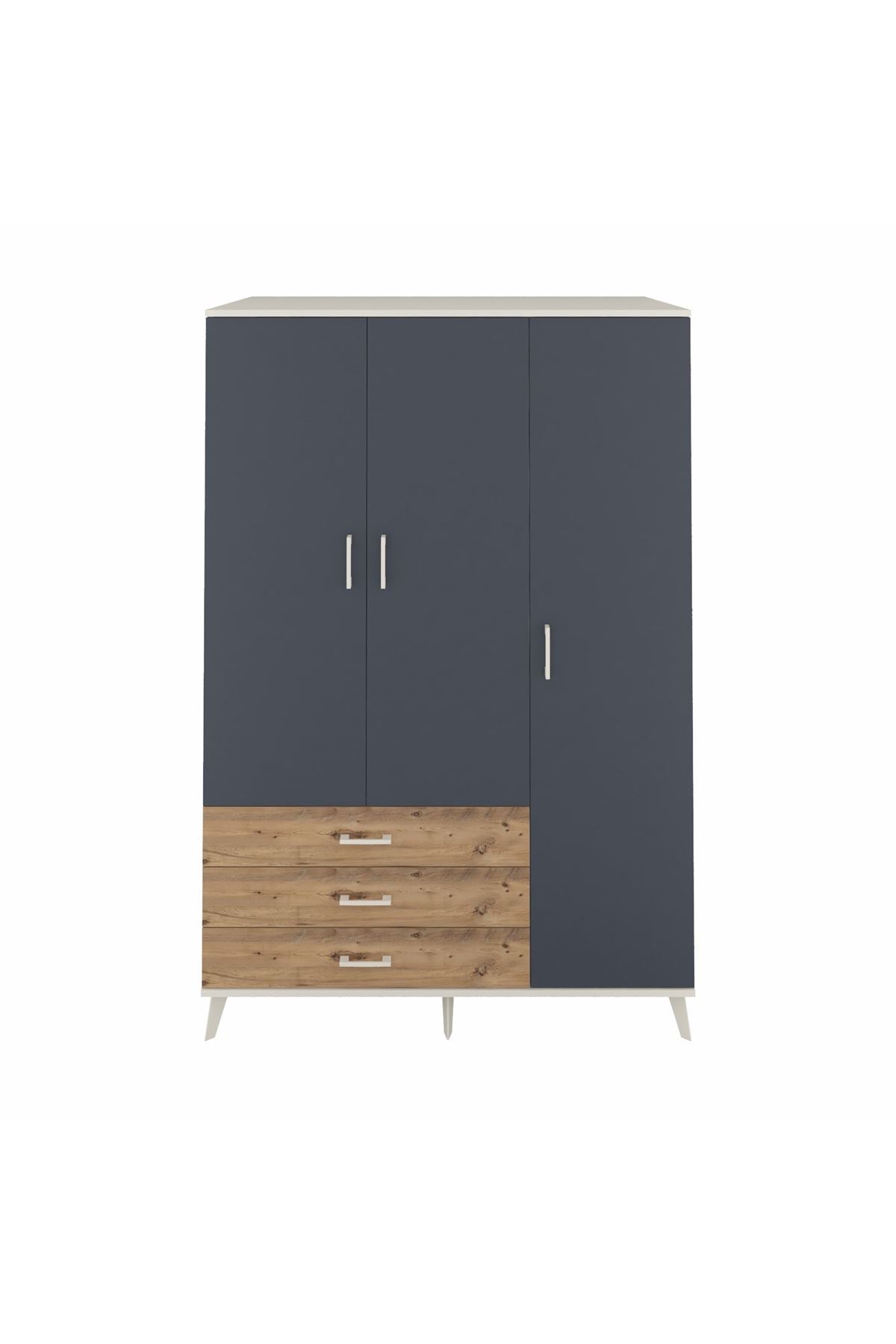 Kronos Dolap 6 Raflı 3 Çekmeceli Tek Askılı 132x59x195 Aytaşı-Antrasit/Çam