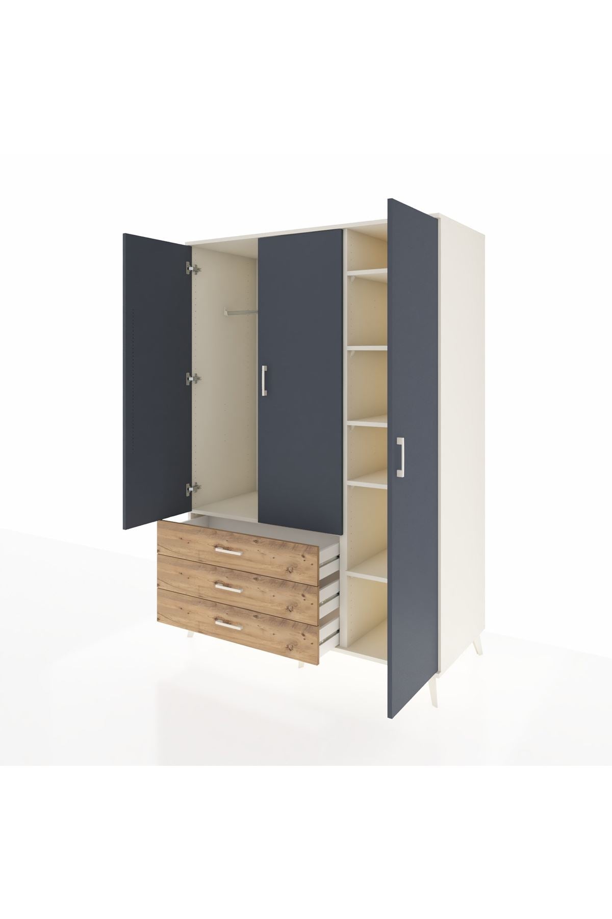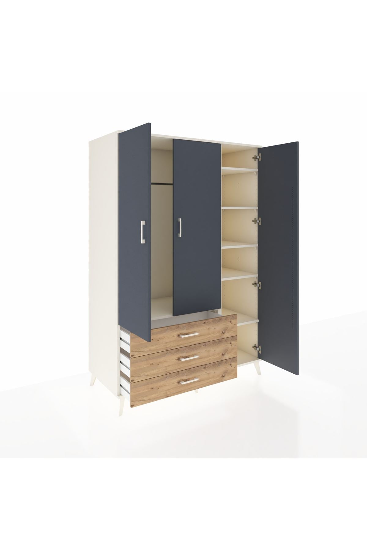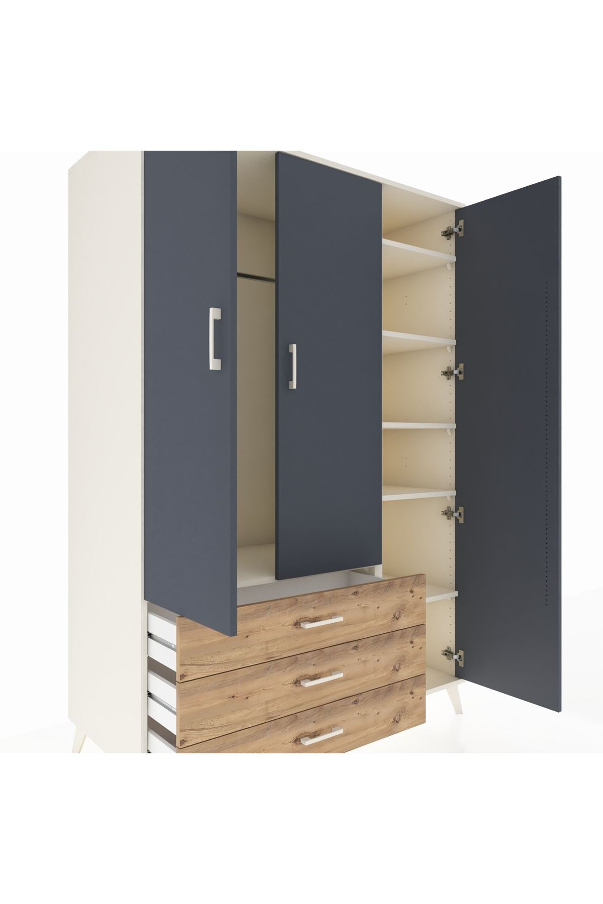 Kronos Dolap 6 Raflı 3 Çekmeceli Tek Askılı 132x59x195 Aytaşı-Antrasit/Çam